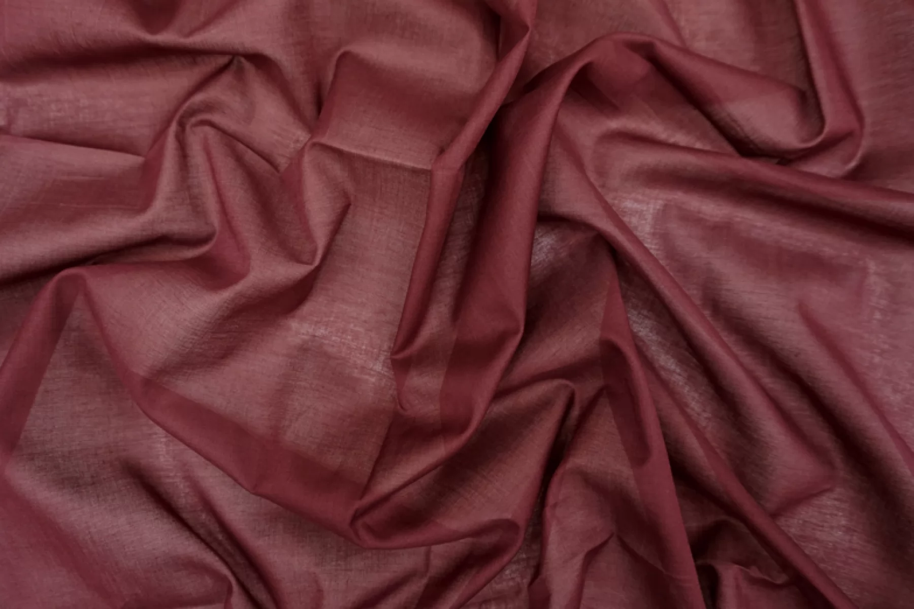 Тонкий хлопковый батист оттенка спелой темной вишни с красивым легким лоском. Легкий, пластичный, немного просвечивает, слегка тянется за счет плетения. Хорошо драпируется. Мягкий и очень приятный тактильно. Подойдет для изделий как в