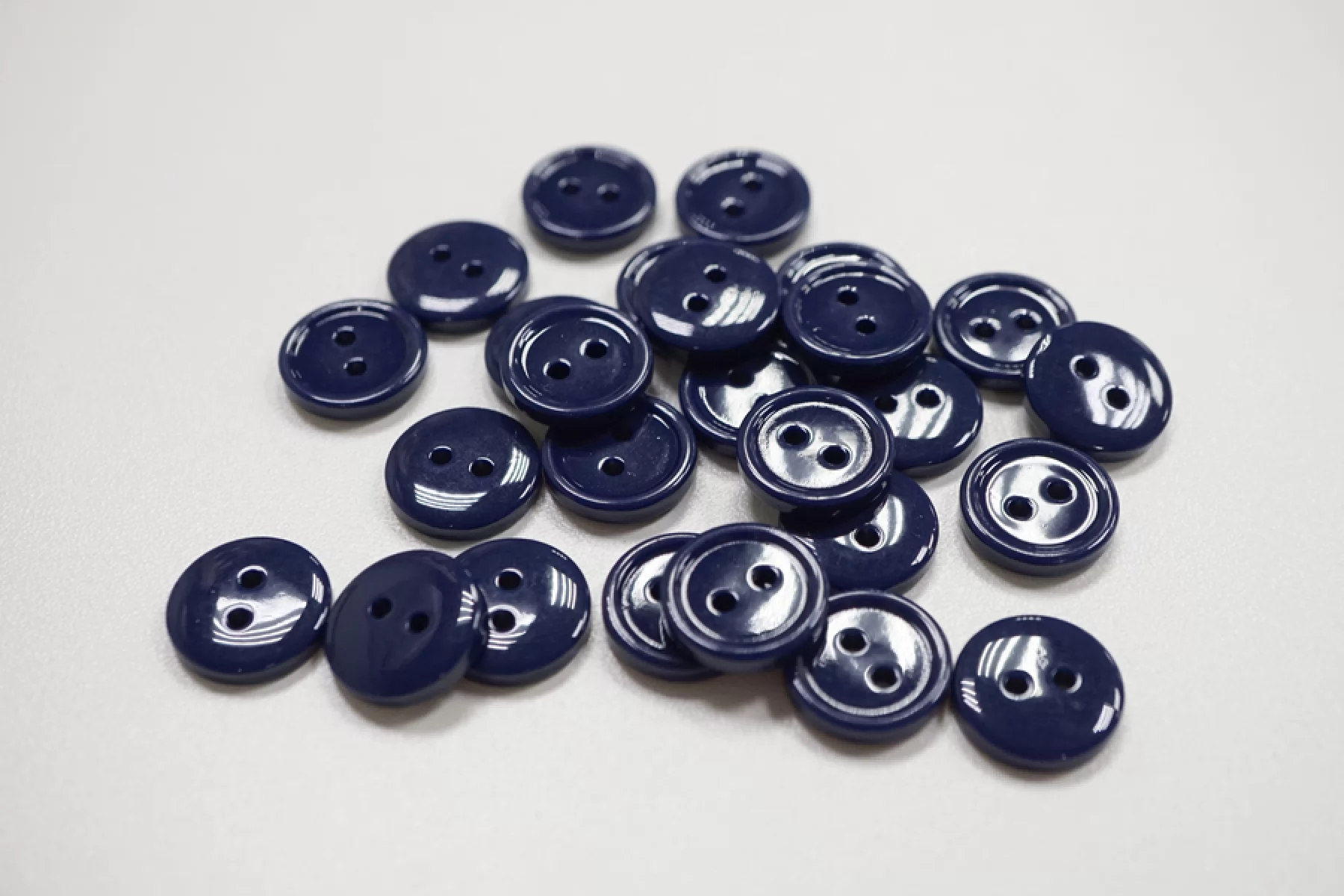 Пуговица костюмно-рубашечная пластиковая, размер 15 мм, темно-синего цвета с глянцевой поверхностью.