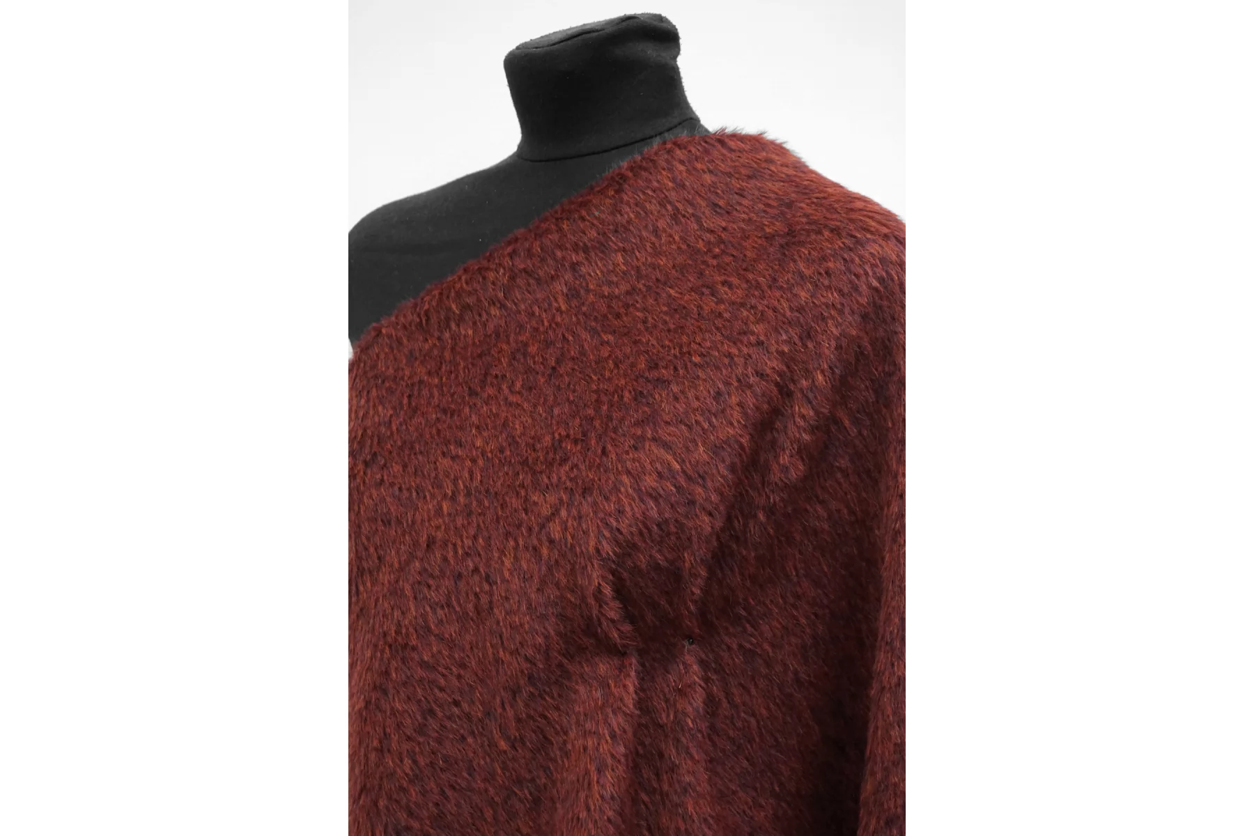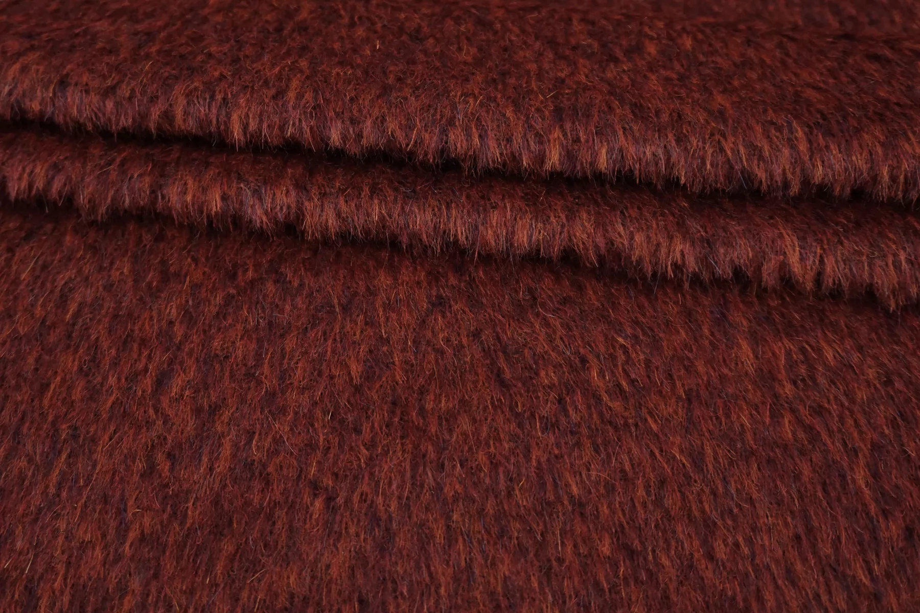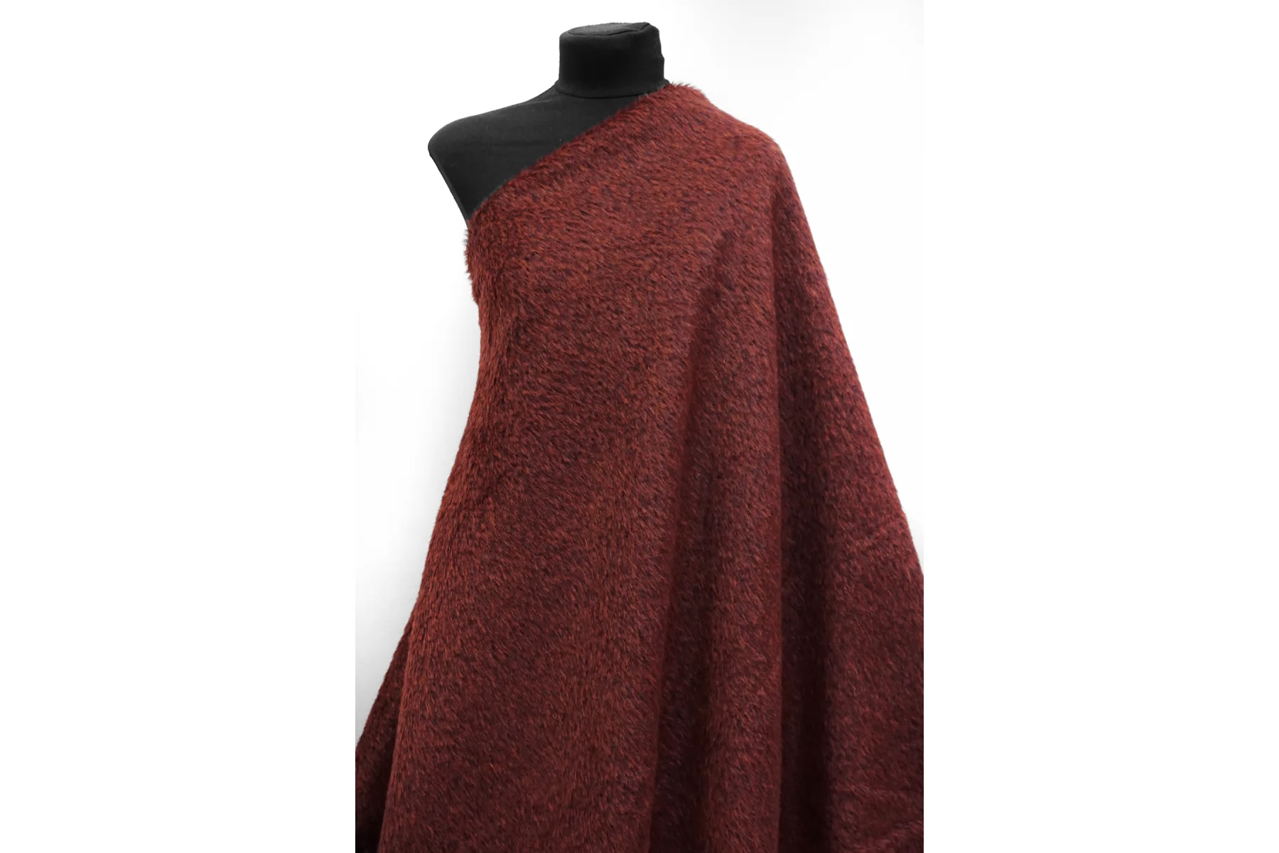 Пальтовая шерсть с альпакой шикарного качества в очень интересном бордовом оттенке. Материал с направленным ворсом - длина около 10 мм. Красиво выглядит в сгибах и складках, с красивым лоском. Немножко покалывает. НЕ тянется Плотненький и толстенький примерно 2мм толщиной. Подойдет как на классические модели пальто, халата, двубортного пальто, так и для современной вариации пальто-рубашки. Уход за материалом деликатный. Рекомендуется химчистка.