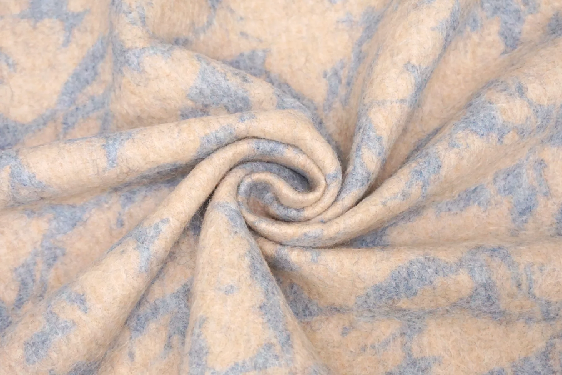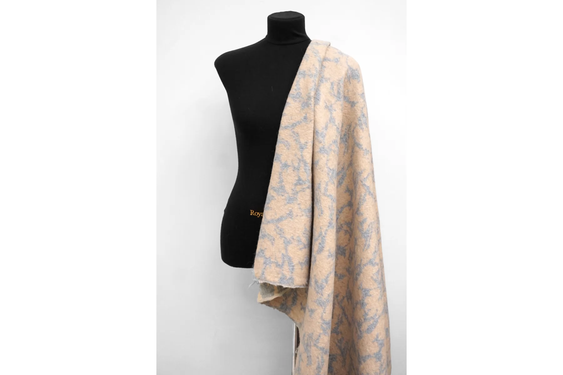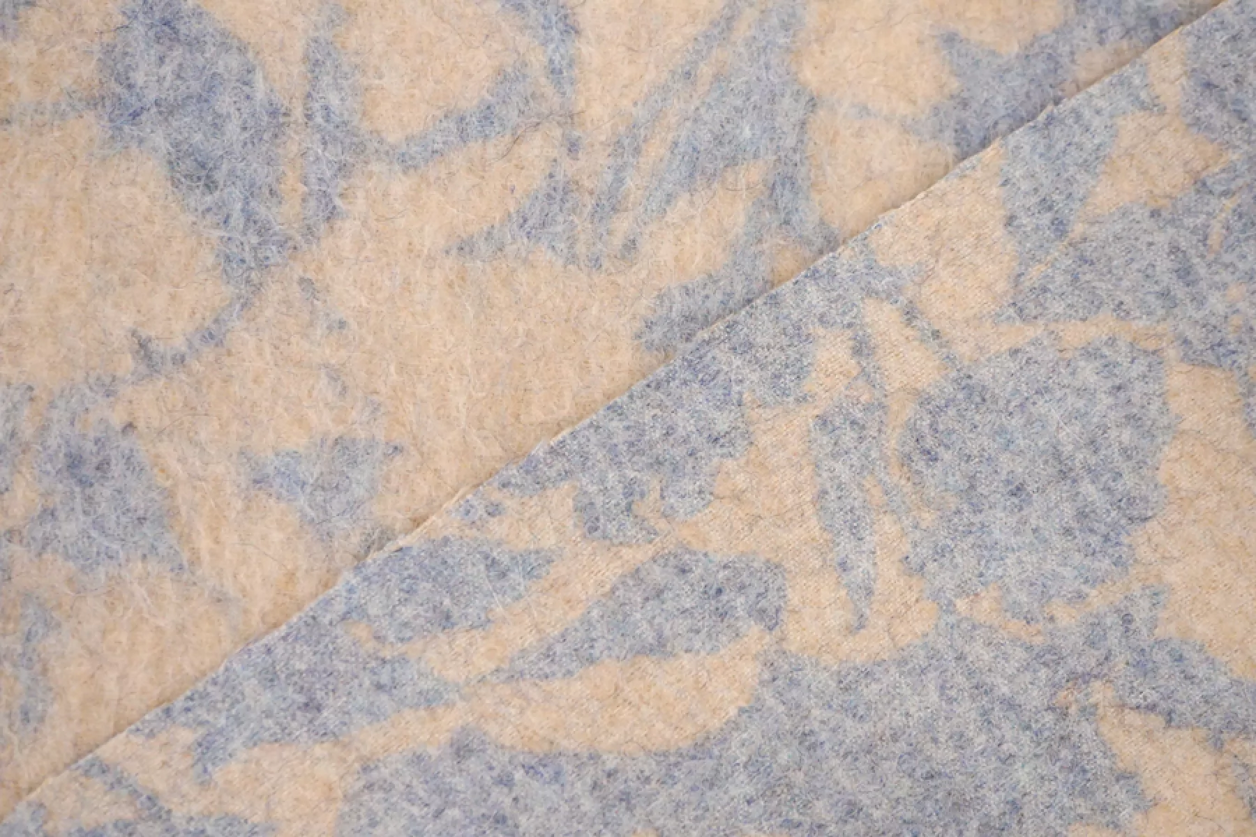 Шикарная пальтовая альпака от бренда Max Mara в бежево-голубом цвете с принтом в виде силуэта цветов. с длинным не направленным ворсом. Тактильно очень приятная, нежная и мягкая. Не колется. Красиво выглядит в сгибах и складках. Хорошо держит форму, не очень пластична. Не тянется и не просвечивает. Толщина около 2 мм. Не мнется. Отлично подойдет как на классические модели пальто, халата, двубортного пальто, так и для современной вариации пальто-рубашки или бомбера. Уход за материалом деликатный. Рекомендуется химчистка.