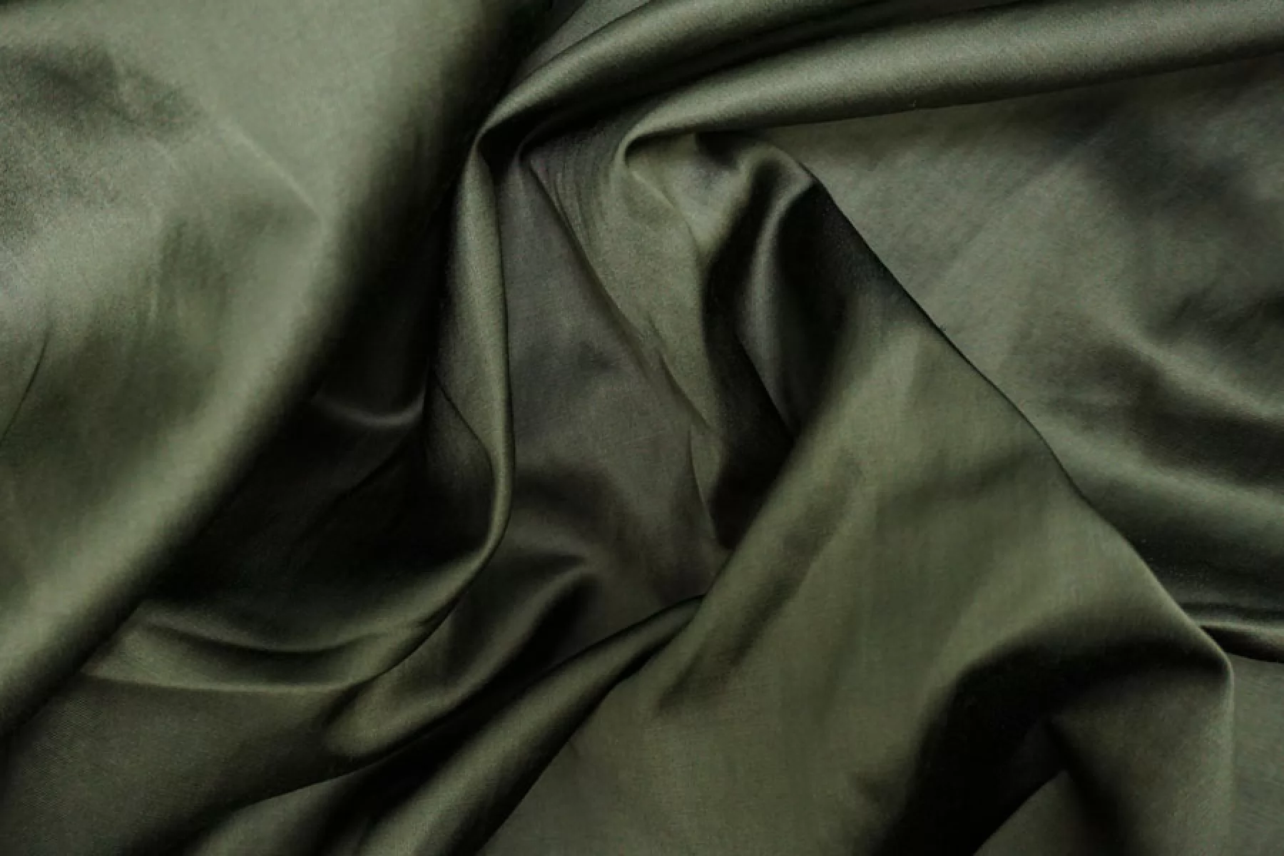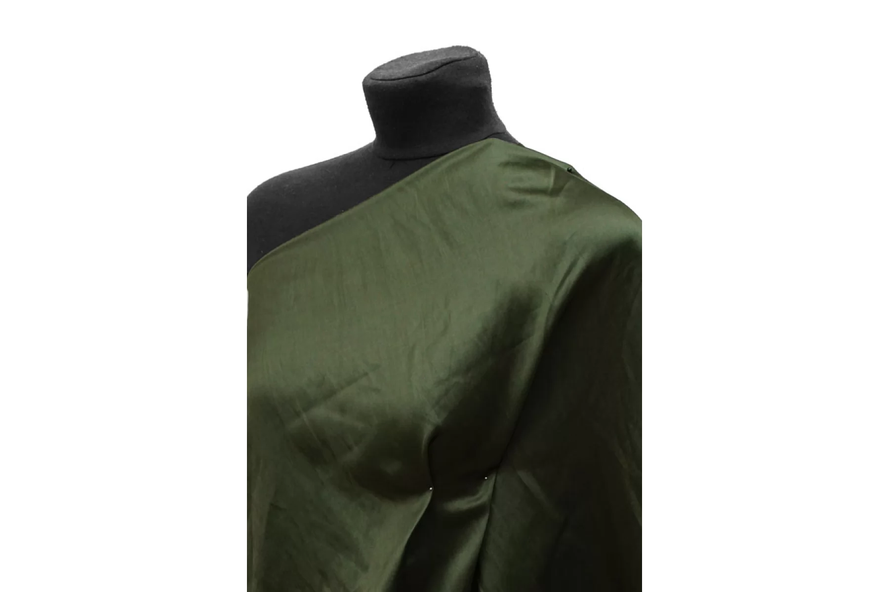 Очень изысканный атлас из вискозы с хлопком в темно-зеленом оттенке. Мягкий, пластичный, очень приятный. Лицевая сторона гладкая, скользящая с красивым блеском. Тонкий, но при этом плотненький. Не просвечивает. Не тянется. Мнется. Форму немного держит. Вариант на платья, костюмы, мягкие жакеты, юбки и кимоно. При необходимости используйте подкладочный материал. Обязательно учитывайте возможную усадку 5-10%