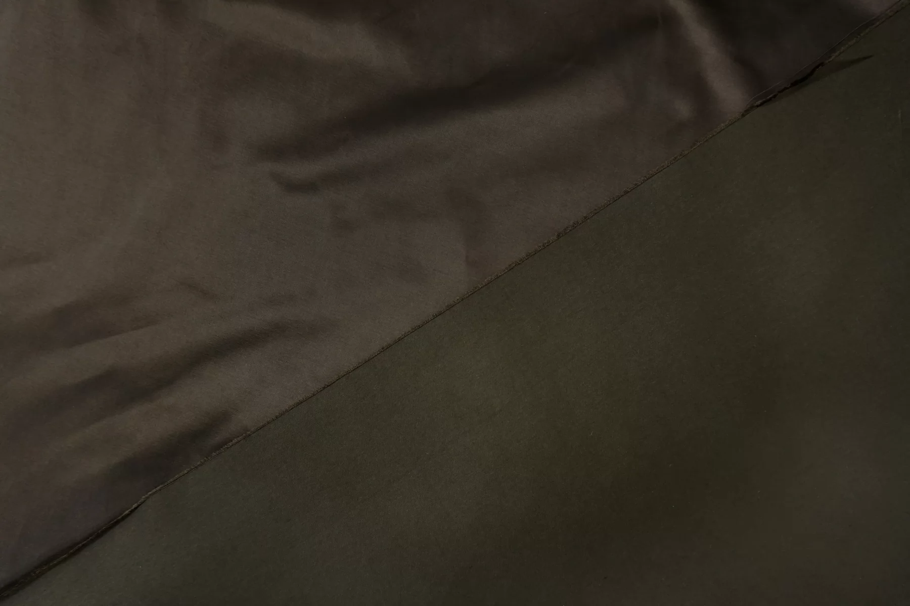 Прекрасный атлас из хлопка, ацетата и вискозы от бренда Tom Ford, оттенок тёмный хаки. Лицевая сторона гладкая, скользящая с красивым блеском. Довольно плотный. Формодержащий и умеренный по пластичности. Мнется умеренно, не тянется, не просвечивает. Вариант на платья, костюмы, жакеты, юбки. При необходимости используйте подкладочный материал. Обязательно учитывайте возможную усадку 5-10%