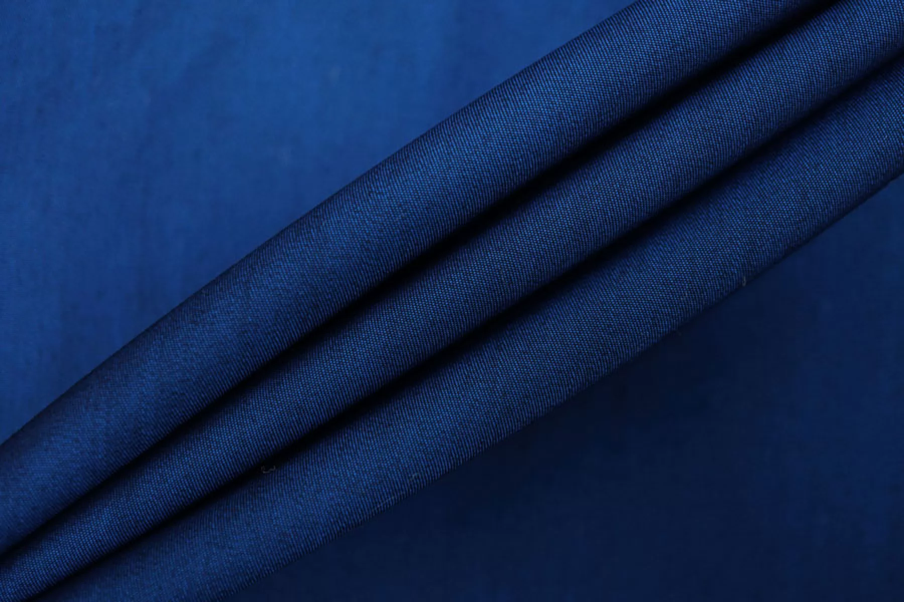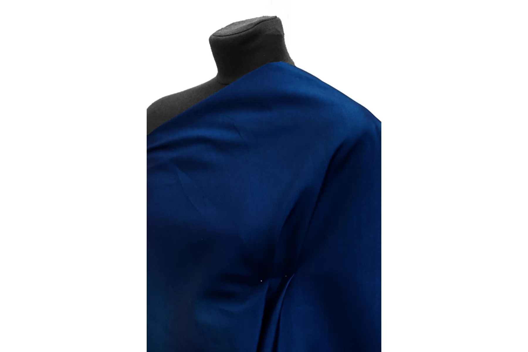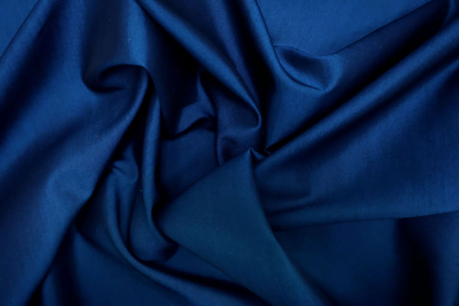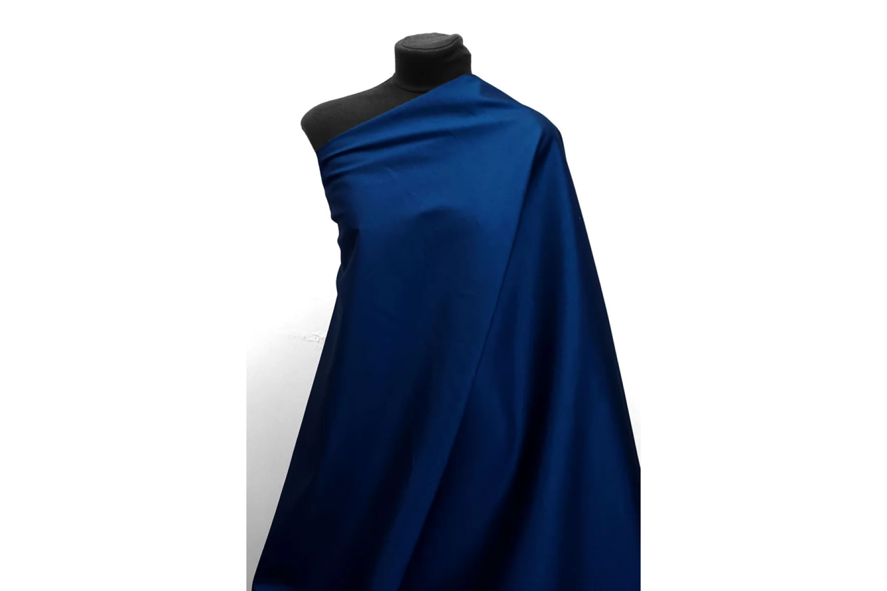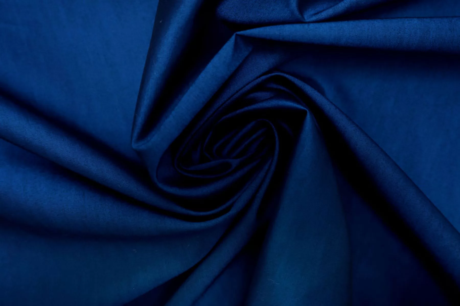 Внимание! Присутствует полоса вдоль кромки, на 57 см от края см. фото. Интересный хлопок шанжан костюмной плотности, нити синего и тёмно-синего цвета, что создаёт на лицевой стороне интересный отблеск и перелив. Довольно плотный. Формодержащий и умеренный по пластичности, с красивой упругой пластикой. Мнется, не тянется, не просвечивает. Вариант на платья, костюмы, жакеты, юбки, брюки. При необходимости используйте подкладочный материал. Обязательно учитывайте возможную усадку 5-10%