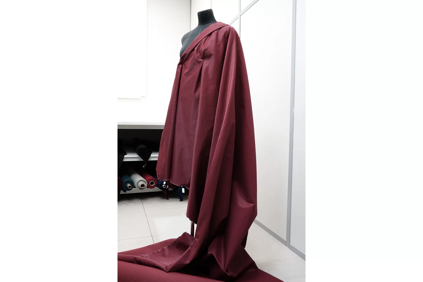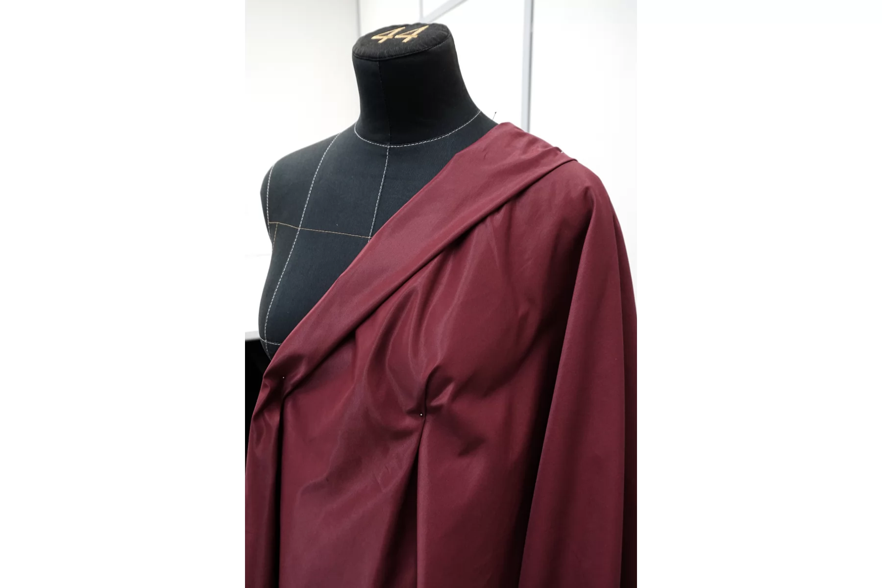 Прекрасный атлас из хлопка и полиэстера в немного приглушённом вишнёвом оттенке. Лицевая сторона гладкая, скользящая с красивым блеском. Довольно плотный. Формодержащий и умеренный по пластичности. Мнется, не тянется, не просвечивает. Вариант на платья, костюмы, жакеты, юбки. При необходимости используйте подкладочный материал. Обязательно учитывайте возможную усадку 5-10%