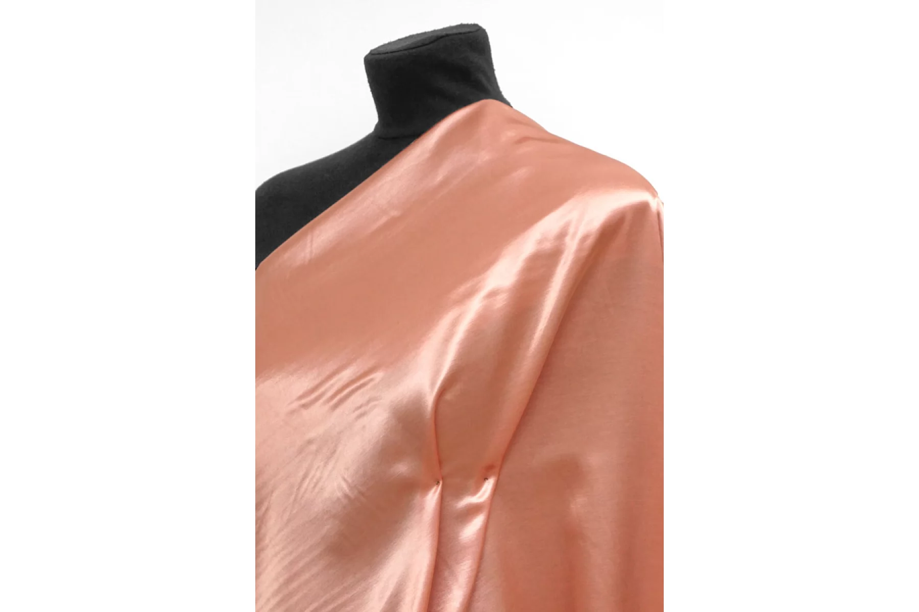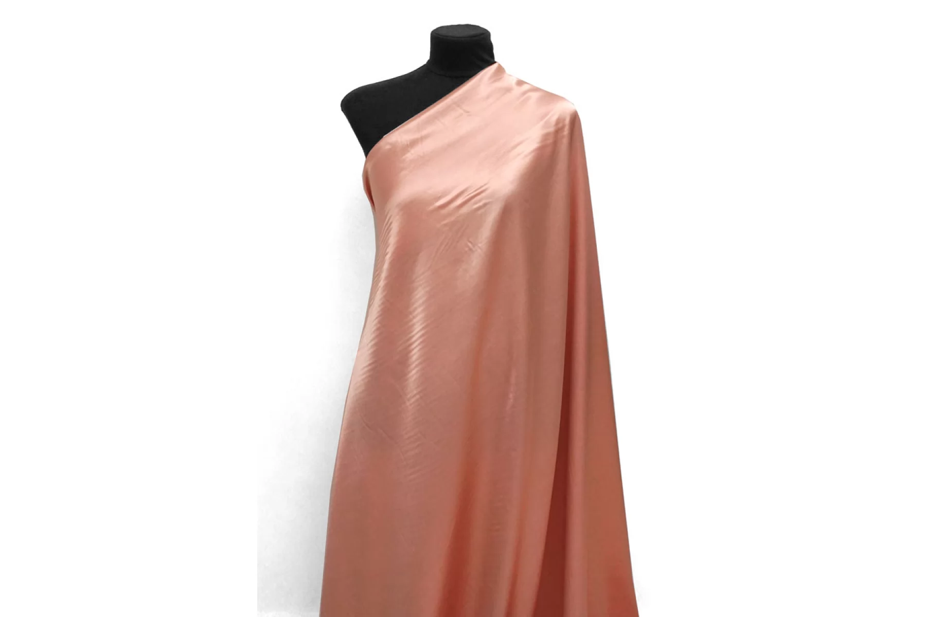 Шикарная атласная вискоза в нежном розовато-персиковом оттенке. С красивым богатым блеском. По плотности плательная. Гладкая, скользящая. Не просвечивает. Немного сминается, не тянется. Шьем нарядные платья, топы, костюмы в пижамном стиле. Обязательно учитывайте усадку 5-10%