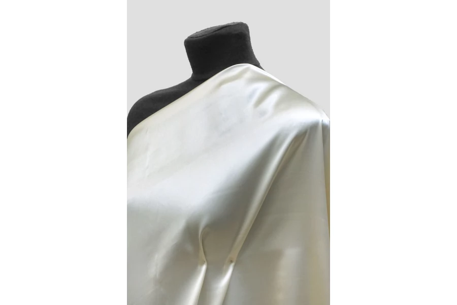 Шикарный плательно-блузочный атлас из шелка в нежном оттенке шампань (с желтинкой). Гладкая, скользящая, очень приятная тактильно лицевая сторона. Не тянется. Немного просвечивает. Мнется умеренно. Струящийся, ниспадающий. Шьем нарядные платья, топы, нарядные блузки. Обязательно учитывайте усадку 5-10%. Уход деликатный.