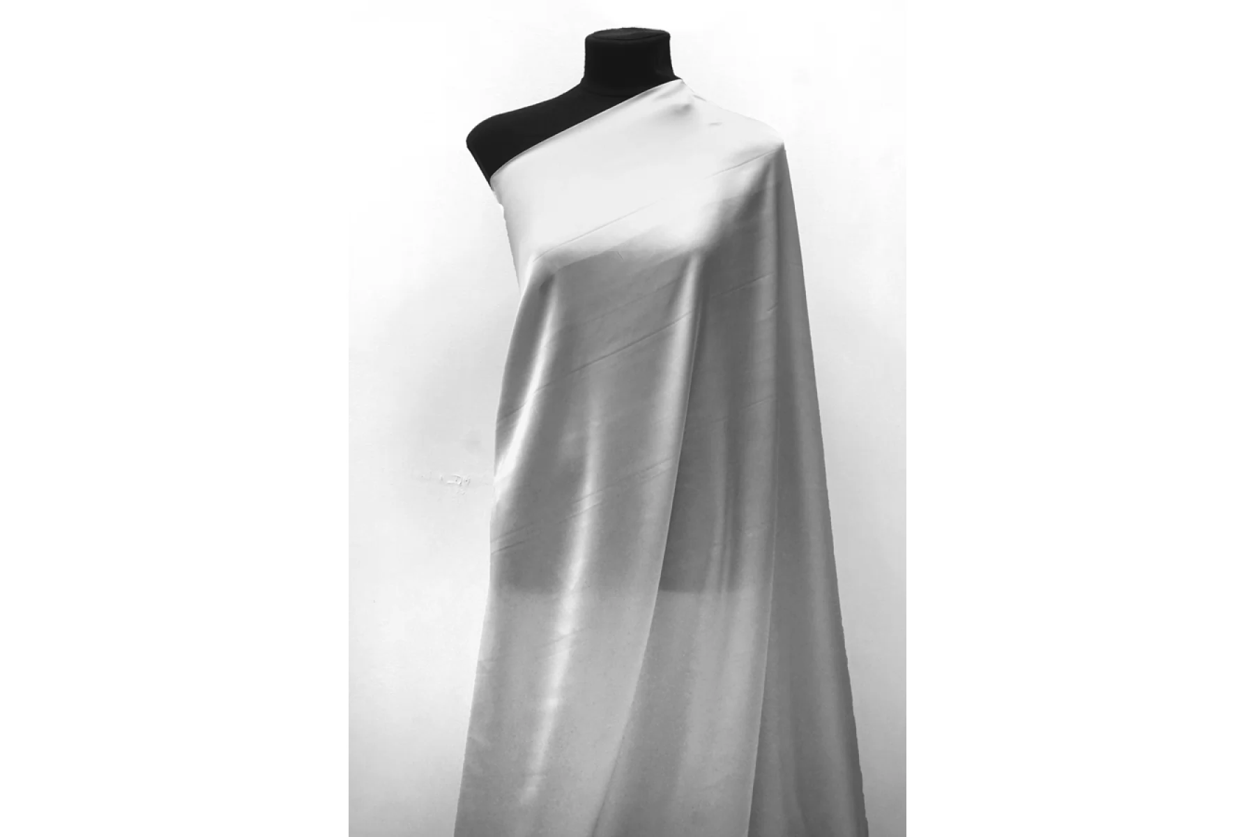 Роскошный плательно-блузочный атлас из шёлка серого цвета. Гладкая, скользящая, очень приятная тактильно лицевая сторона. Струящийся, очень красив в пластике. Хорошо тянется. Немного просвечивает. Практически не мнется. Шьем вечерние платья, топы, нарядные блузки, одежду в бельевом стиле. Прекрасный вариант для выпускного платья. Обязательно учитывайте усадку 5-10%. Уход деликатный.