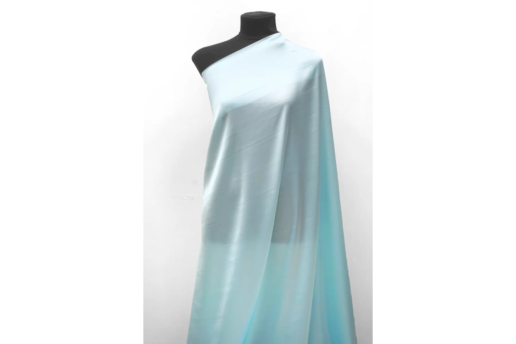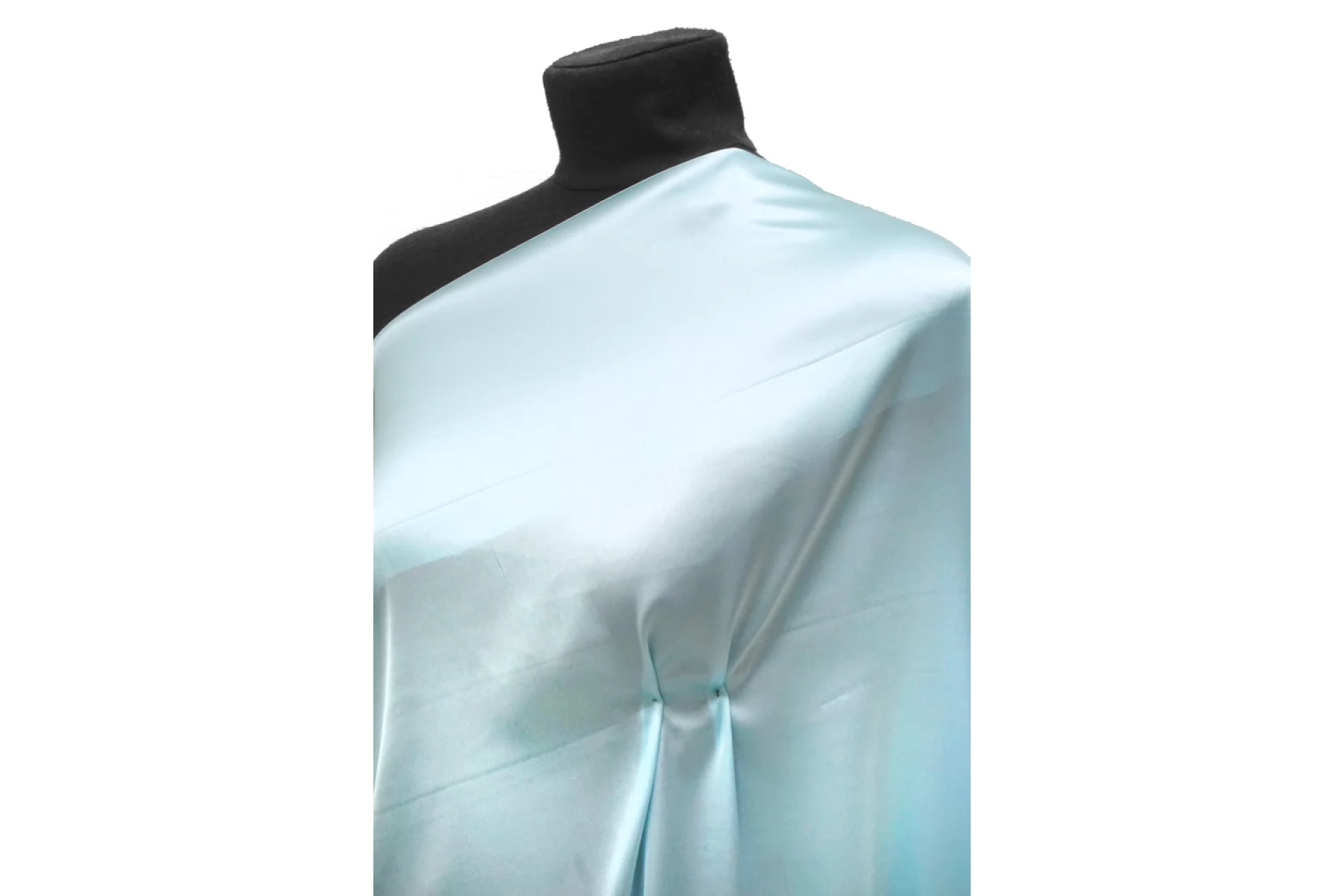Роскошный плательно-блузочный атлас из шёлка в светлом, голубом цвете с бирюзовым (мятным) подтоном. Гладкая, скользящая, очень приятная тактильно лицевая сторона. Струящийся, очень красив в пластике. Хорошо тянется. Немного просвечивает. Практически не мнется. Шьем вечерние платья, топы, нарядные блузки, одежду в бельевом стиле. Прекрасный вариант для выпускного платья. Обязательно учитывайте усадку 5-10%. Уход деликатный.