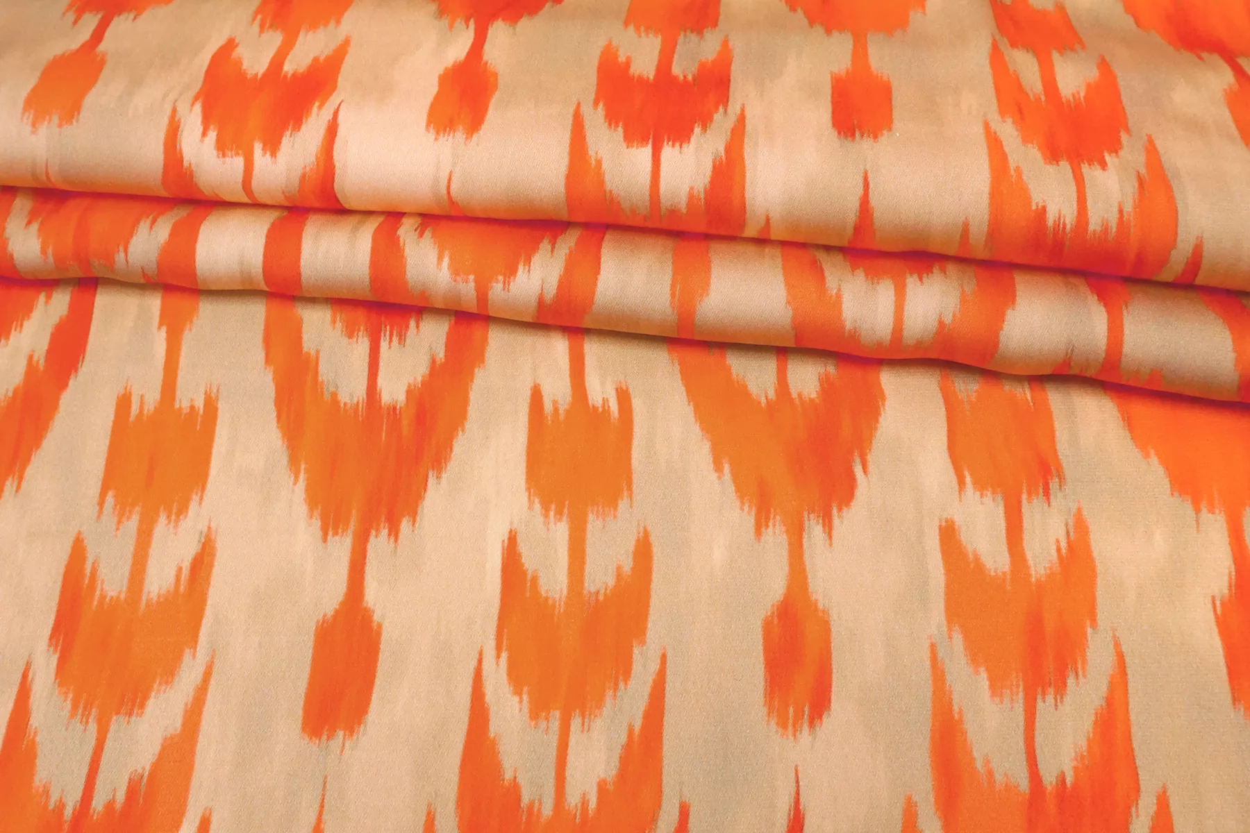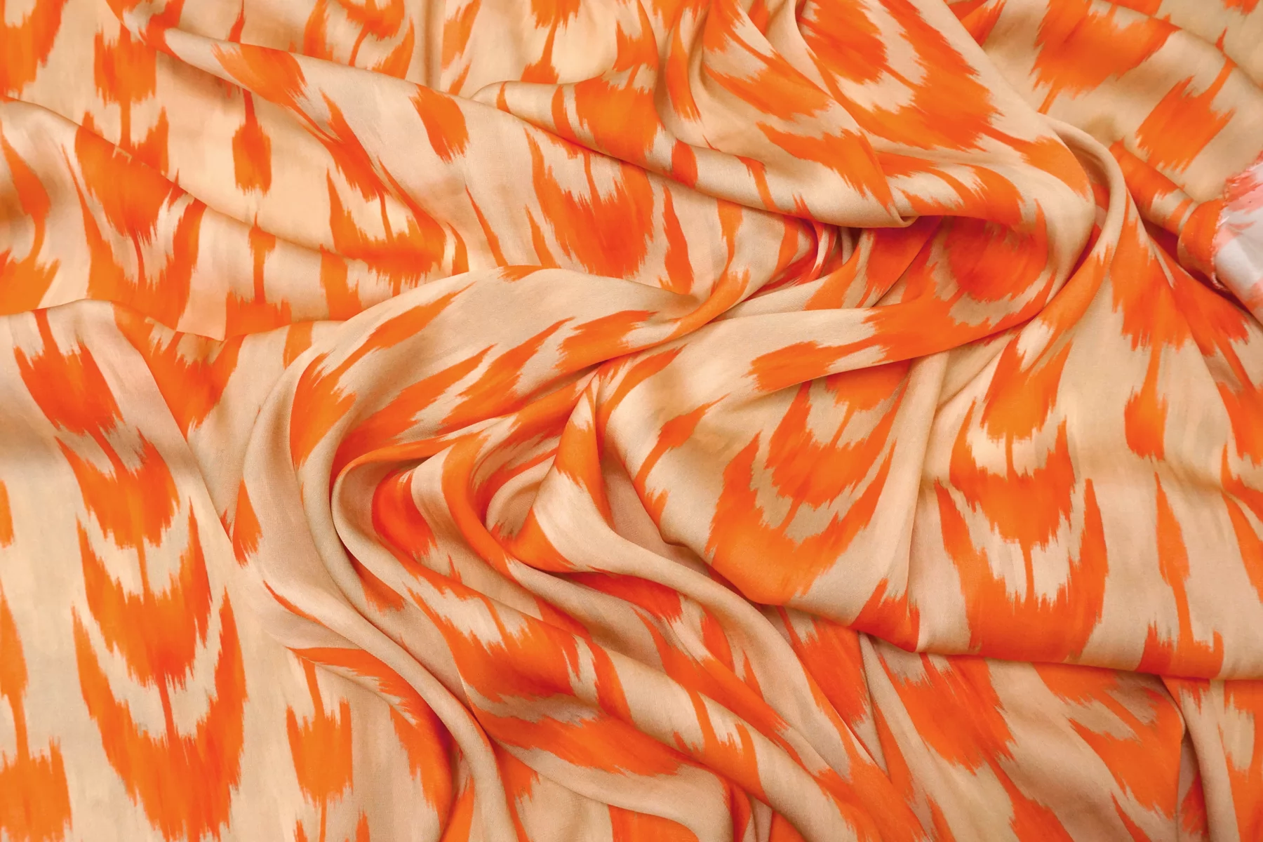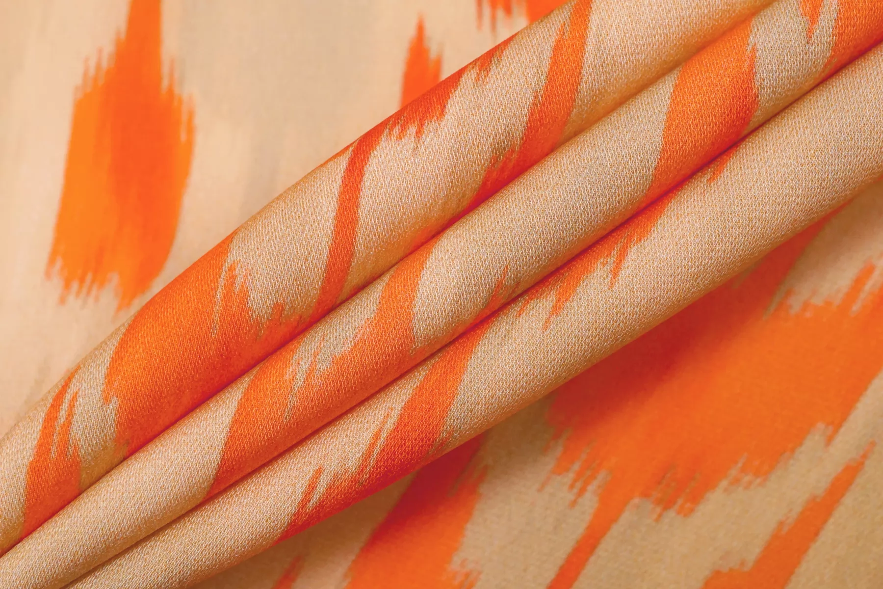 Атлас-стрейч вискозный плательно-блузочный Бежево-оранжевый IDT H21/9 i10 20112507