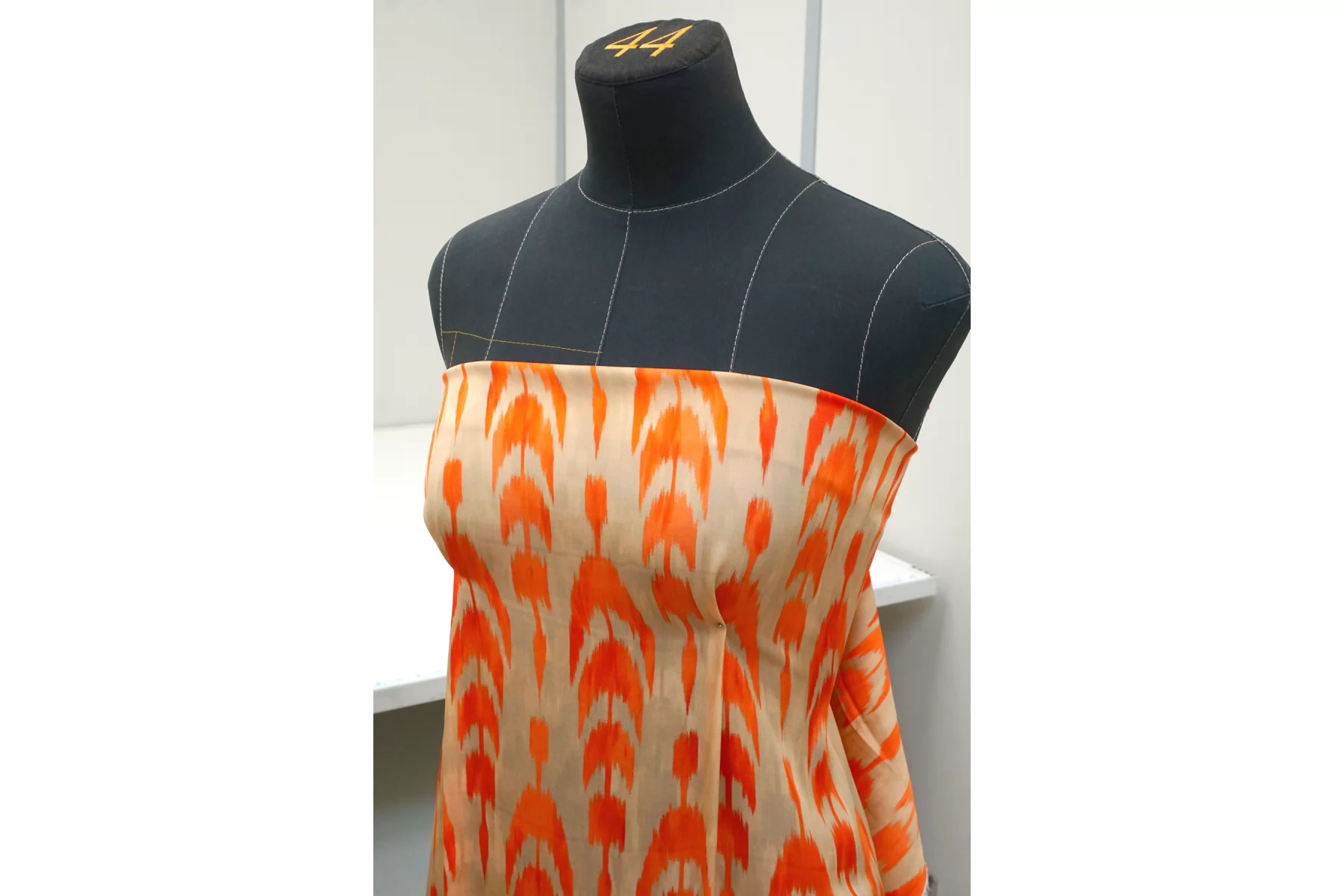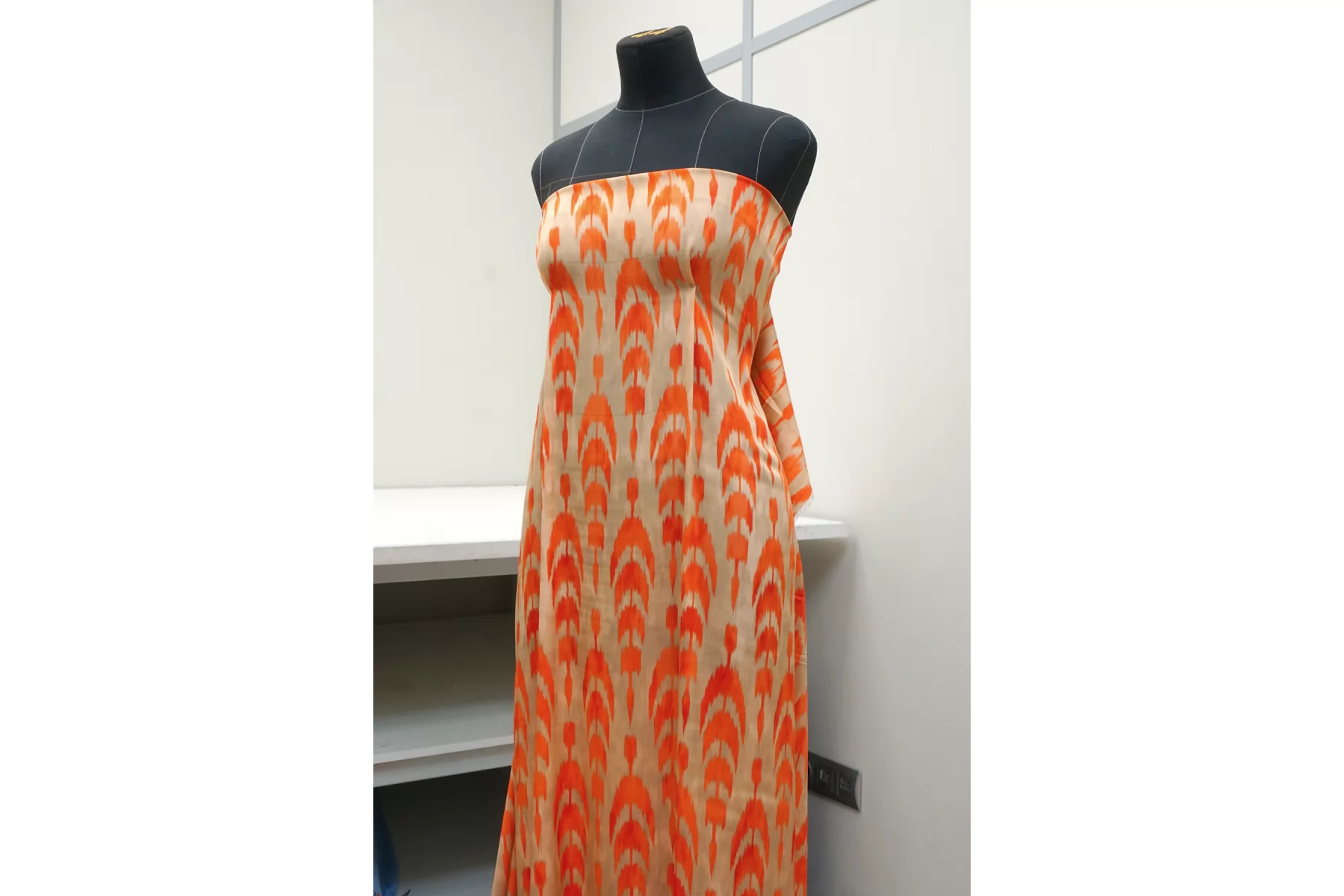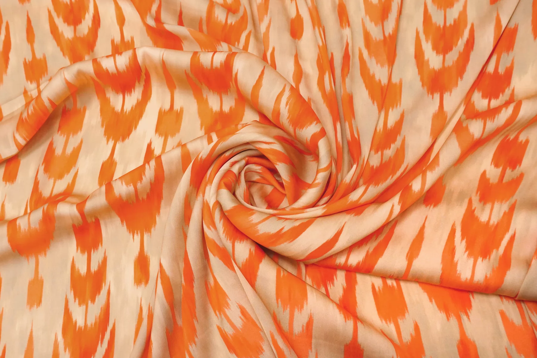 Атлас-стрейч вискозный плательно-блузочный Бежево-оранжевый IDT H21/9 i10 20112507