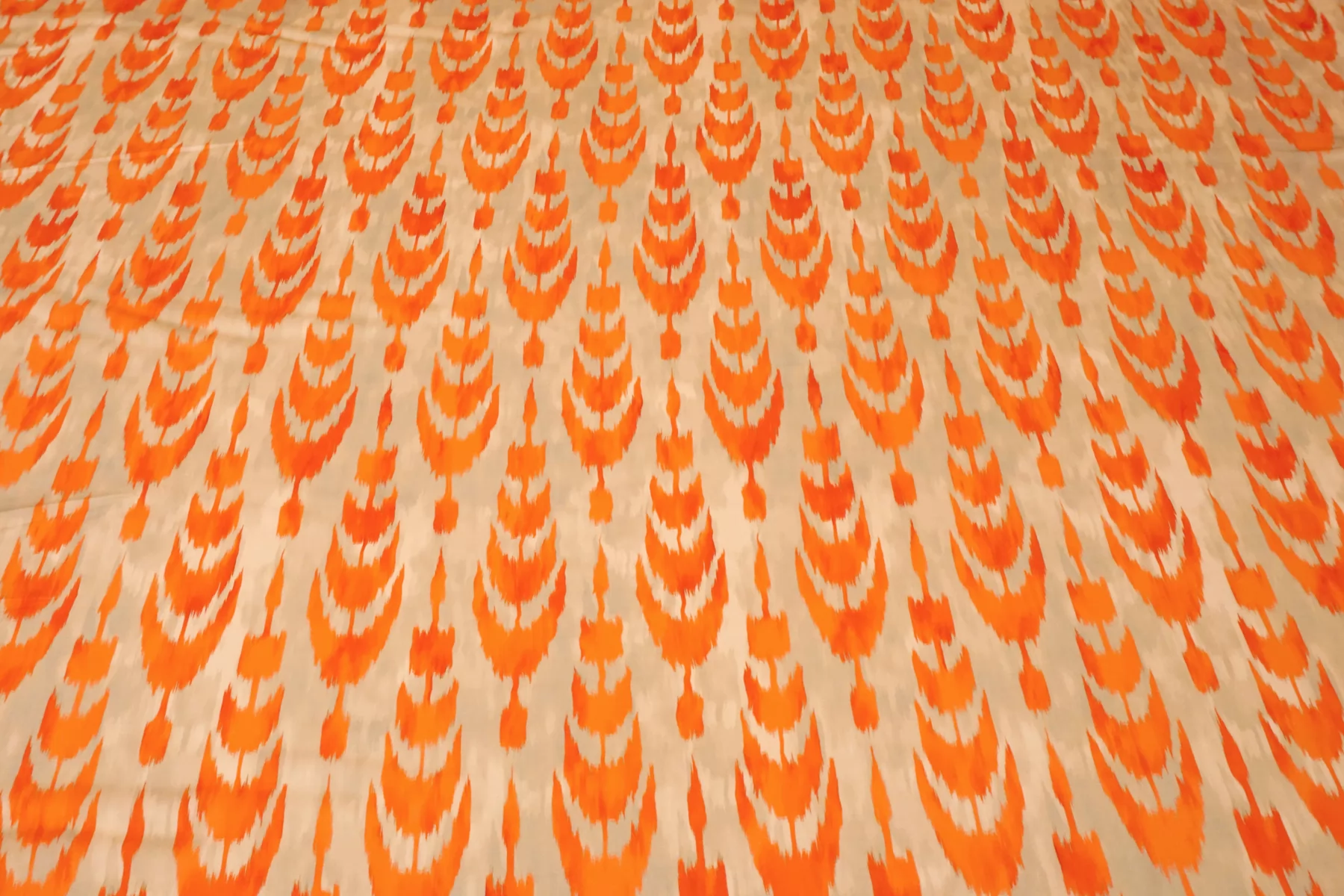 Прекрасный плательно-блузочный атлас-стрейч из вискозы с оранжево-бежевым принтом. Материал очень приятный и мягкий, гладкий, тонкий и легкий. Хорошо тянется. Немного просвечивает силуэт. Мнется не сильно. Красиво струится и смотрится в складке. Пластичный. Шьем платья, юбки, блузки и одежду в бельевом стиле. При необходимости используйте подкладочный материал.