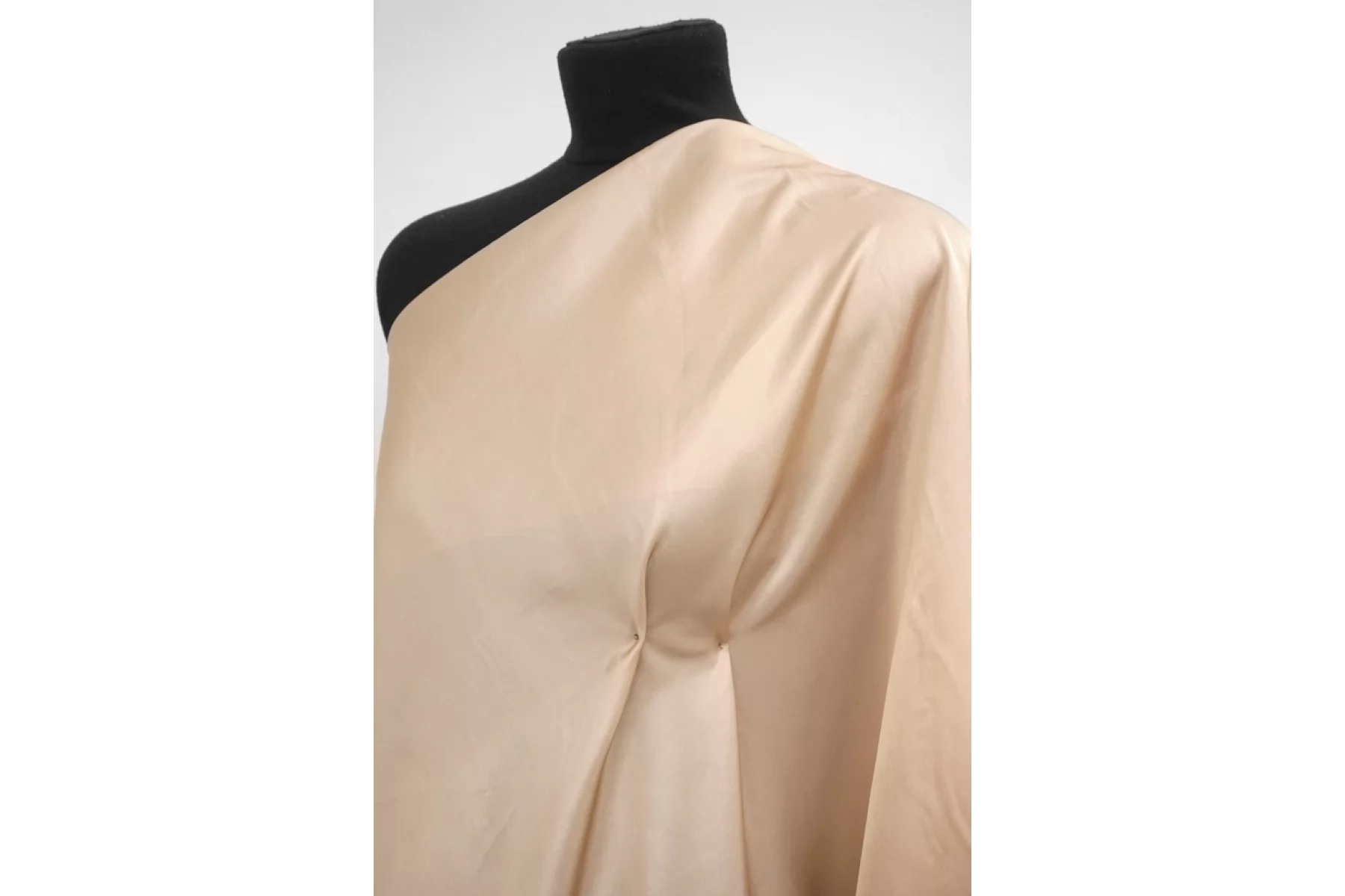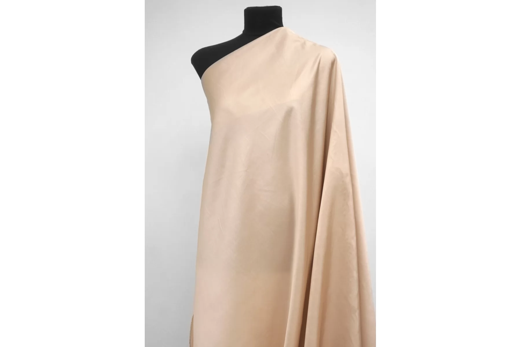 Костюмно-плательный вискозный атлас бежевого оттенка от бренда VERSACE. Средней плотности, пластичный. Приятный, гладкий с лицевой стороны, мягкий. Не тянется. Немного просвечивает силуэт. Сминается. Не держит форму. Обладает приятным лоском. Используем на платья, юбки, костюмы в пижамном стиле, кимоно и не только. Обязательно учитывайте усадку 5-10%.