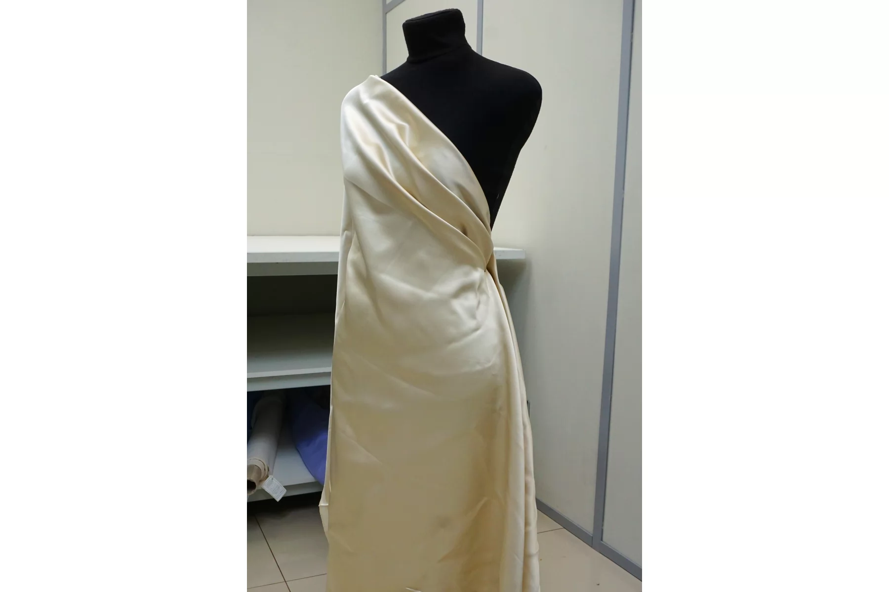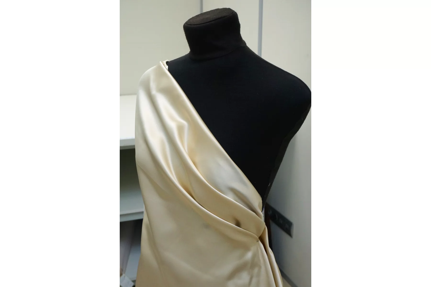 Шикарный двусторонний атлас в красивом оттенке шампань. Обладает красивым блеском. Тактильно приятный, мягкий, гладкий и скользящий. Довольно плотный. Минимально просвечивает силуэт в один слой насквозь. Держит красивые объемные складки. Немного мнется. Не тянется. Смотрится шикарно! Отличный вариант на платье, жакет, юбку и различные варианты нарядной группы. Обязательно учитывайте небольшую усадку.
