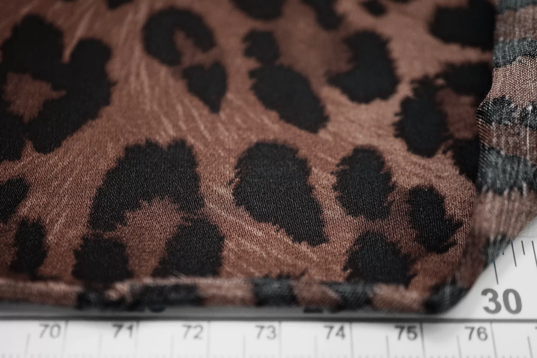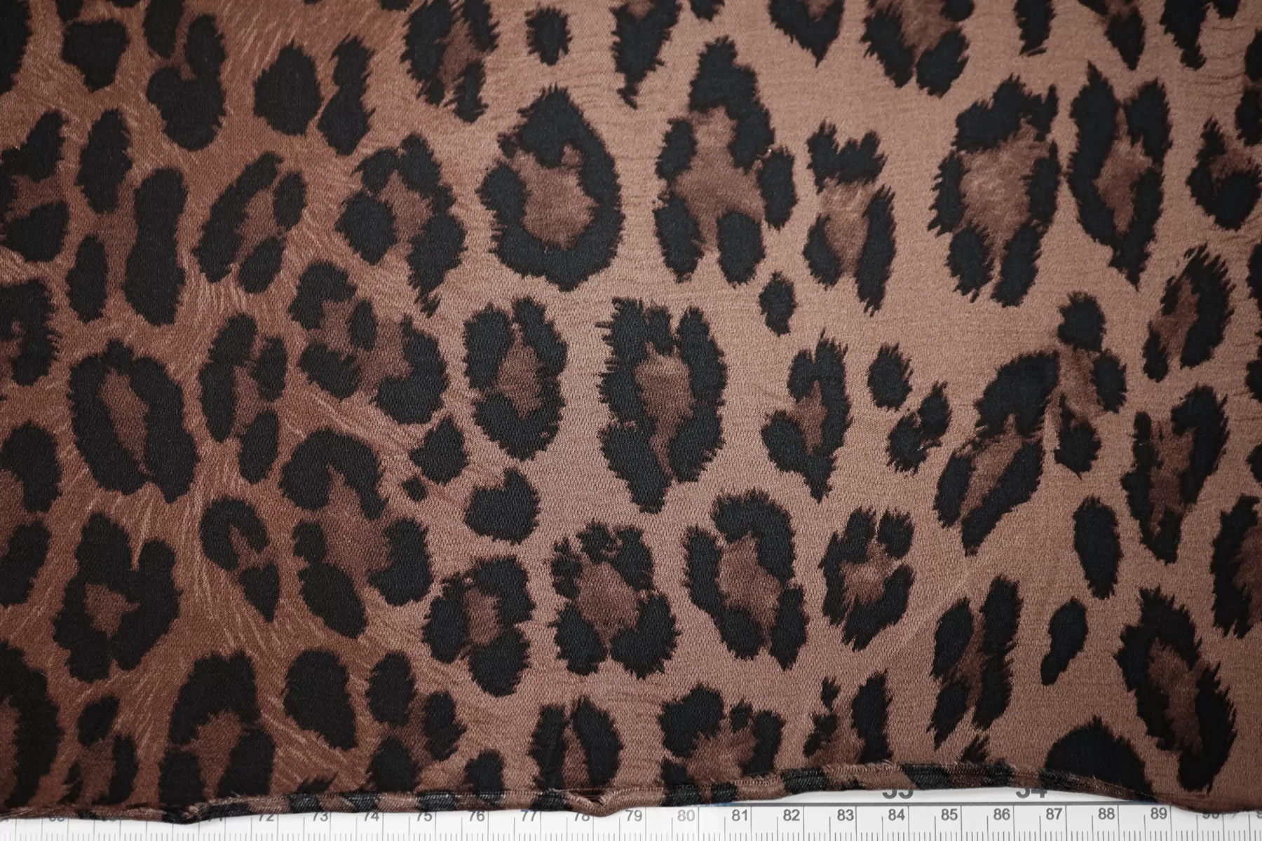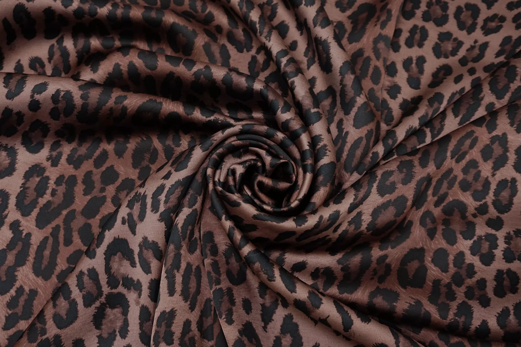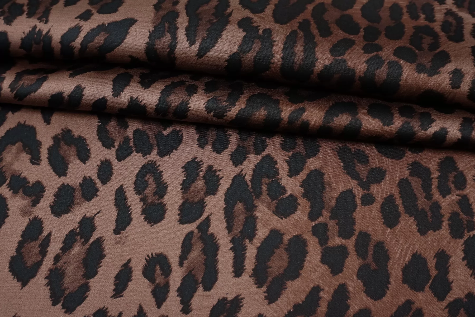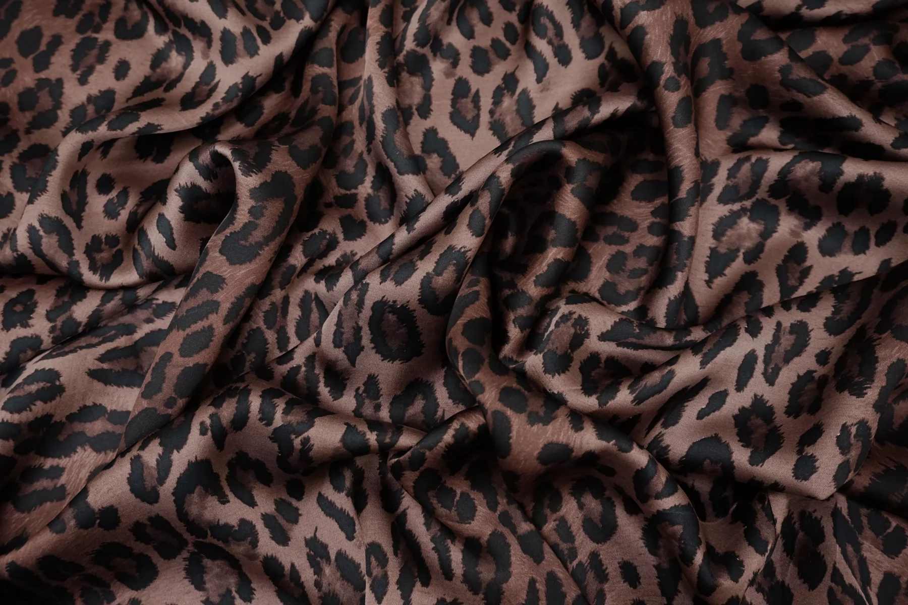 ВНИМАНИЕ!! Брак принта (маленькие белые точки) см. фото. Итальянский вискозный плательно-блузочный атлас со стилизованным леопардовым принтом, в красивой коричневой гамме (тёплый подтон, как у какао). Тонкий, пластичный, гладкий, струящийся. Не тянется, немного просвечивает если смотреть насквозь через один слой. Подойдет для пошива платья, юбки, туники, блузки, топа. При работе с этой тканью советуем использовать тонкие иглы и нитки.