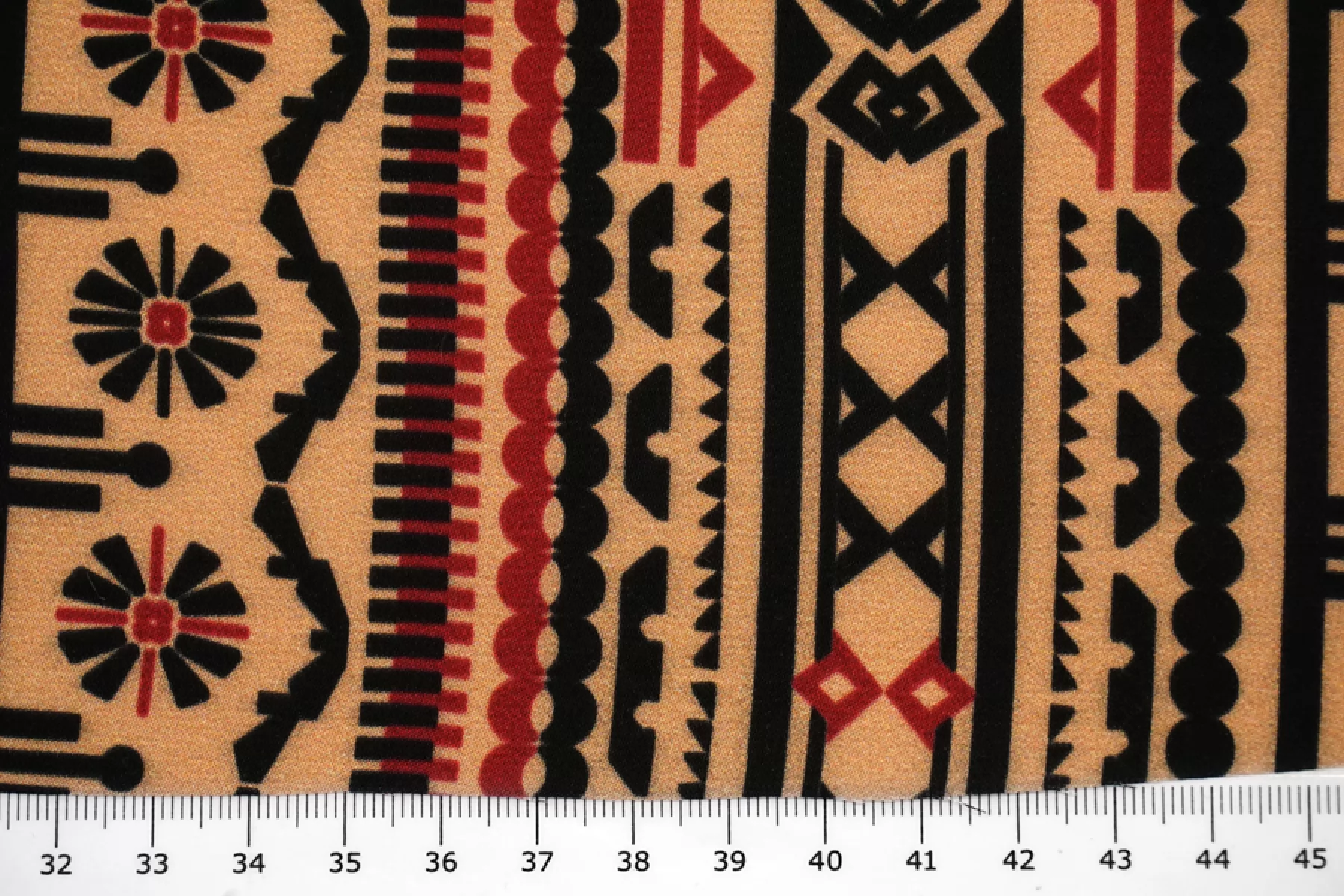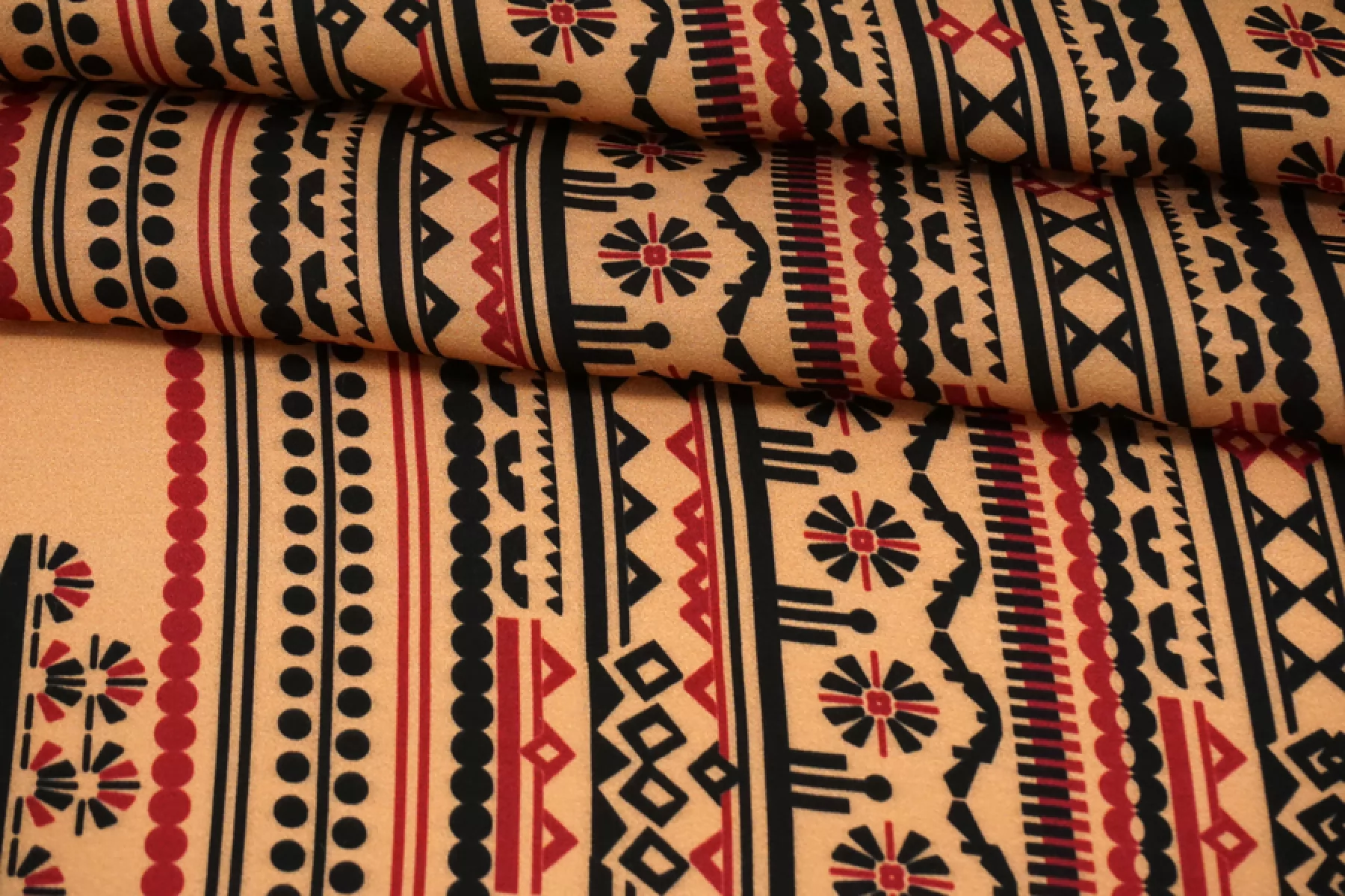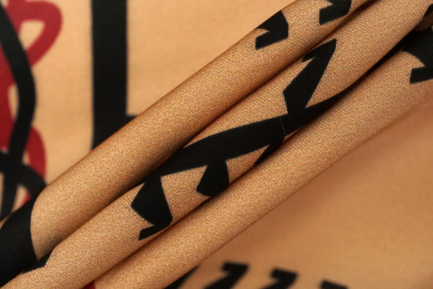 Внимание! Немного размытый принт, иногда встречаются мелкие затяжки! Итальянская вискоза с атласным плетением, принт орнаментальный в бежевом и черном цвете. Красиво струится, хорошо драпируется, имеет легкий блеск. Пластичная, не тянется. Подойдет на платье (особенно в бельевом стиле), топ, юбку, блузку.