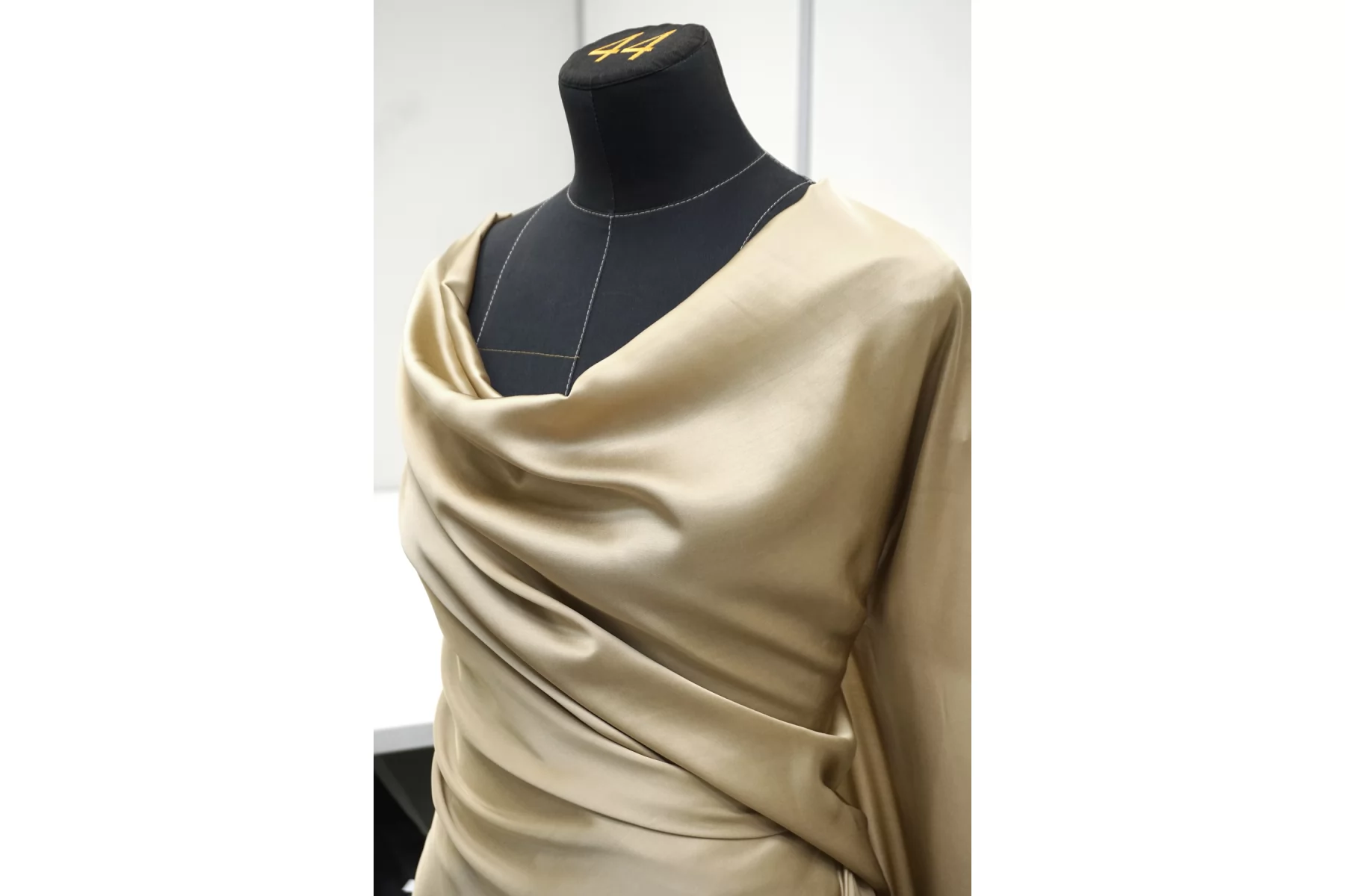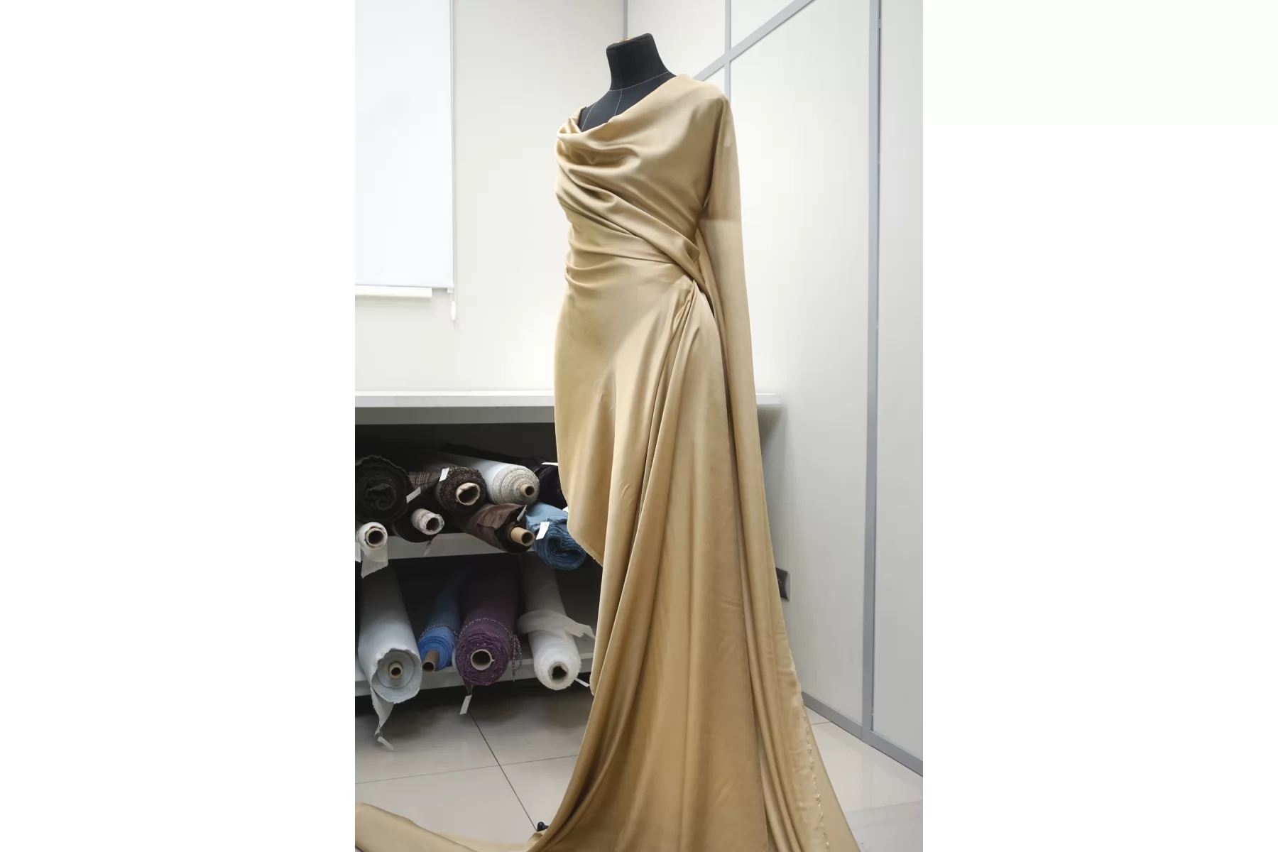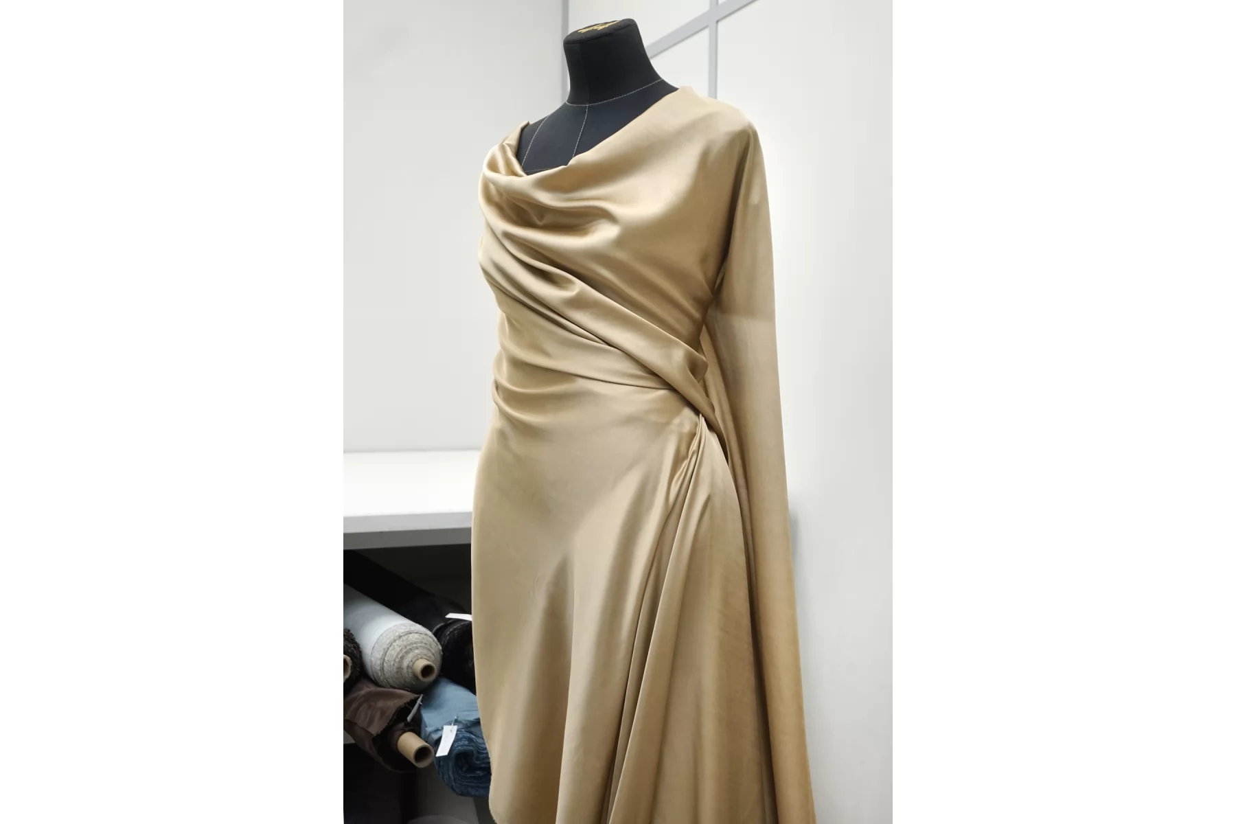 Итальянский вискозный плательно-блузочный атлас в красивом, светлом песочно-бежевом цвете. Тонкий, пластичный, гладкий, струящийся. Не тянется, немного просвечивает в один слой. Подойдет для пошива платья, юбки, туники, блузки, топа. При работе с этой тканью советуем использовать тонкие иглы и нитки.