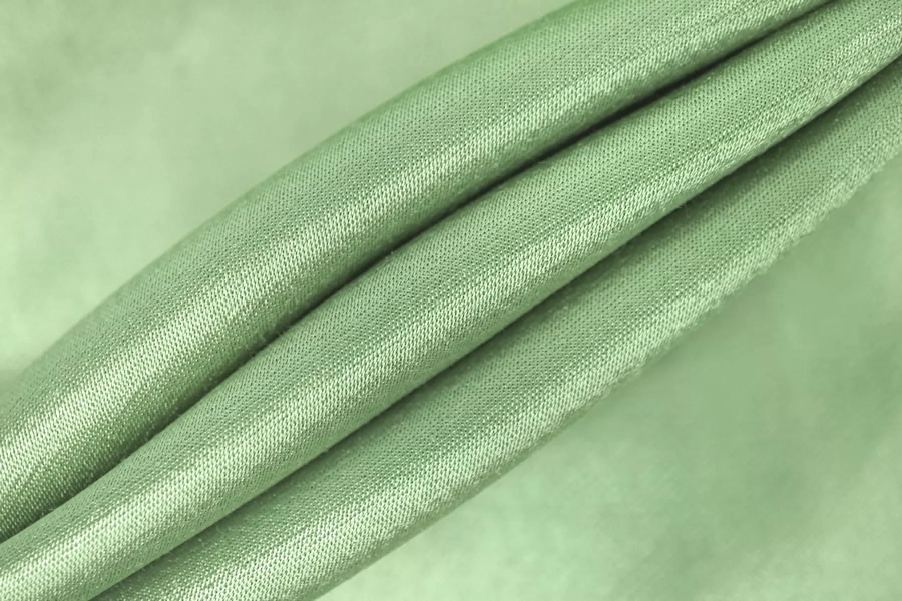 Невероятно красивый вискозный атлас в нежном приглушенном светло-зеленом оттенке, что-то между мятным и фисташковым. Материал плотный, со скользящей лицевой стороной, которая шикарно переливается. Тактильно очень приятный. Не тянется. Не просвечивает. Сминается. Хорошо драпируется и немного держит форму. Восхитителен в своей пластике. Отлично подойдет не только на платья и юбки, но и на костюмы и жакеты мягкой формы, а также свободные брюки. Обязательно учитывайте усадку 5-10%.