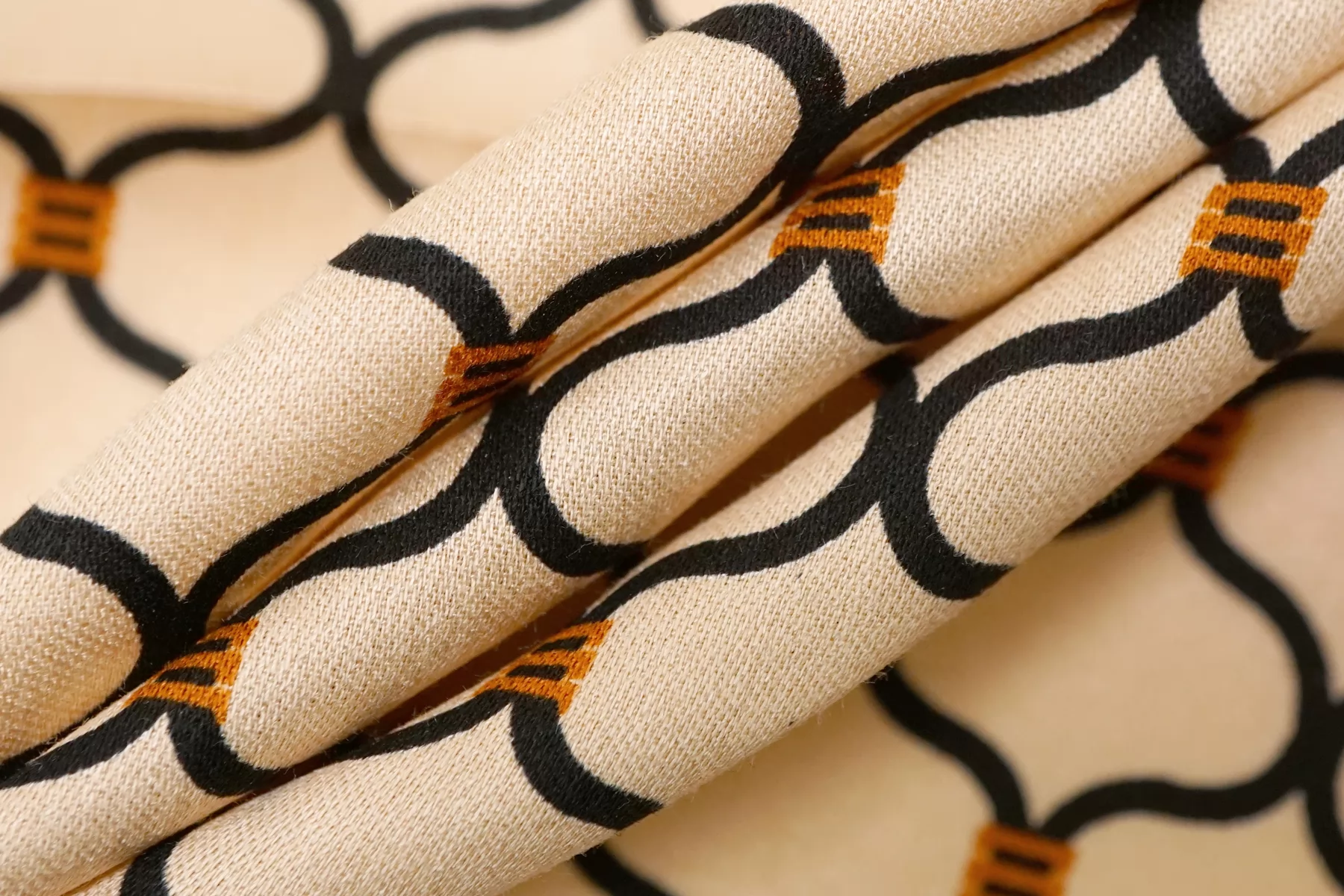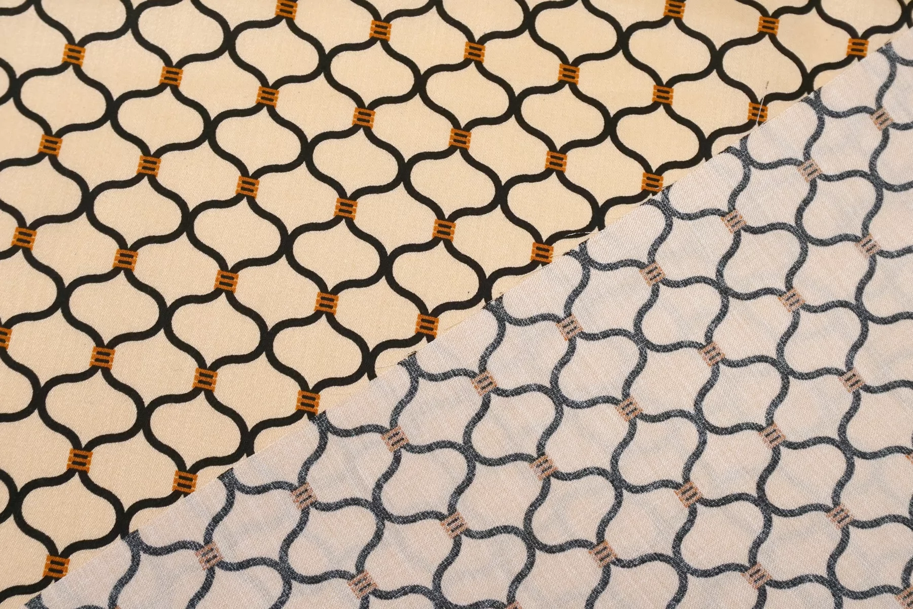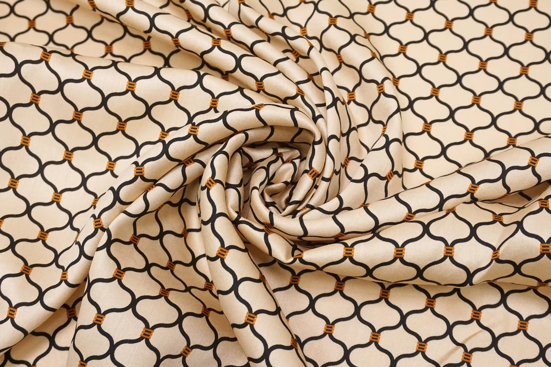 Атласная вискоза плательная Орнамент чёрно-бежевый SMF H21/2 H40 15052506