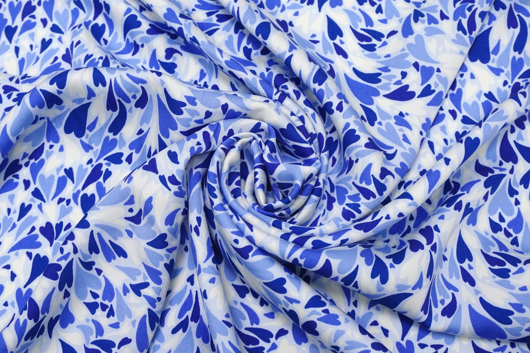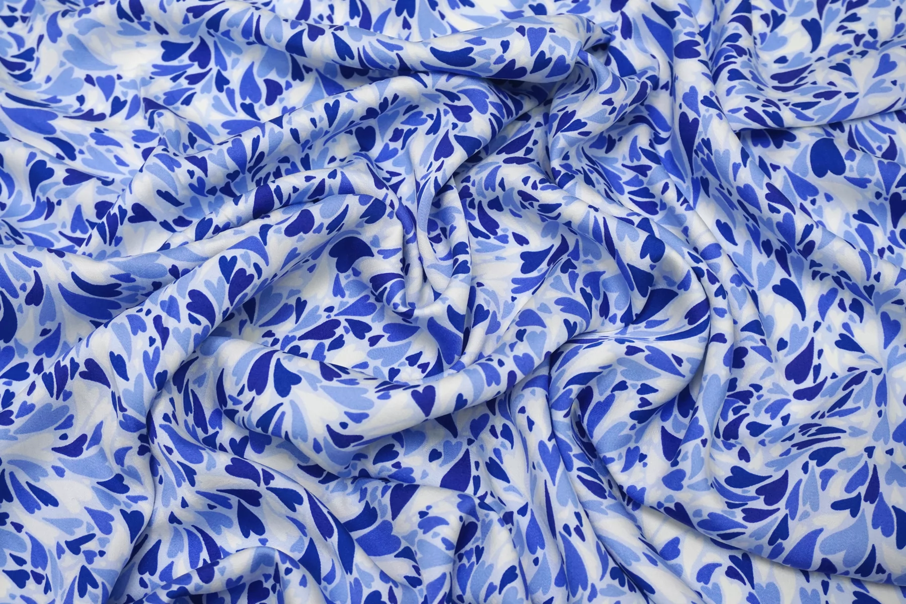 Атласная вискоза плательная Сердечки на голубом SMF H21/10 H30 15052510
