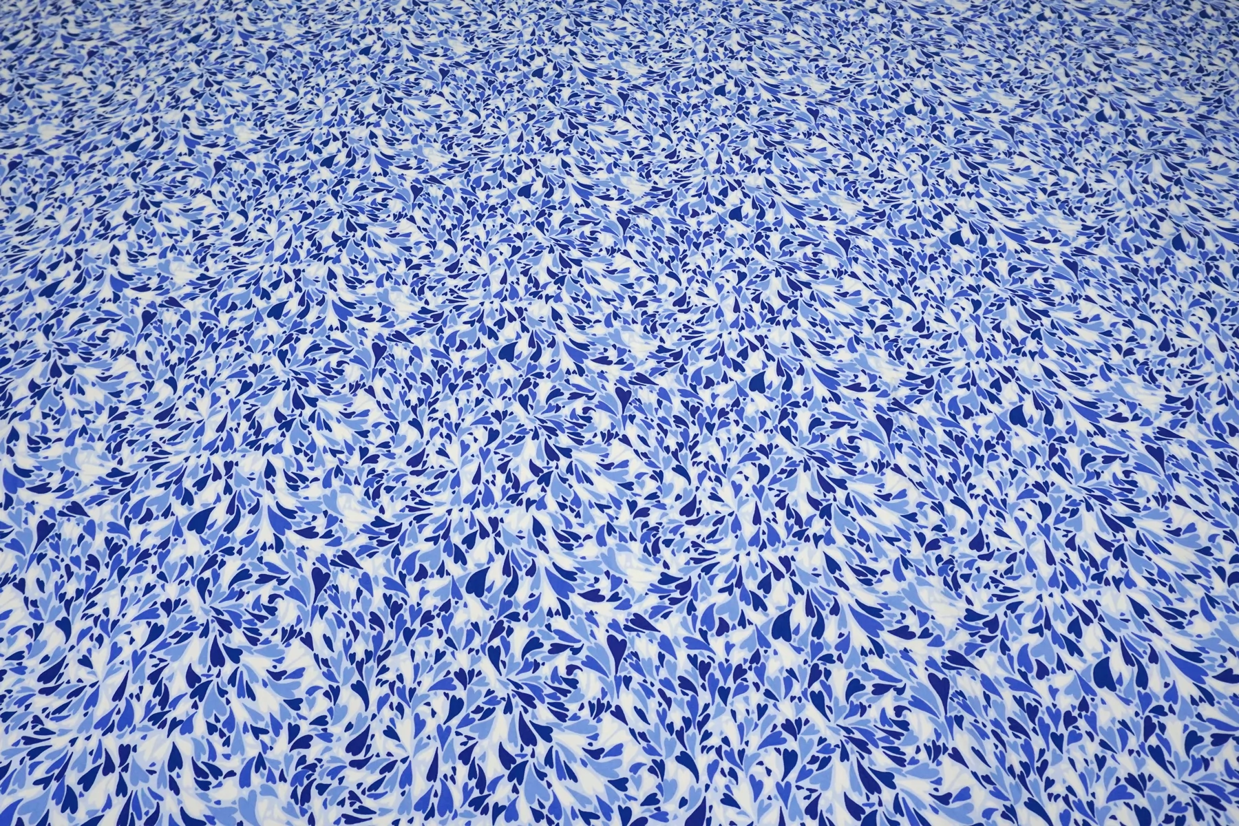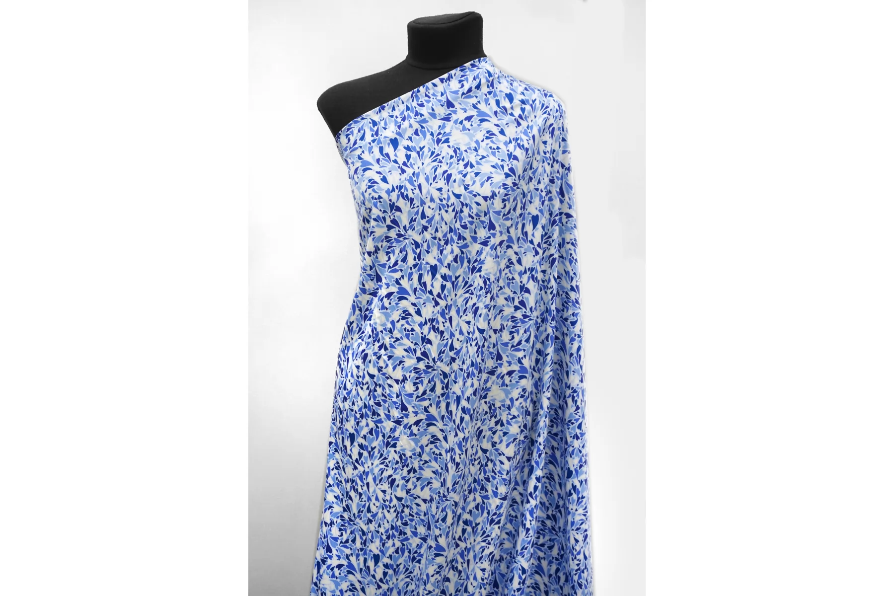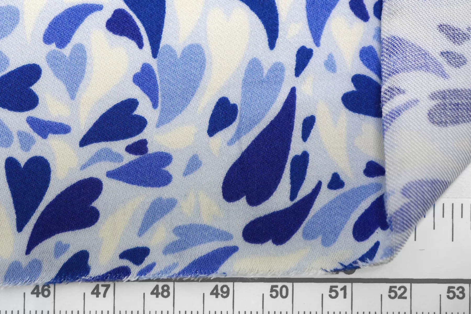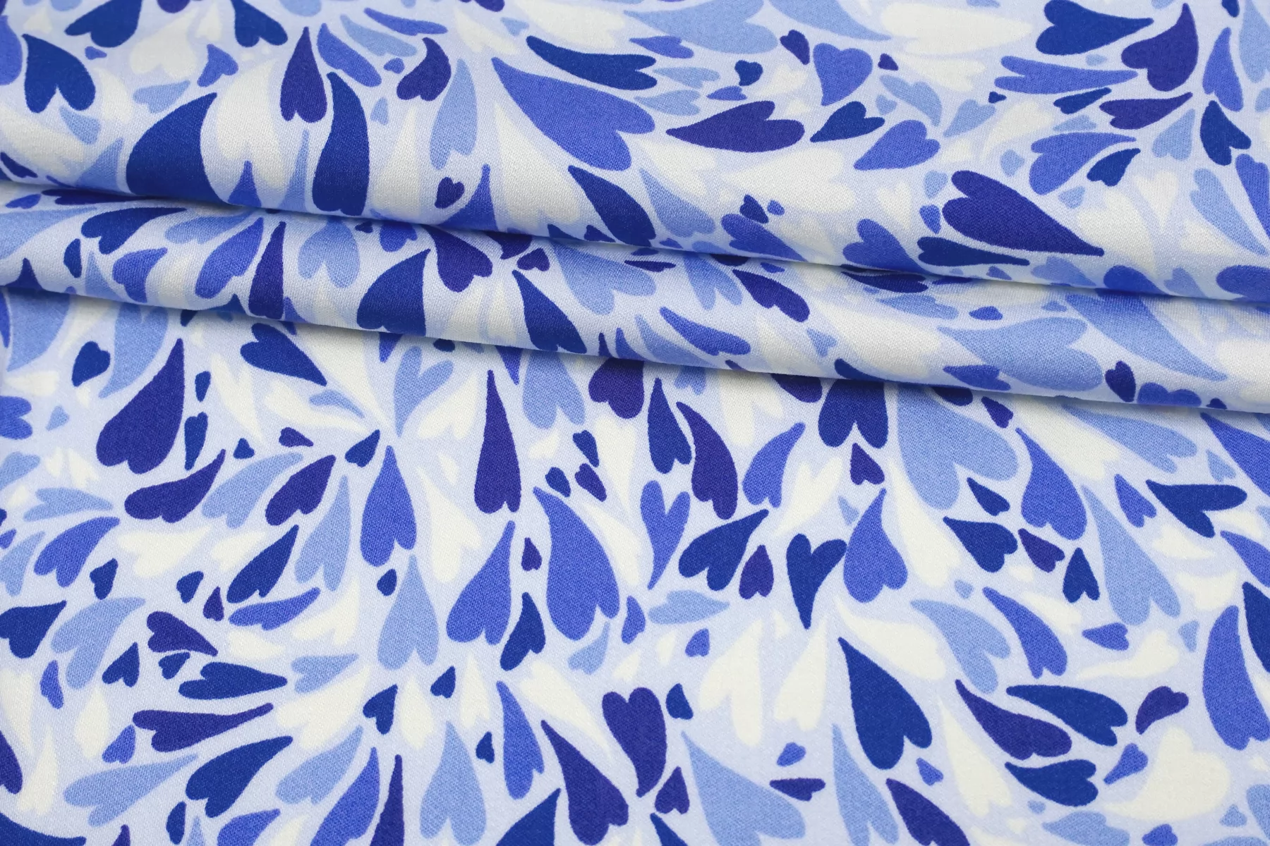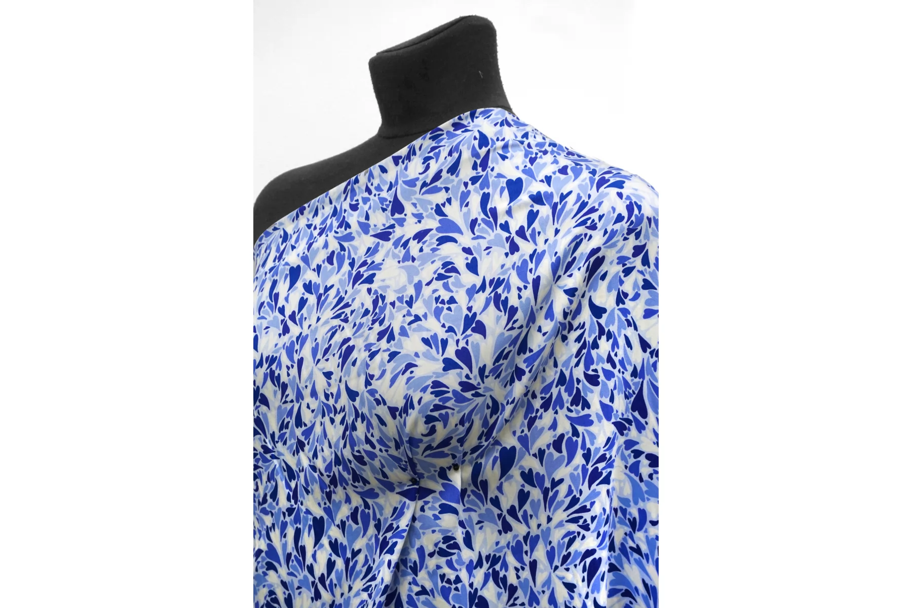 Красивая атласная вискоза, с принтом в виде сердечек на светло-голубом фоне. Материал тактильно очень приятный, гладкий и очень мягкий. Красив в складке и хорошо драпируется. Не тянется. Легкая и струящаяся ткань. Слегка просвечивает силуэт на просвет. Шикарный вариант на одежду в бельевом стиле, на платье, халат, кимоно, блузку или юбку. Обязательно учитывайте усадку 5-10%. Шить изделия из данного материала рекомендуем тонкой иглой.