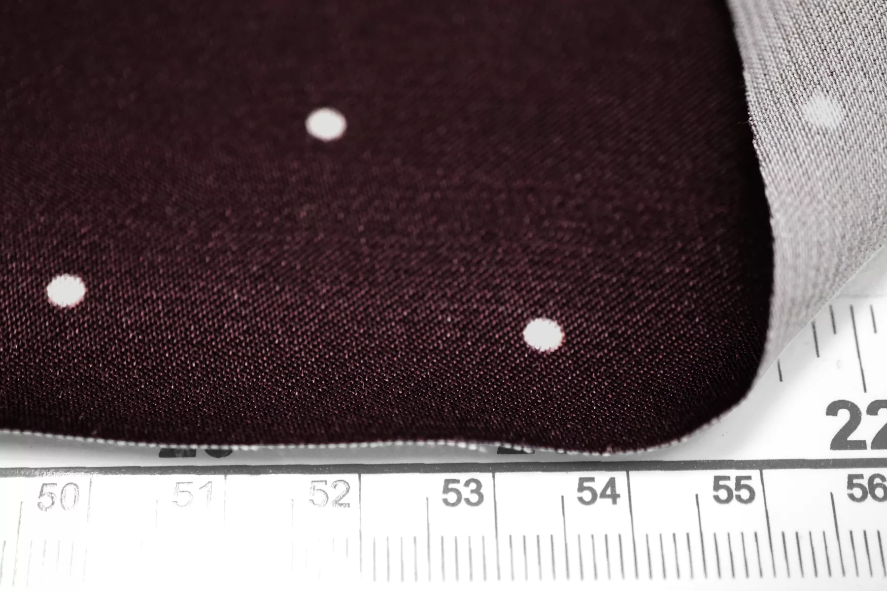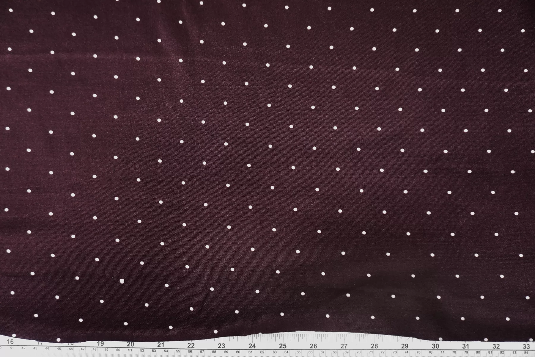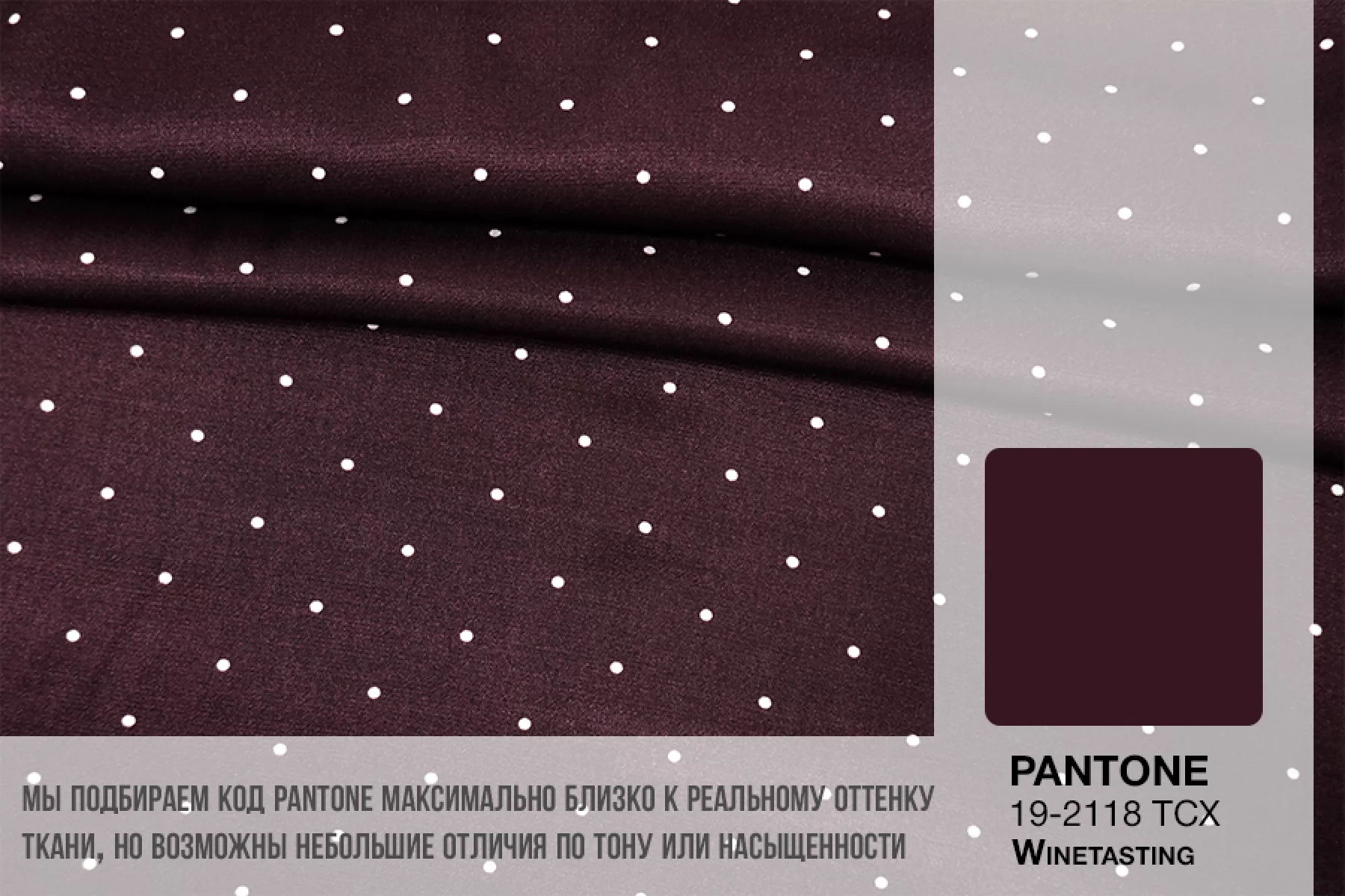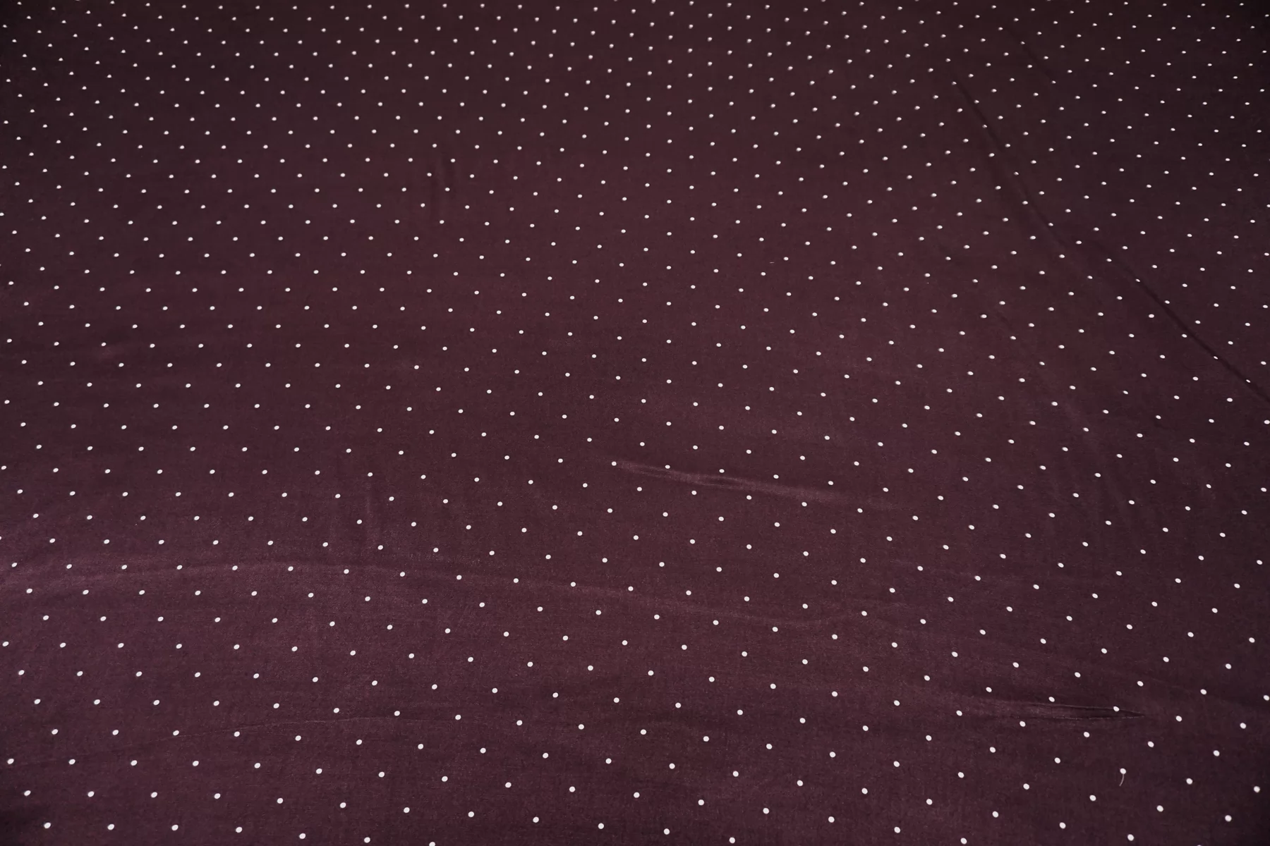 Красивая атласная вискоза, насыщенного, сливового цвета, в мелкий белый горошек. Материал тактильно очень приятный, гладкий и очень мягкий. Красив в складке и хорошо драпируется. Не тянется. Ниспадающая и струящаяся ткань. Не просвечивает. Шикарный вариант на одежду в бельевом стиле, на платье, халат, кимоно, юбку, костюм в пижамном стиле. Обязательно учитывайте усадку 5-10%. Шить изделия из данного материала рекомендуем тонкой иглой.