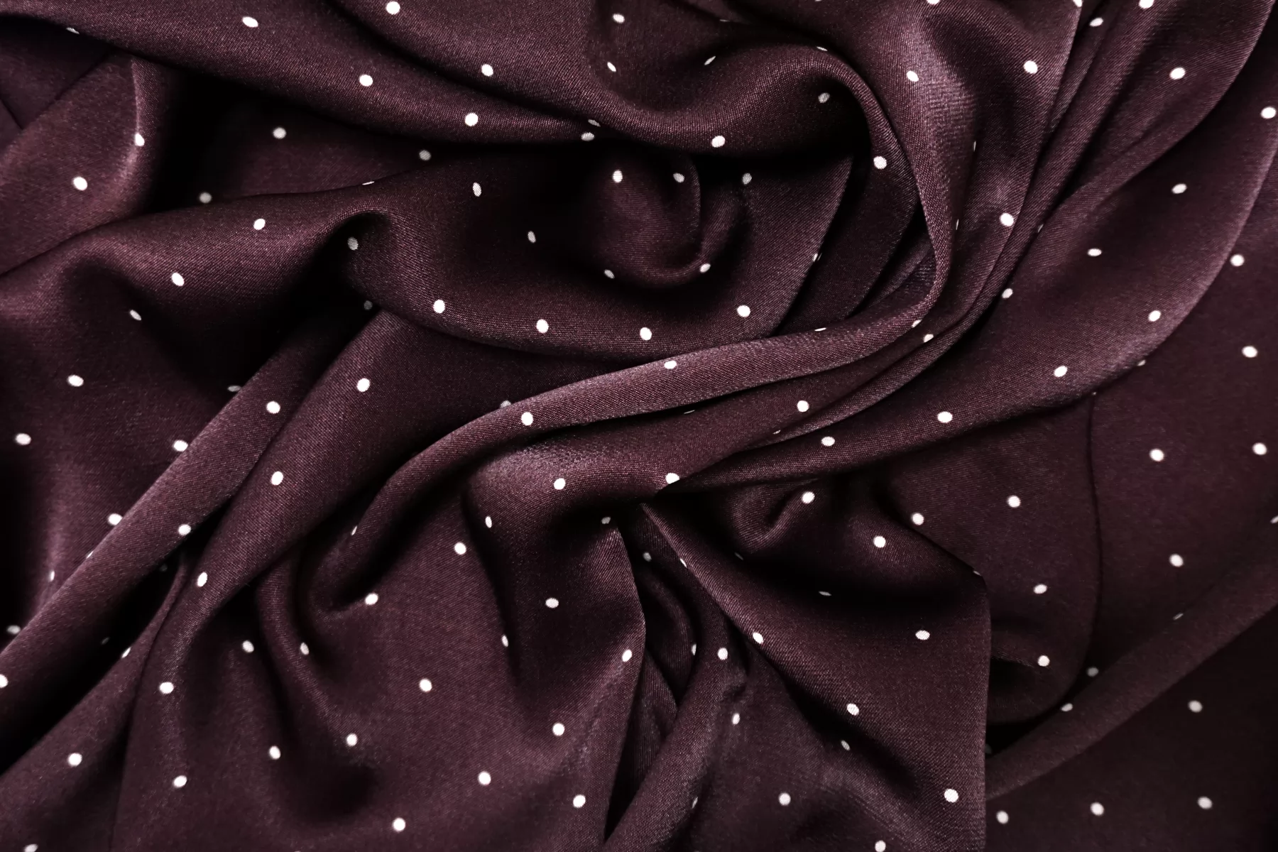 Атласная вискоза плательная в горошек Сливовая CVC H21/4 i70 21112575
