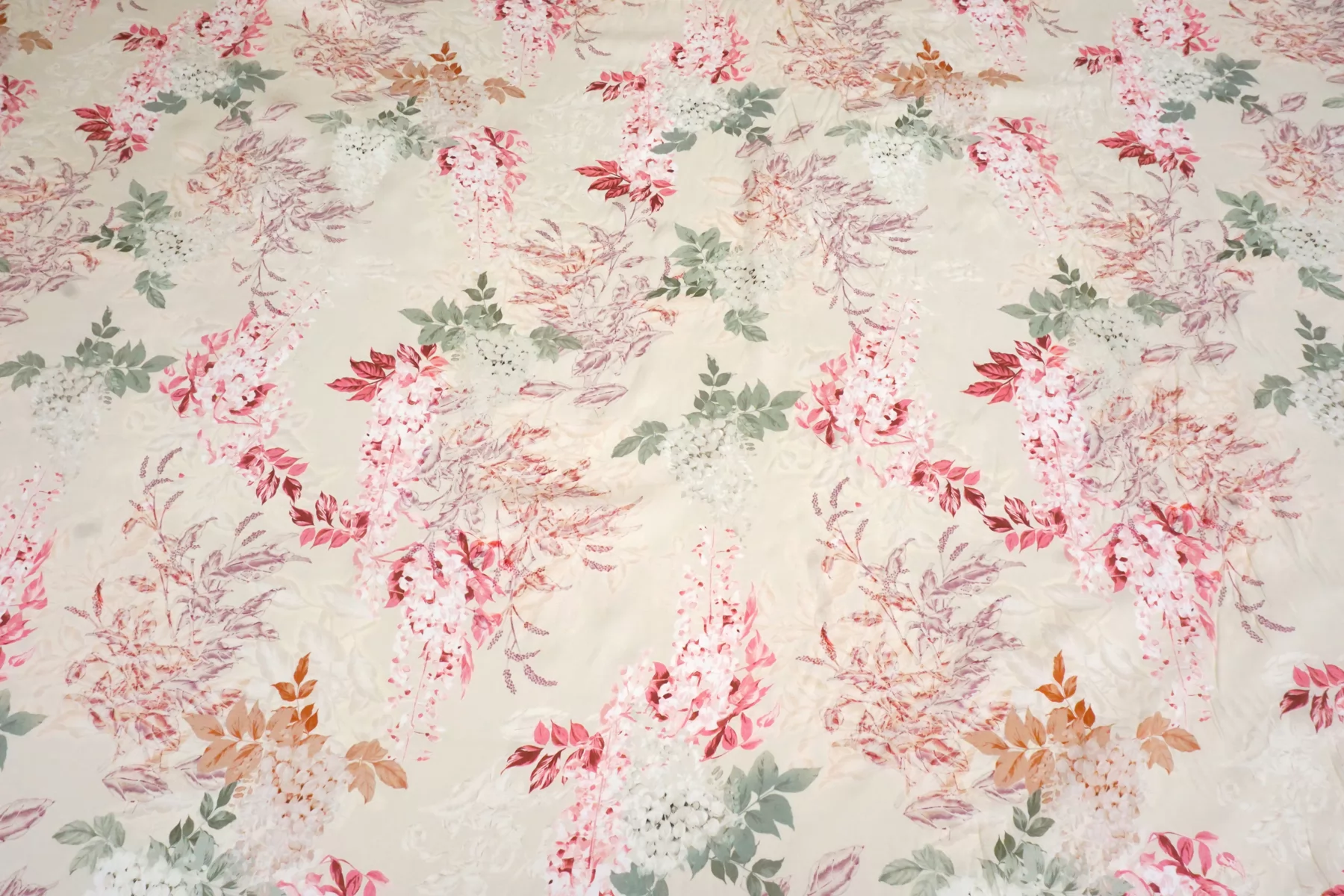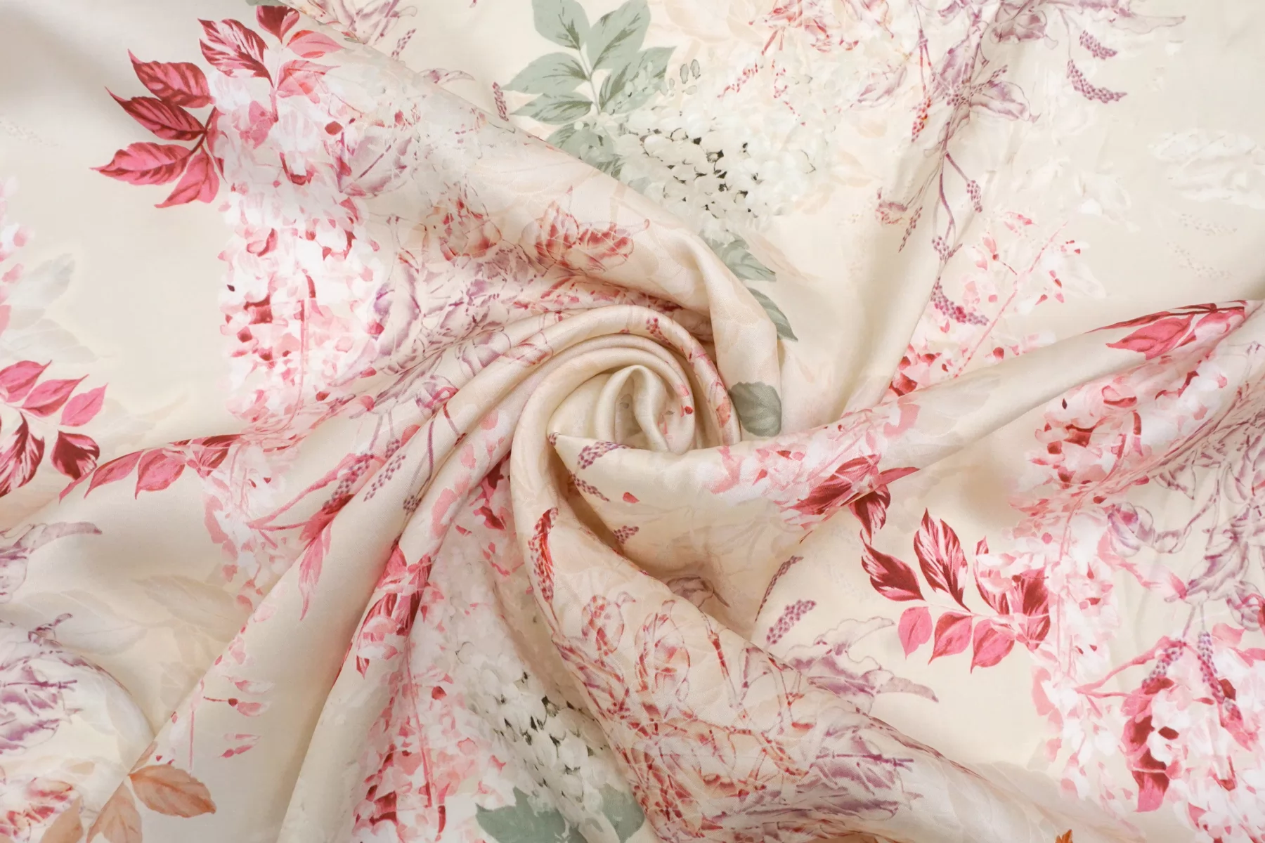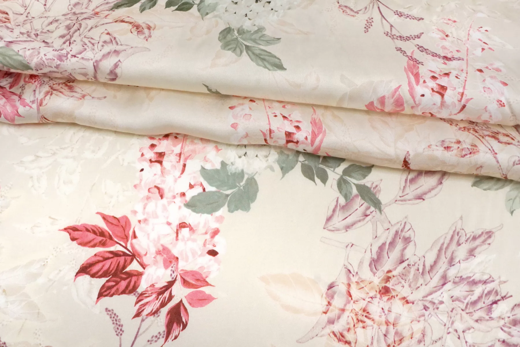 Атласная вискоза плательно-блузочная MAX MARA Цветы на кремовом MM H21/2 i30 1102530