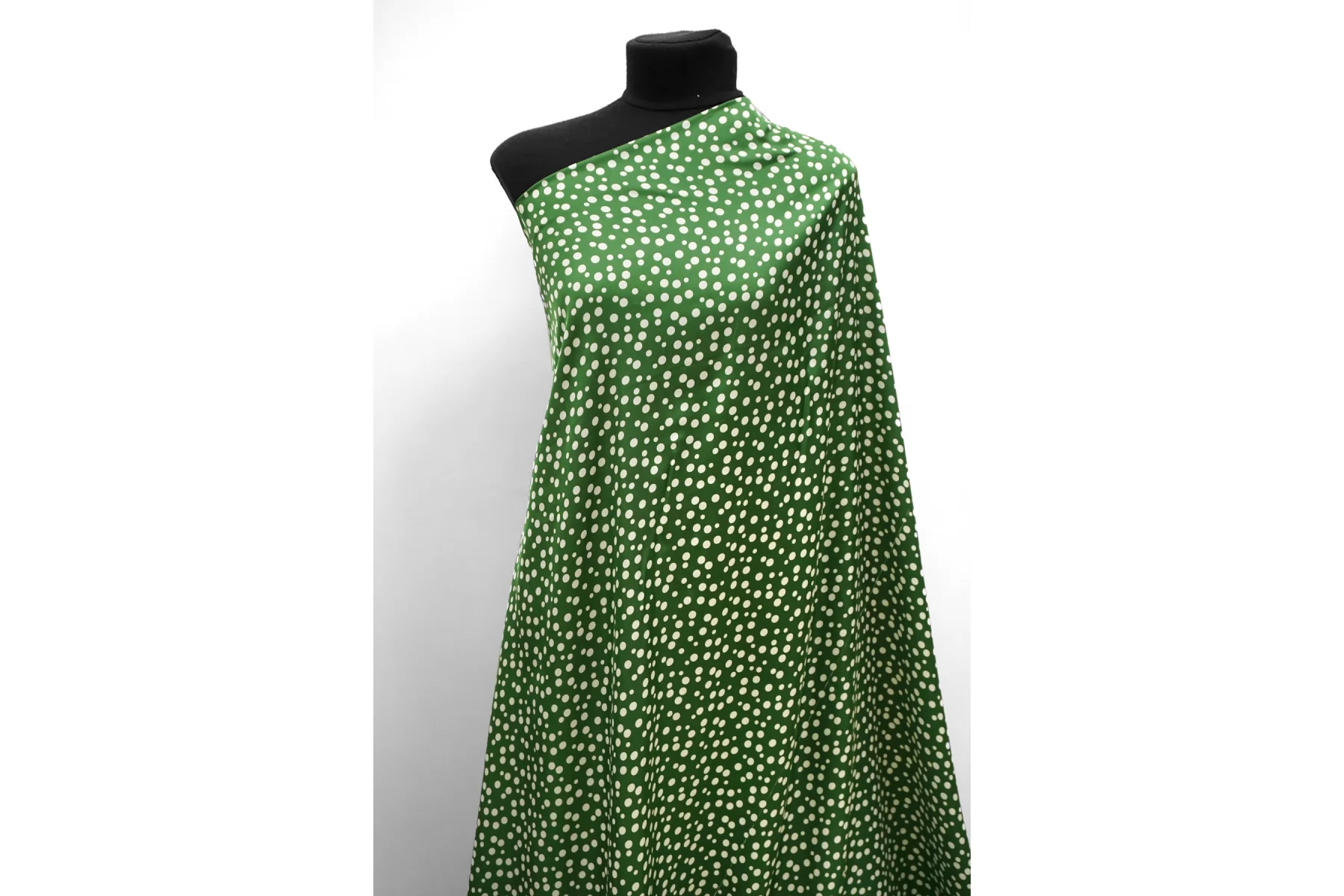 Атласная вискоза плательно-блузочная в Горошек на зелёном SMF H21/5 H50 15052504