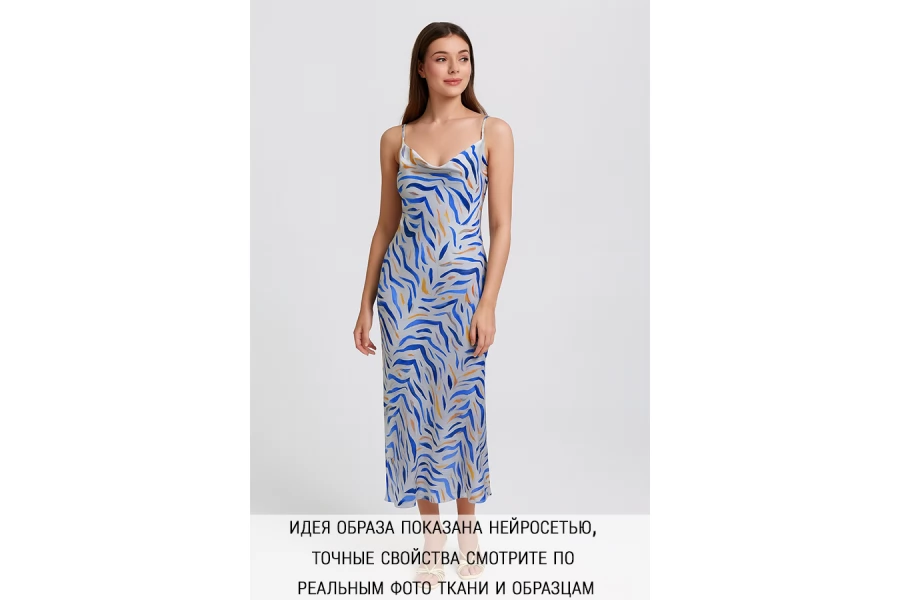 Итальянская атласная плательная вискоза стрейч голубого оттенка. Плотная, но тонкая, легкая, пластичная, с атласным плетением. Не просвечивает. Немного сминается. Тянется. Подойдет для пошива платья, юбки, туники, блузки, рубашки. При работе с этой тканью советуем использовать тонкие иглы и нитки.