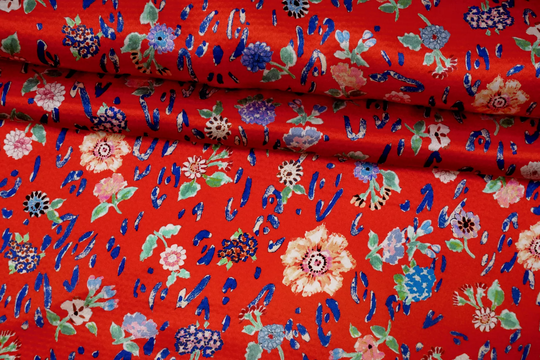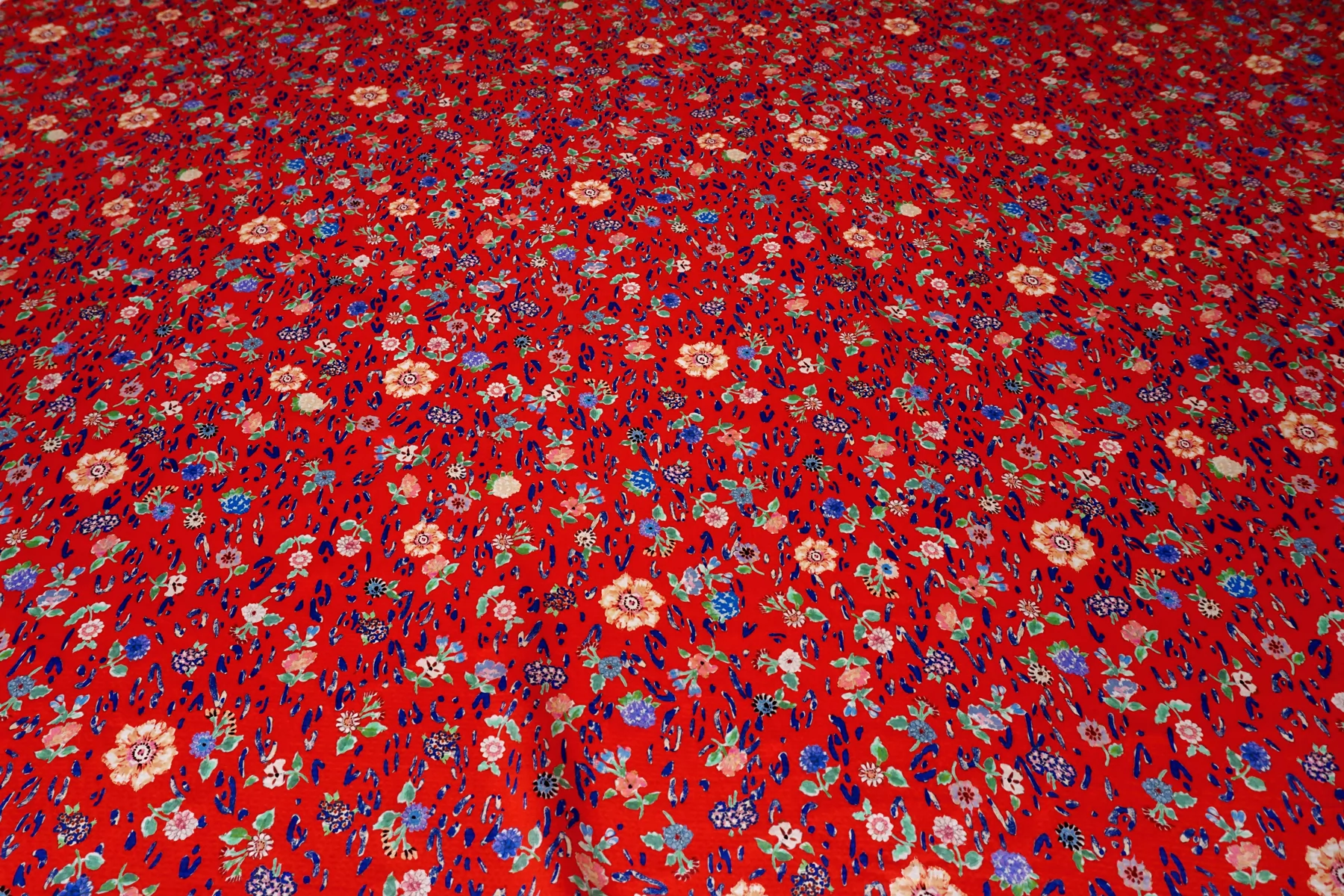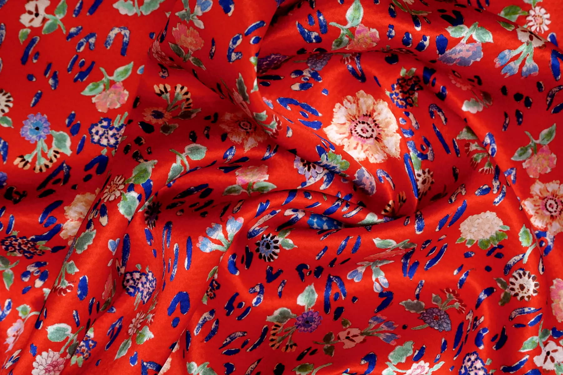 Атласный сирсакер шёлковый плательно-блузочный FORTE FORTE Цветы на красном TRC H31/1 N30 12122555