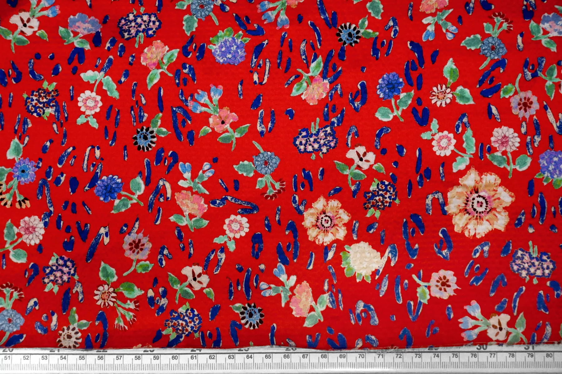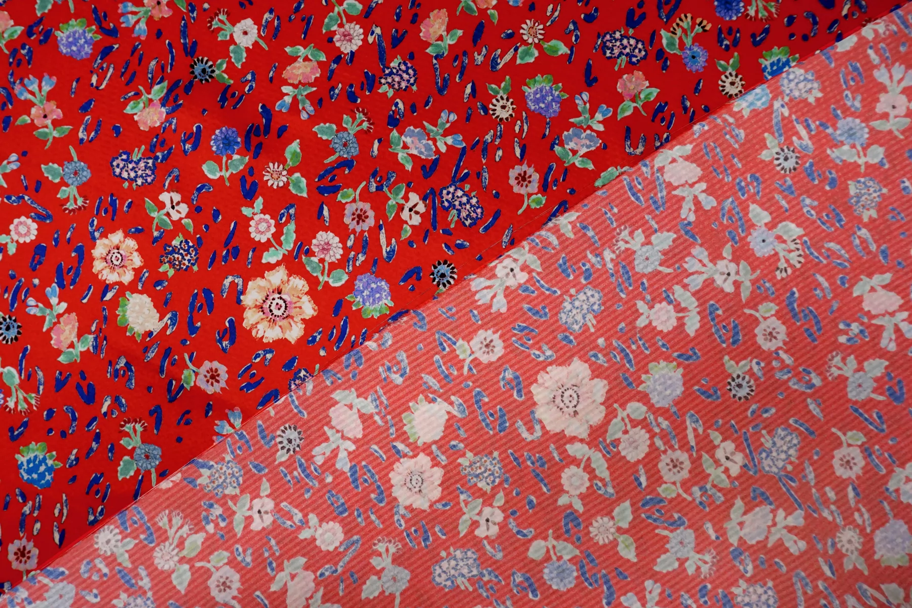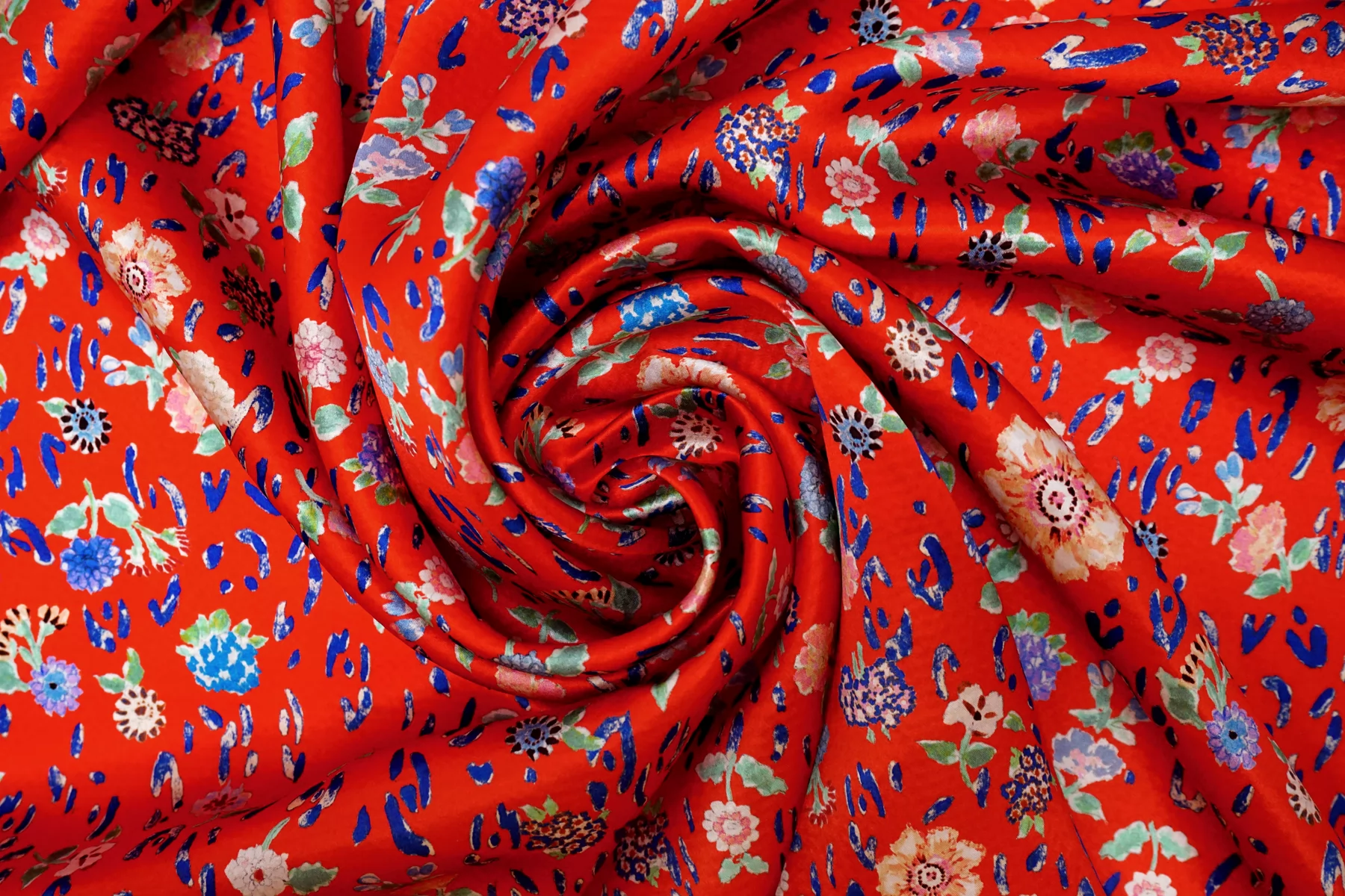Атласный сирсакер шёлковый плательно-блузочный FORTE FORTE Цветы на красном TRC H31/1 N30 12122555