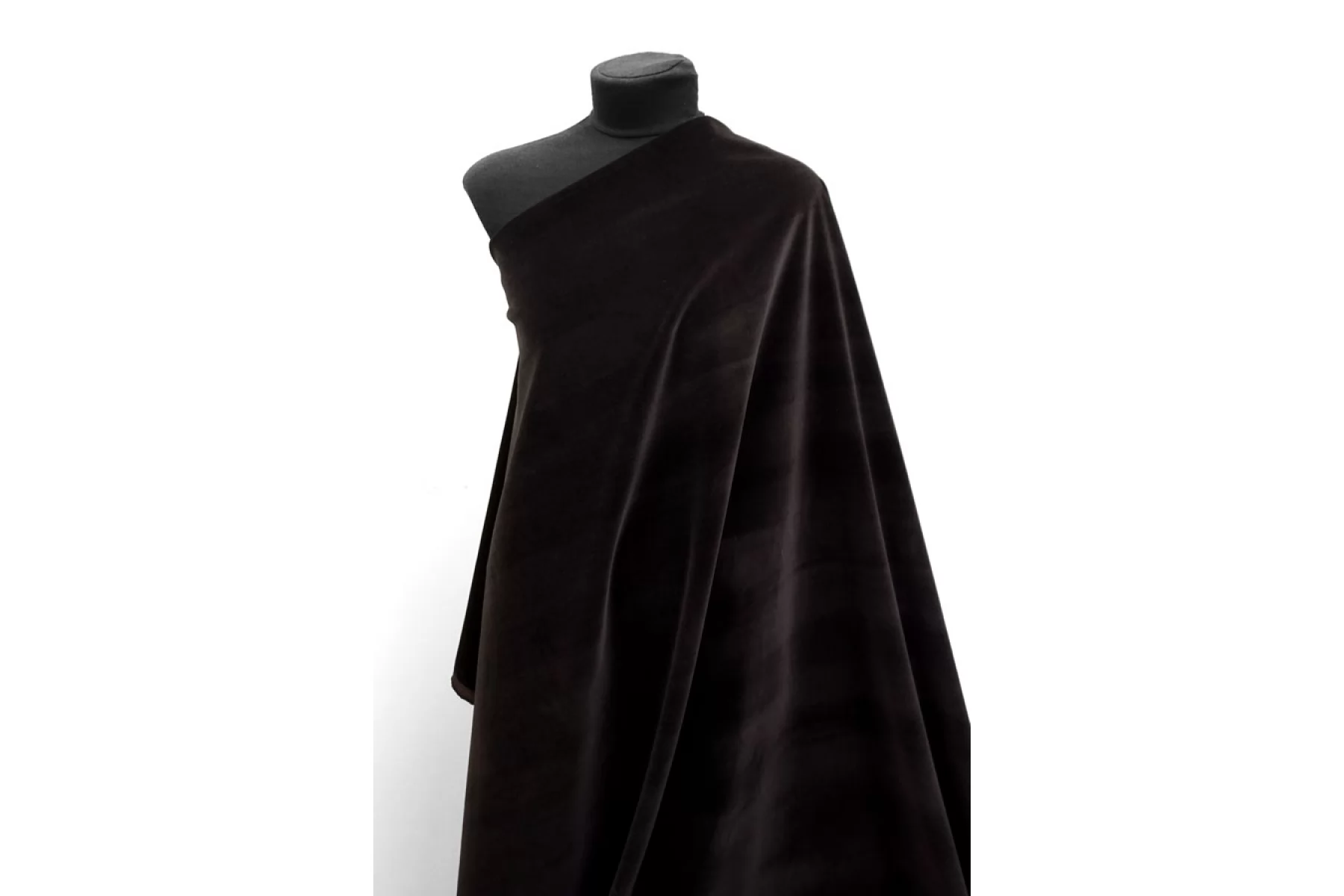 Хлопковый костюмно-плательный бархат от бренда TOM FORD в коричневом оттенке. Приятный, мягкий. Полотно около 1 мм толщиной. Немного тянется, не просвечивает. Отлично держит форму. Обладает нежным бархатным лоском. Отлично драпируется. Ворс короткий, направленный. Сминается. На платья, жакеты, костюмы, юбки и не только.