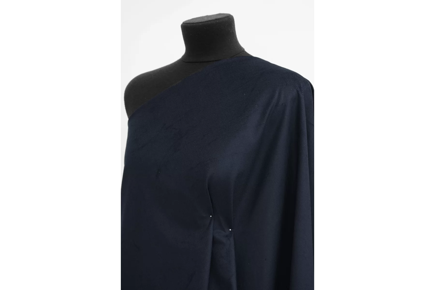 Интересная и необычная позиция - хлопковый стриженный бархат глубокого синего оттенка. По фактуре слегка напоминает вельвет. Тактильно приятный, мягкий, формодержащий. Обладает приятным лоском. Слегка похрустывает. Неплохо тянется за счет эластана, не просвечивает. Сминается. Шьем костюмы, жакеты, юбки и платья.