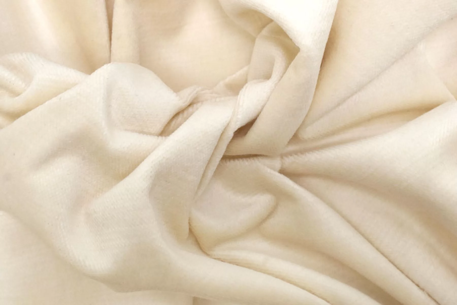 !ВНИМАНИЕ! ПО ВСЕМУ РУЛОНУ ВСТРЕЧАЮТСЯ ЧАСТЫЕ ТОЧКИ/ВКРАПЛЕНИЯ ЗАМЕТНЫЕ С ИЗНАНКИ! Костюмно-плательный бархат кремового оттенка. Приятный и бархатистый наощупь. Тонкий, но плотный. Не тянется, не просвечивает. Обладает приятным бархатным лоском. Пластичный. Отлично драпируется и неплохо. держит форму. Слегка сминается, но восстанавливается. Прекрасно подойдет на платья, жакеты, костюмные варианты, юбки и не только.