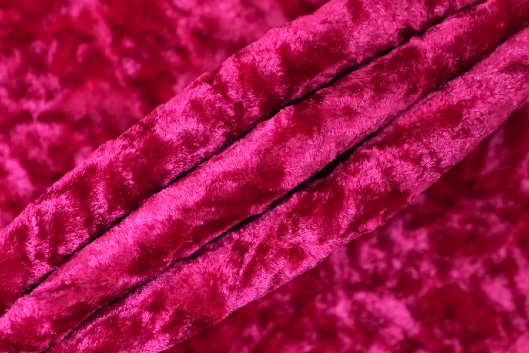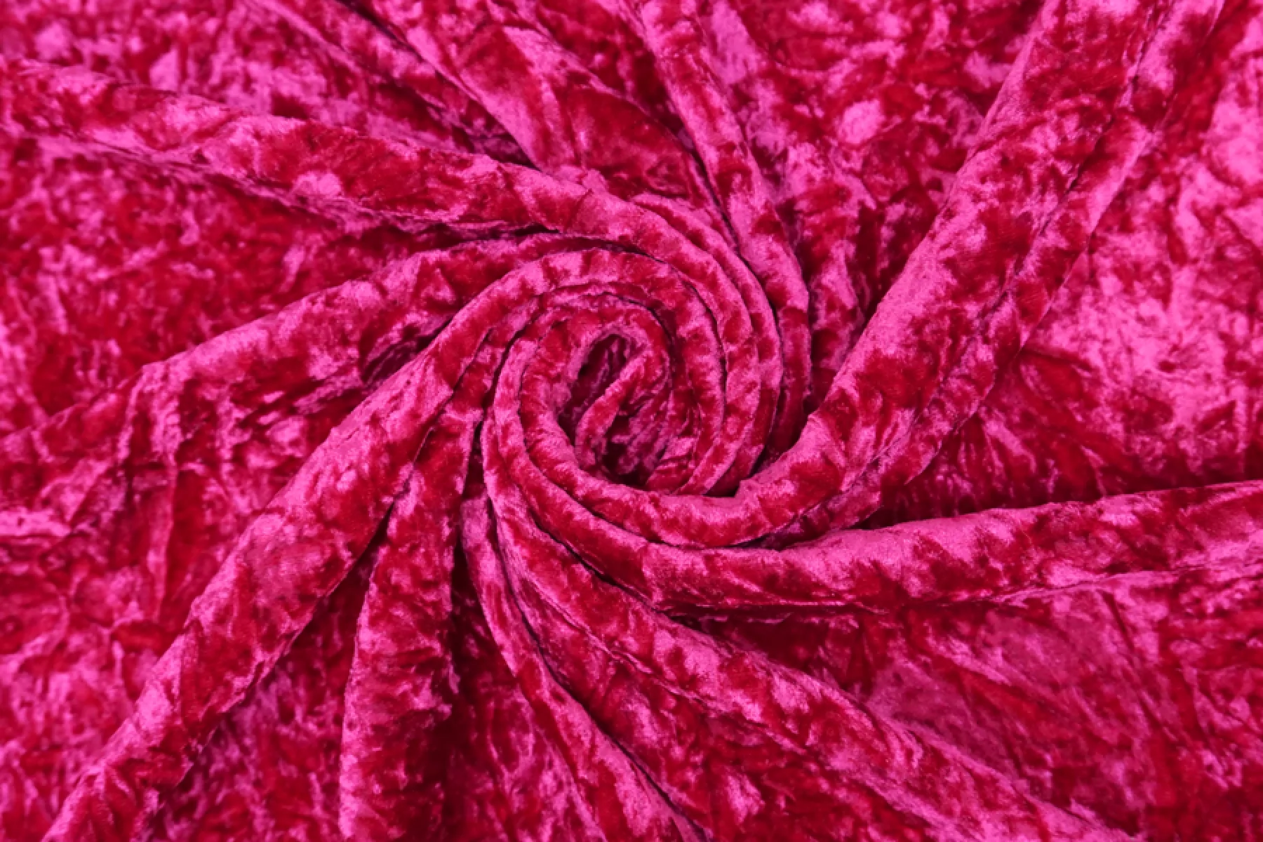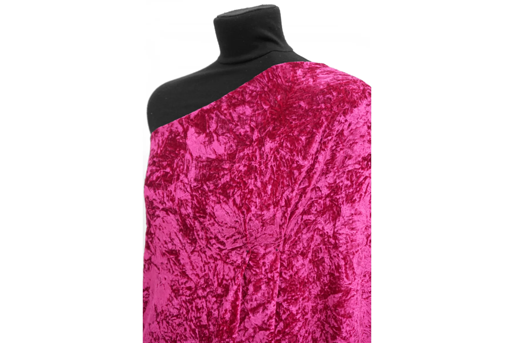 Шикарнейшего качества и очень красивый бархат на шелковой основе в насыщенном оттенке розовой фуксии. Тактильно тонкий, мягкий, приятный, пластичный. Материал жатый. Обладает красивым бархатным блеском. Не тянется. Не просвечивает, но т.к. само по себе полотно нетолстое, если смотреть прямо на просвет, будет заметна тень силуэта. Хорошо драпируется. Форму не держит. Шьем платья и костюмы в бельевом и пижамном стиле, кимоно и не только. Уход деликатный.