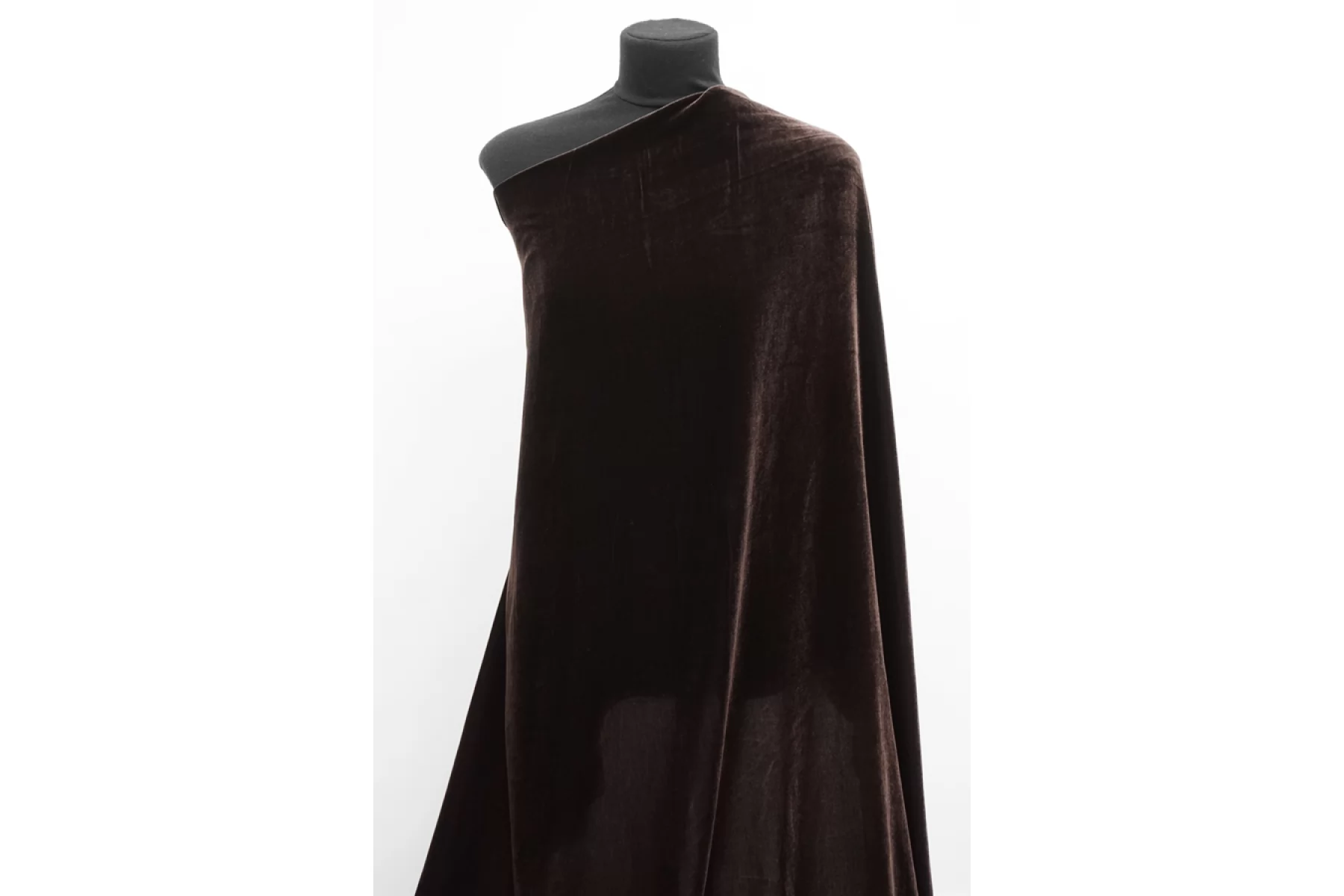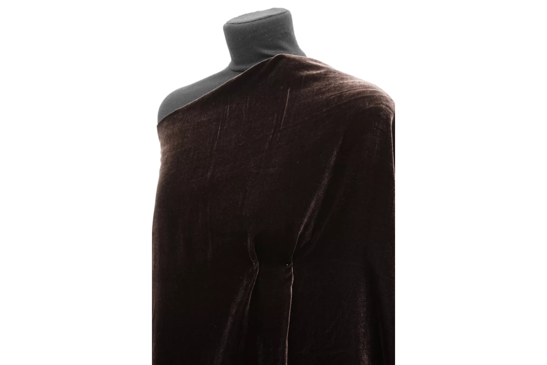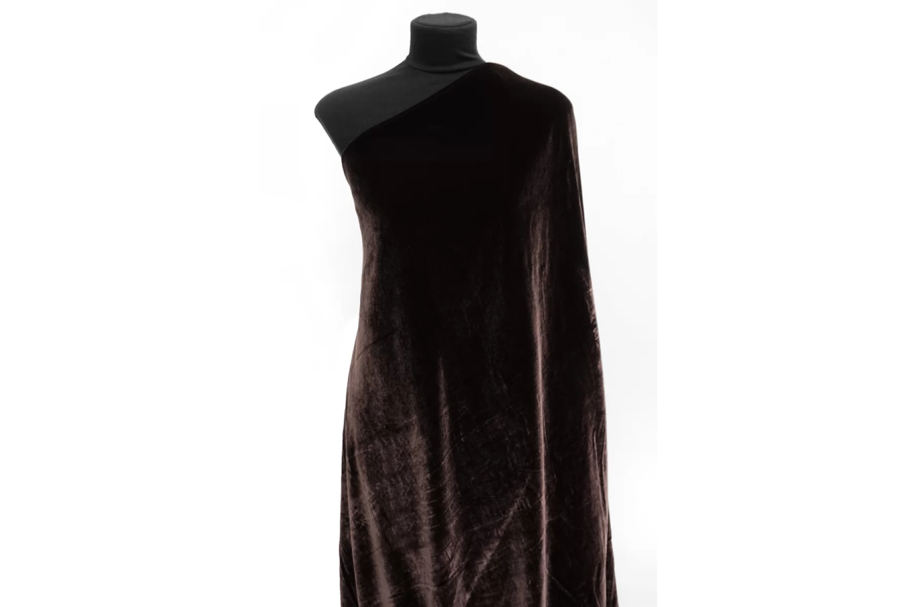 Шикарный вискозный бархат на шелковой основе в оттенке горького шоколада. Ворс достаточно короткий, а сам материал тонкий, но пластичный. Тактильно приятный, мягкий. Немного просвечивает силуэт на просвет. Красиво выглядит в драпировках и обладает прекрасным лоском. Не тянется. Подойдет на платья, юбки, мягкие жакеты и не только. При необходимости используйте подкладочный материал. Уход деликатный.