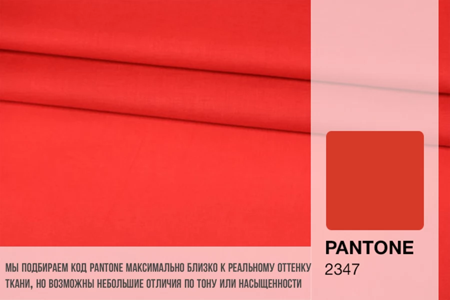 Довольно плотный хлопковый батист в алом оттенке. Гладкий, с красивым лоском, хорошо держит форму. Слегка просвечивает силуэт, не тянется. Можно использовать как в роли подкладки, так и для создания многослойных изделий, блузки, рубашки, юбки. Также можно использовать для пошива детской одежды.