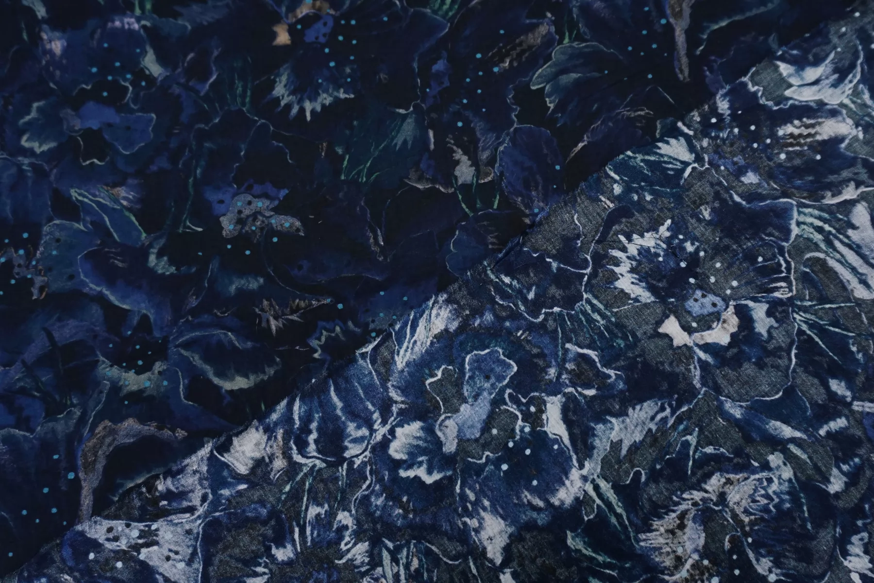 Батист хлопковый Черно-синий Цветы FRM H2/2 A33 29062570