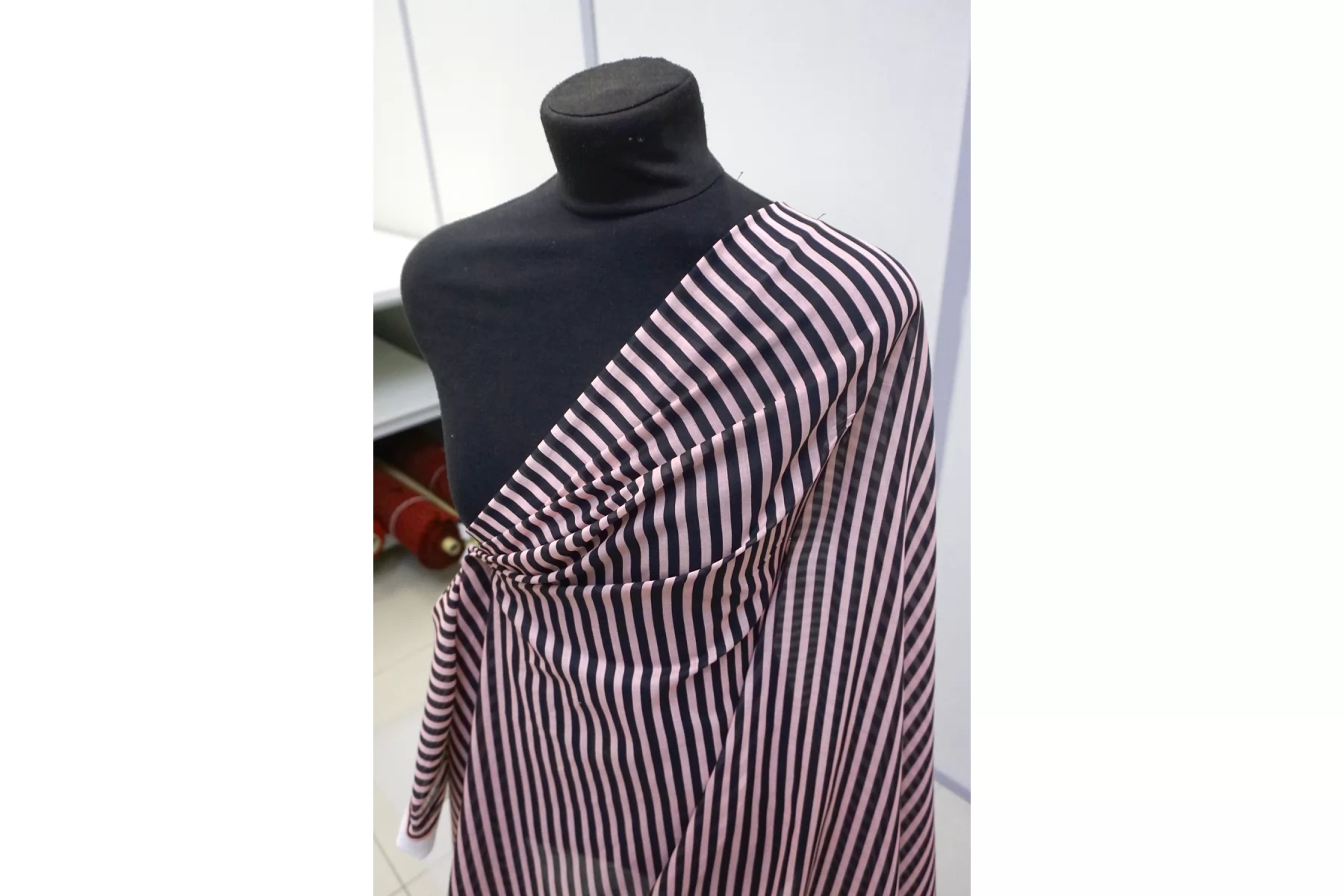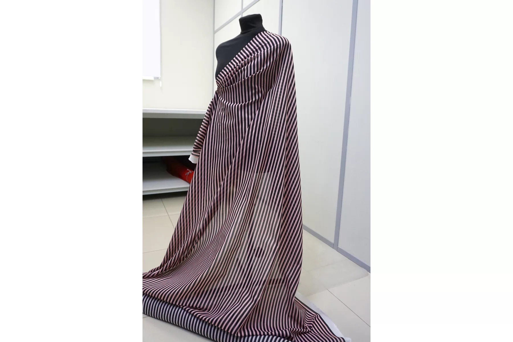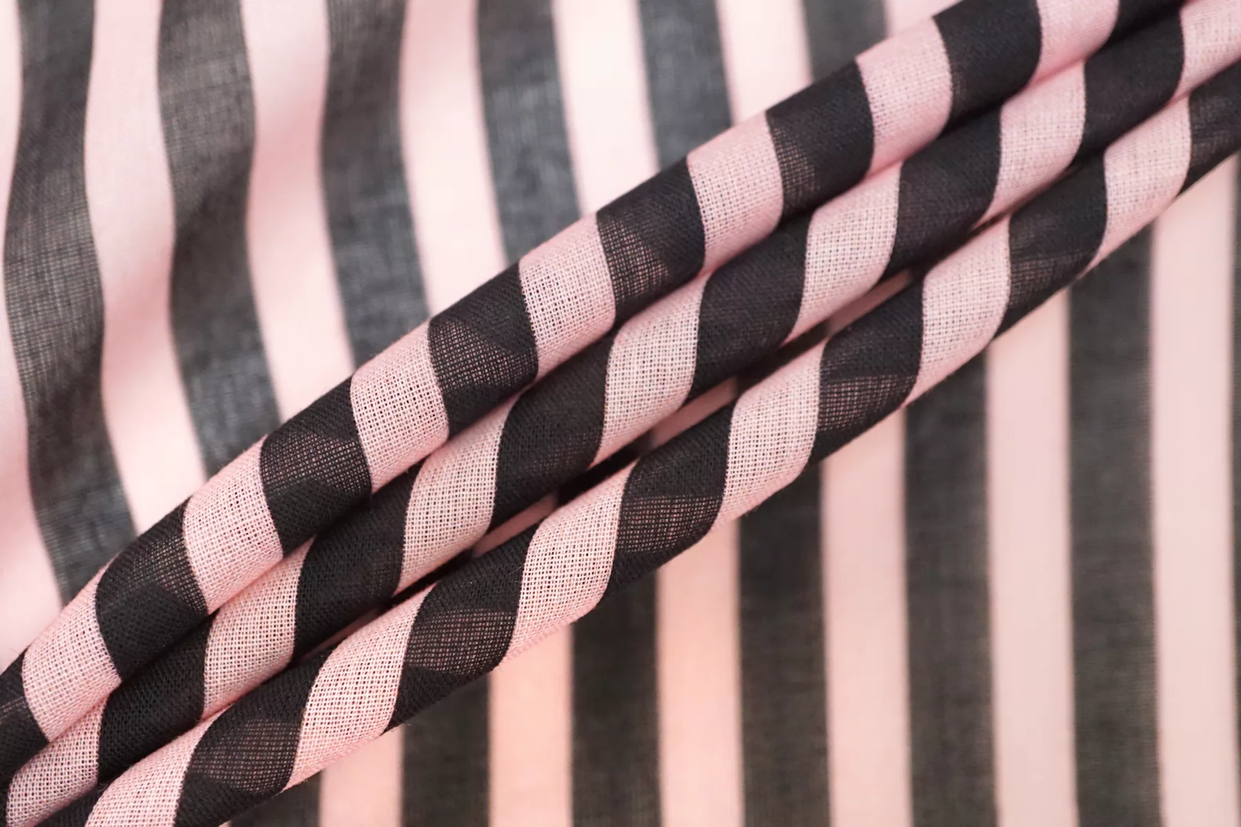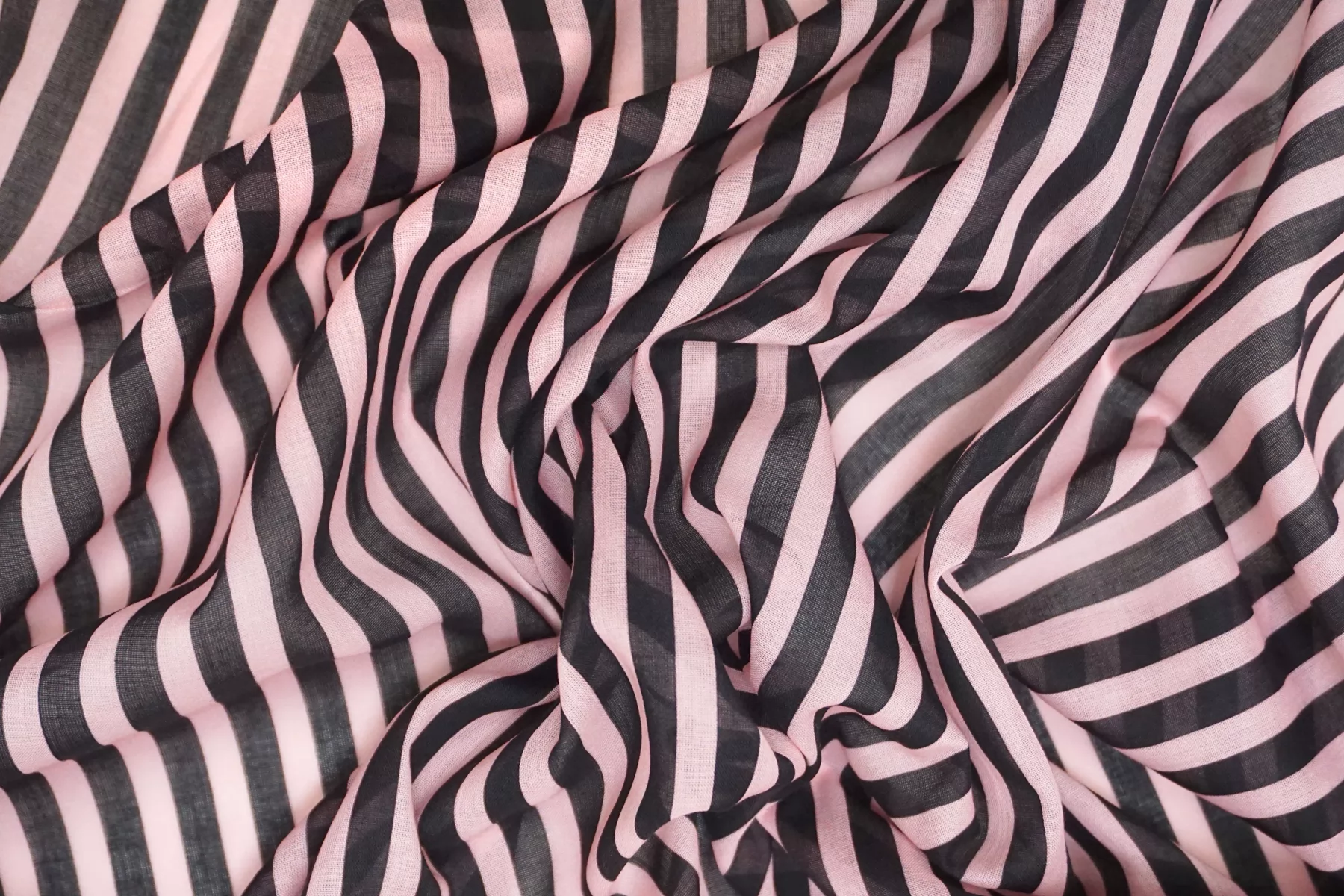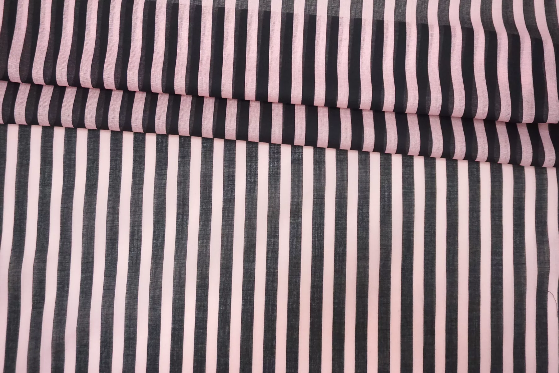 Хлопковый батист в полоску чёрно-розовую (проходит параллельно кромке). Мягкий, тонкий, приятный, легкий, летящий. Сминается. Не тянется. Просвечивает . Хорошо драпируется, форму держит слабо. Пластичный. На рубашки, платья, юбки, сарафаны и не только. При необходимости используйте подкладочный материал.