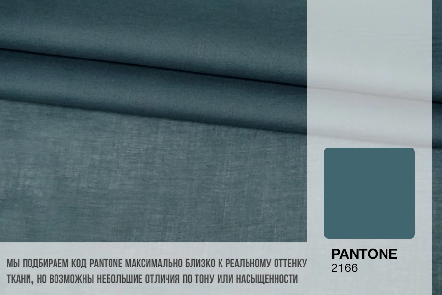 Тонкий хлопковый батист в сине-зеленом оттенке. Гладкий, с легким лоском, неплохо держит форму. Просвечивает, не тянется. Можно использовать как в роли подкладки, так и для создания многослойных изделий, блузки, рубашки, юбки. Также можно использовать для пошива детской одежды.