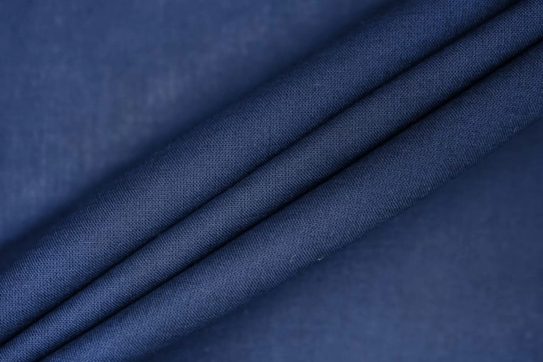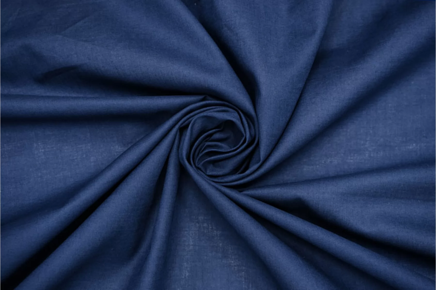 Довольно плотный хлопковый батист в синим цвете в оттенке сапфир. Гладкий, с легким лоском, неплохо держит форму. Просвечивает, не тянется. Можно использовать как в роли подкладки, так и для создания многослойных изделий, блузки, рубашки, юбки. Также можно использовать для пошива детской одежды.
