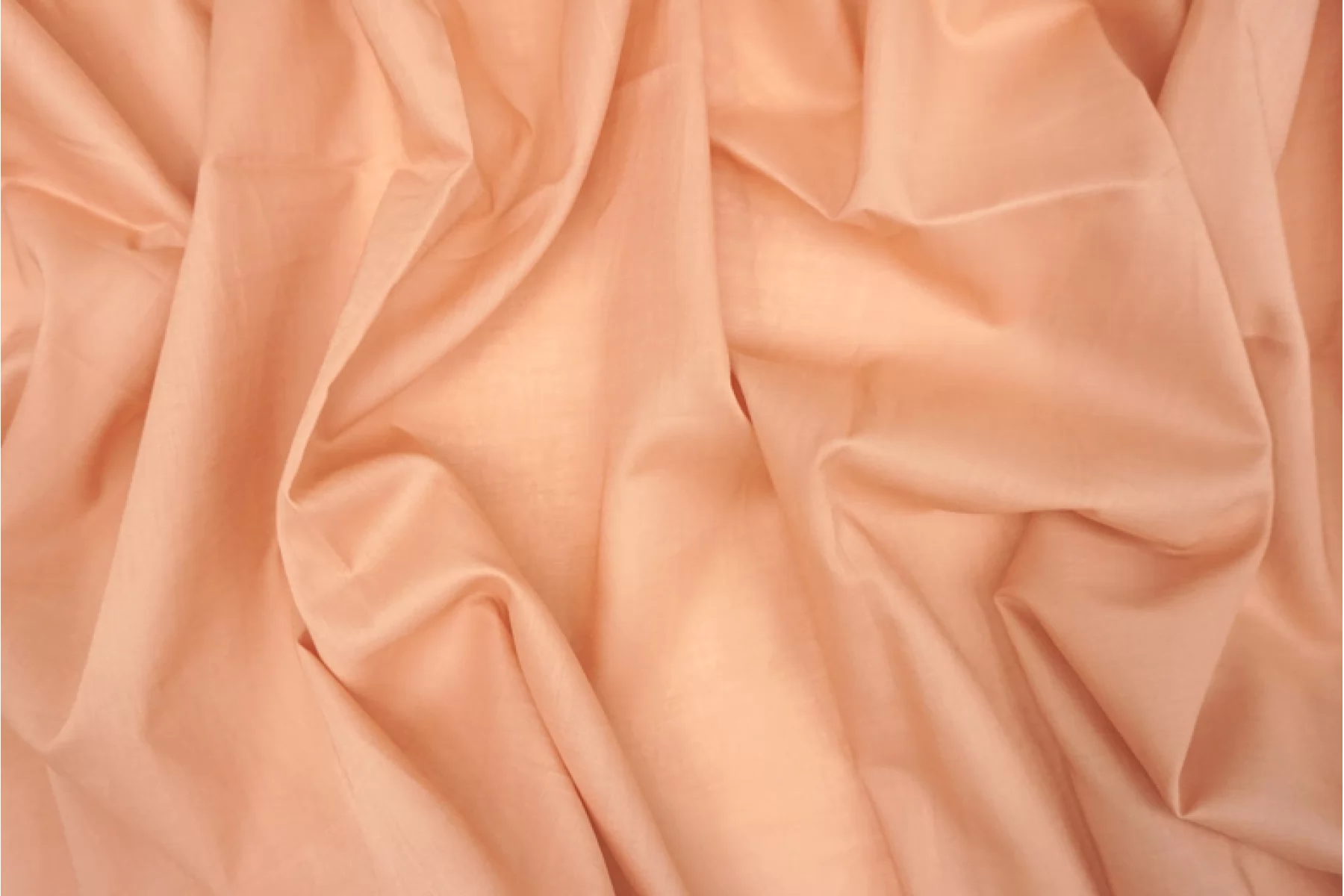 Тонкий хлопковый батист темно-персикового оттенка. Легкий, пластичный, немного просвечивает, слегка тянется за счет плетения. Хорошо драпируется. Мягкий и очень приятный тактильно. Подойдет для изделий как в