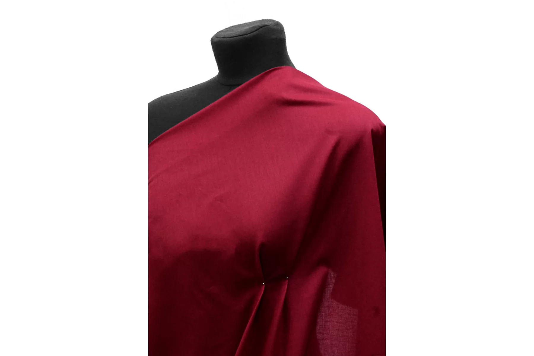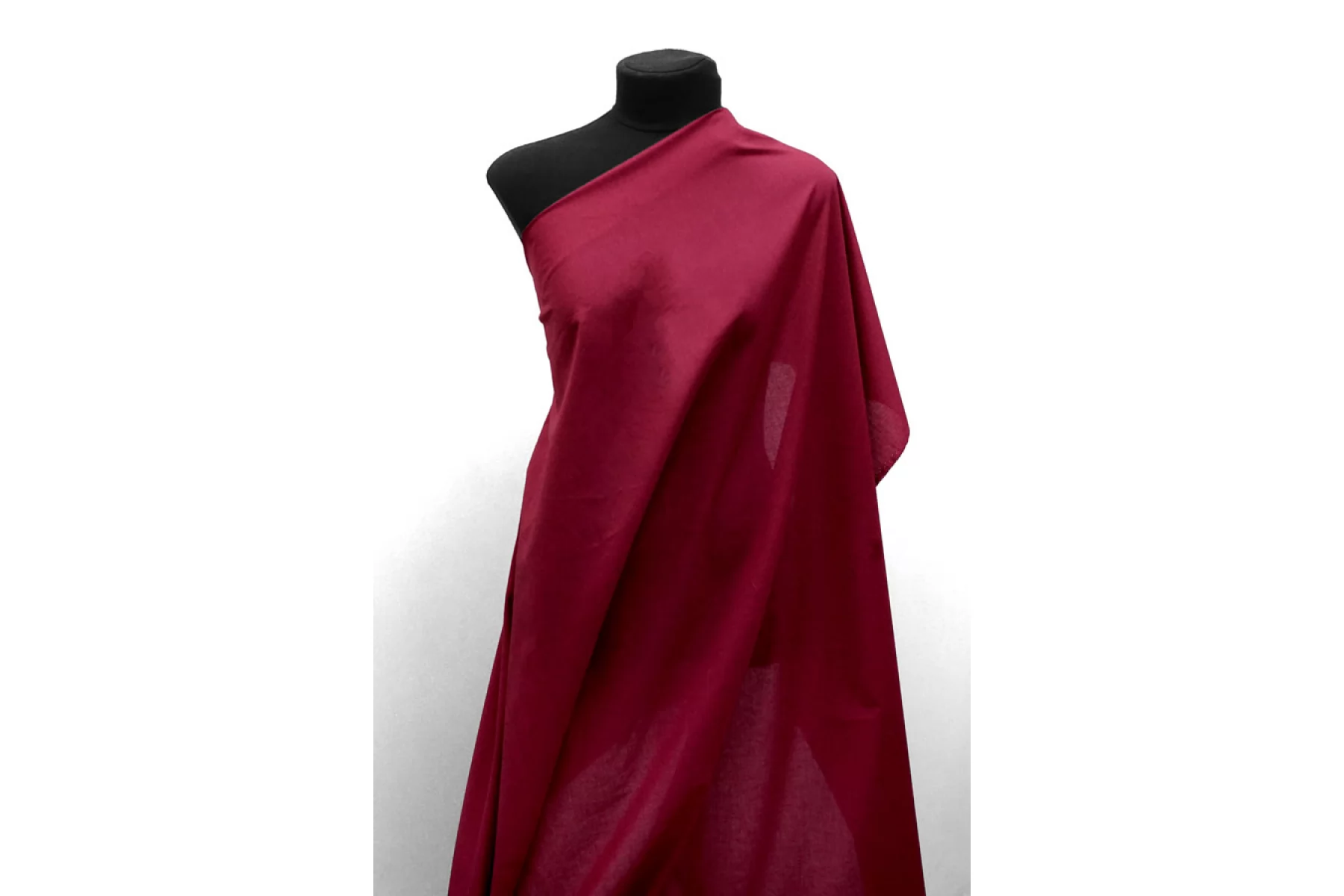 Тонкий хлопковый батист красивого, насыщенного вишнёво-ягодного цвета. Легкий, пластичный, полупрозрачный. Совсем слегка "пружинит" плетение. Можно использовать как в роли подкладки, так и для создания многослойных изделий, блузки, рубашки, юбки. Также можно использовать для пошива детской одежды.