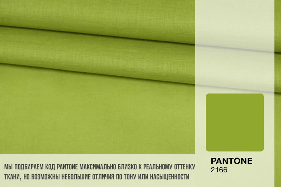 Довольно плотный хлопковый батист желтовато-зеленого оттенка. Гладкий, с красивым лоском, хорошо держит форму. Просвечивает силуэт, не тянется. Можно использовать как в роли подкладки, так и для создания многослойных изделий, блузки, рубашки, юбки. Также можно использовать для пошива детской одежды.