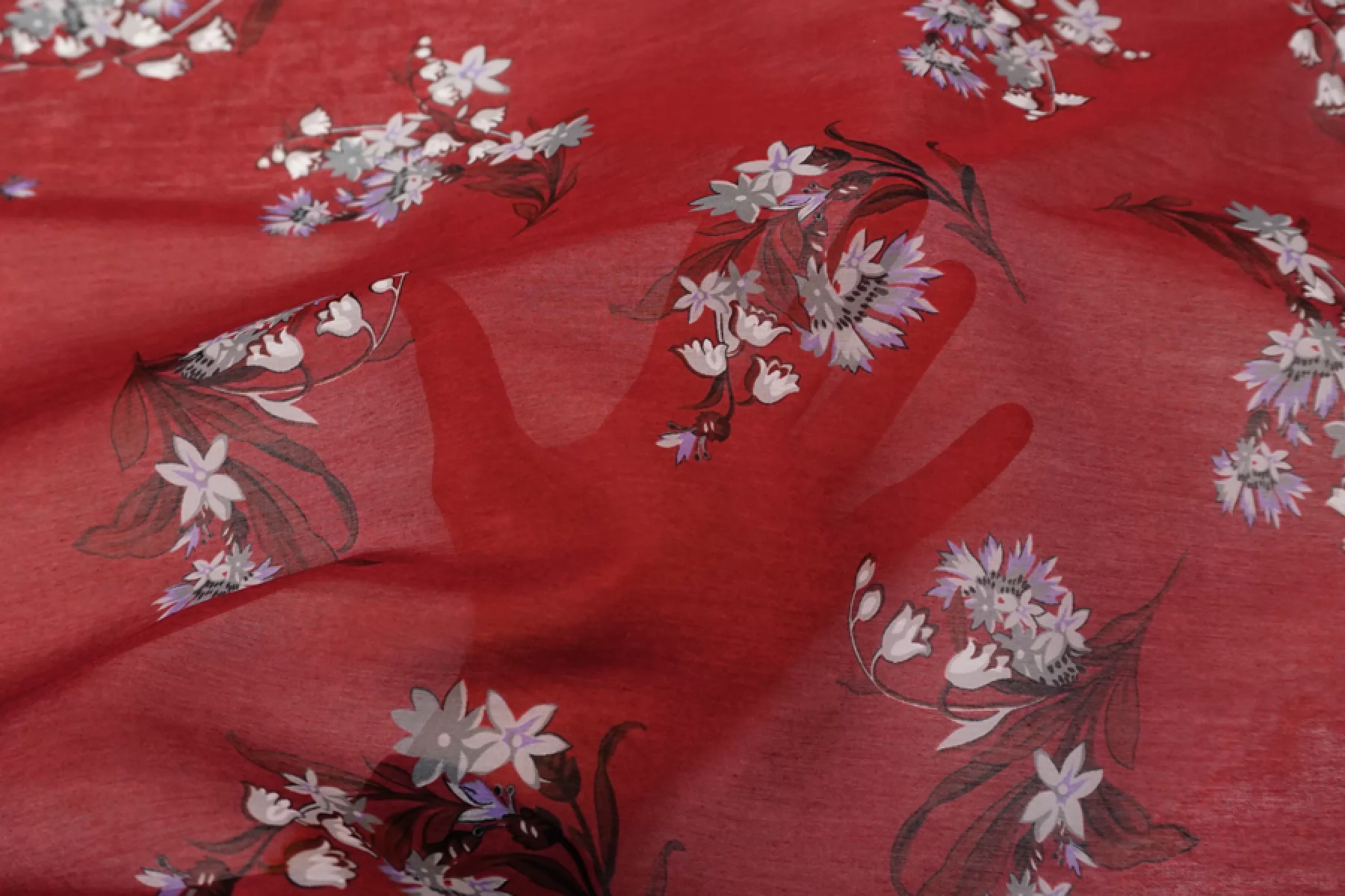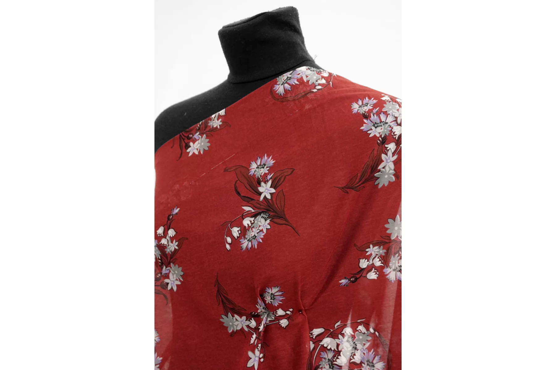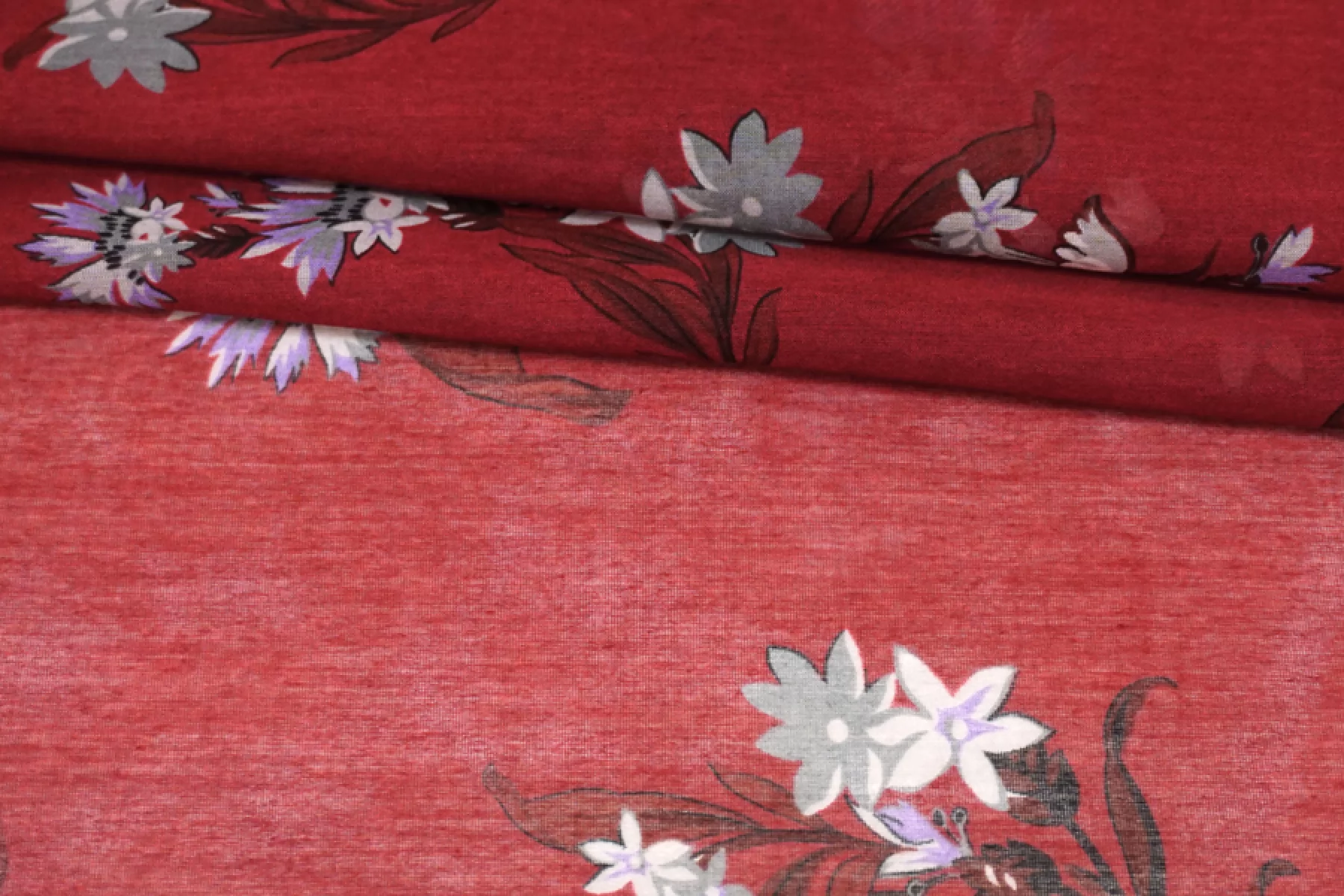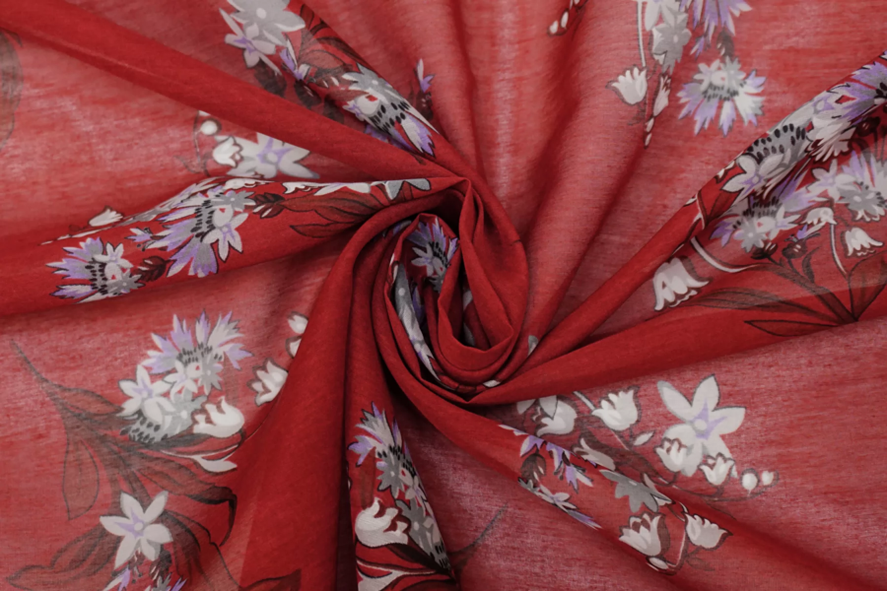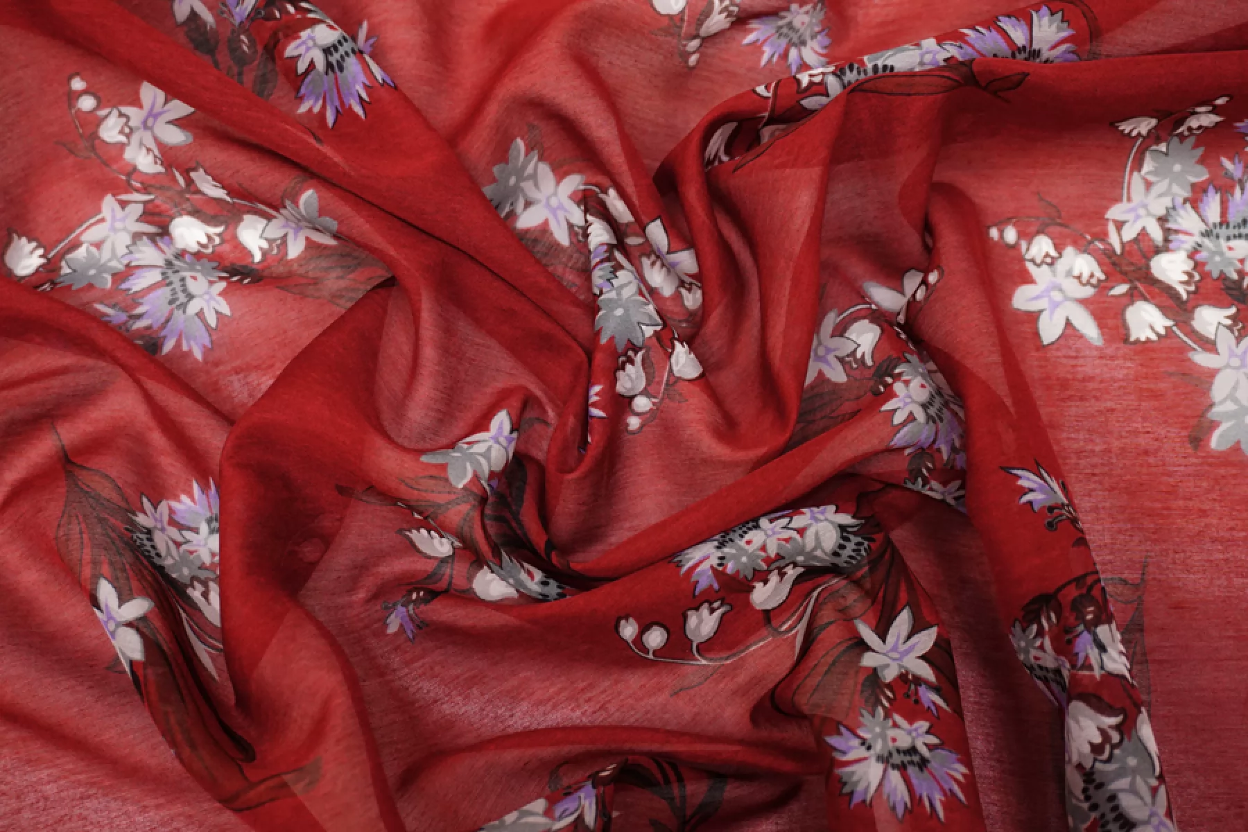 Батист хлопок с шелком Цветы на бордовом TRC H2/3 N60 4022543