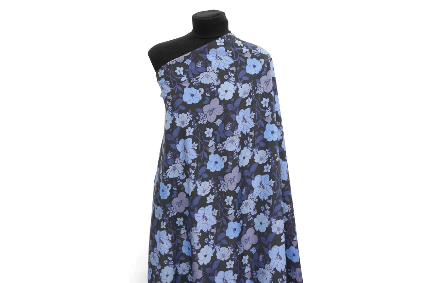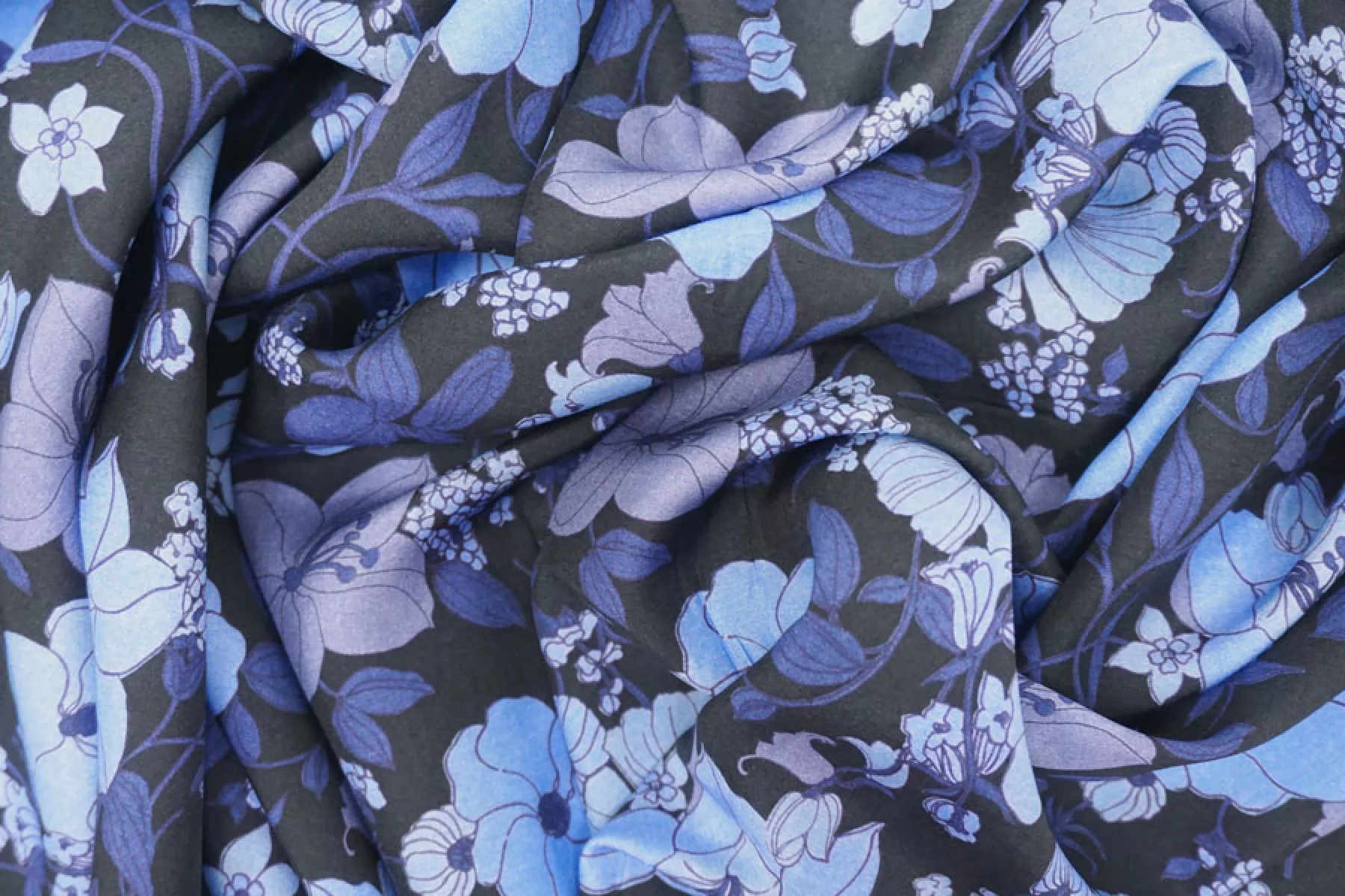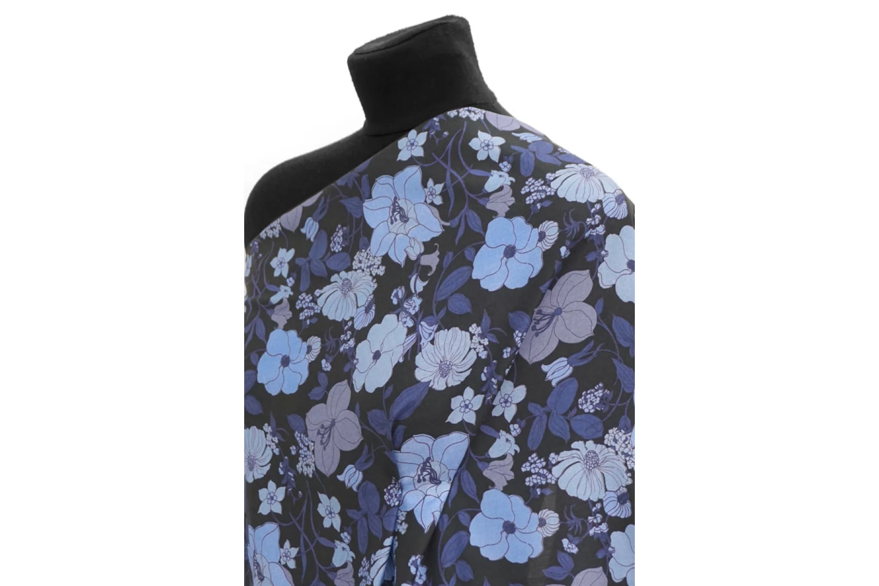 Шикарный итальянский батист Tom Ford из хлопка с шелком, принт синий цветочный на черном фоне. Тактильно очень мягкий, воздушный, легкий гладкий и приятный, ощущается шелк. Не тянется, слегка сминается. Просвечивает. Форму не держит. Отлично подойдет на свободные рубашки, блузки, многослойные платья или юбки. Уход деликатный, шьем тонкими иглами.