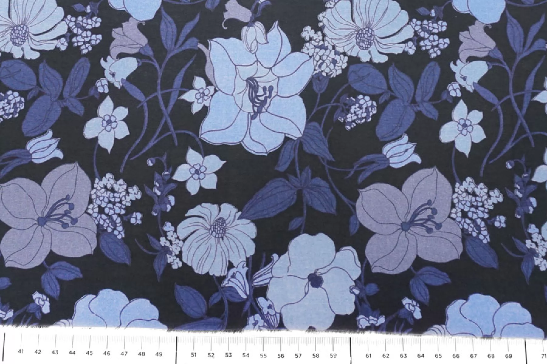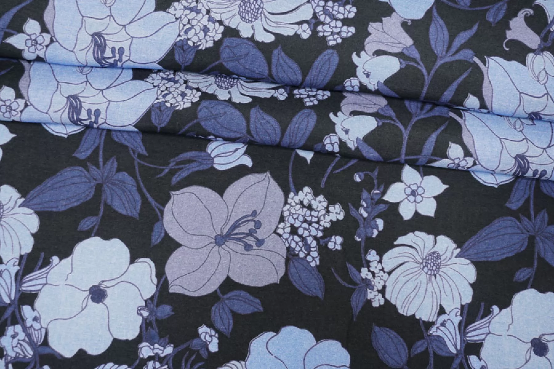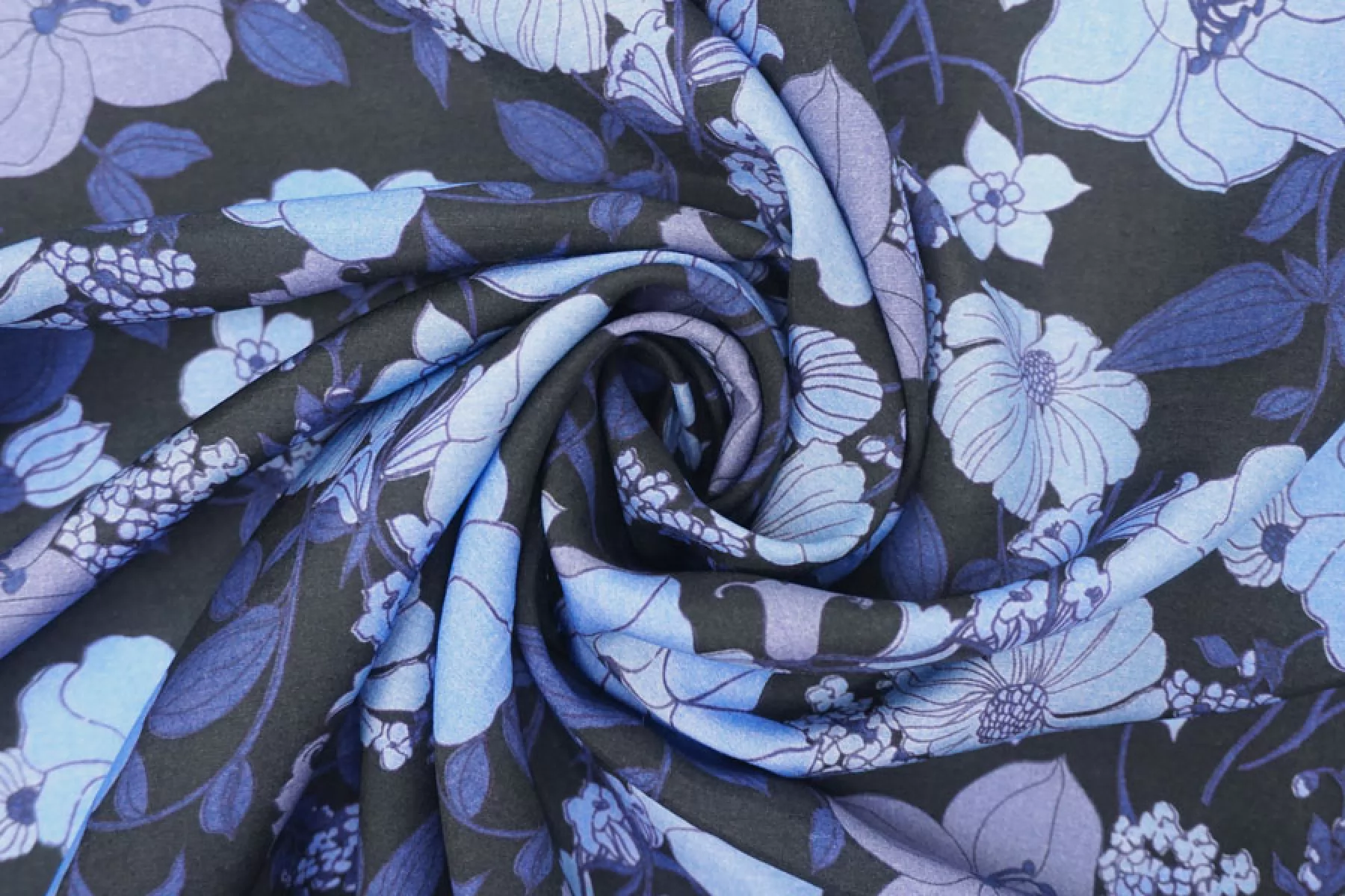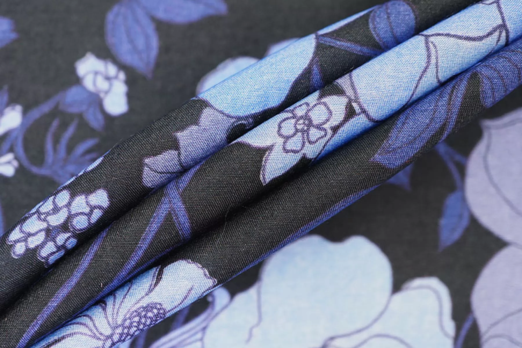 Шикарный итальянский батист Tom Ford из хлопка с шелком, принт синий цветочный на черном фоне. Тактильно очень мягкий, воздушный, легкий гладкий и приятный, ощущается шелк. Не тянется, слегка сминается. Просвечивает. Форму не держит. Отлично подойдет на свободные рубашки, блузки, многослойные платья или юбки. Уход деликатный, шьем тонкими иглами.