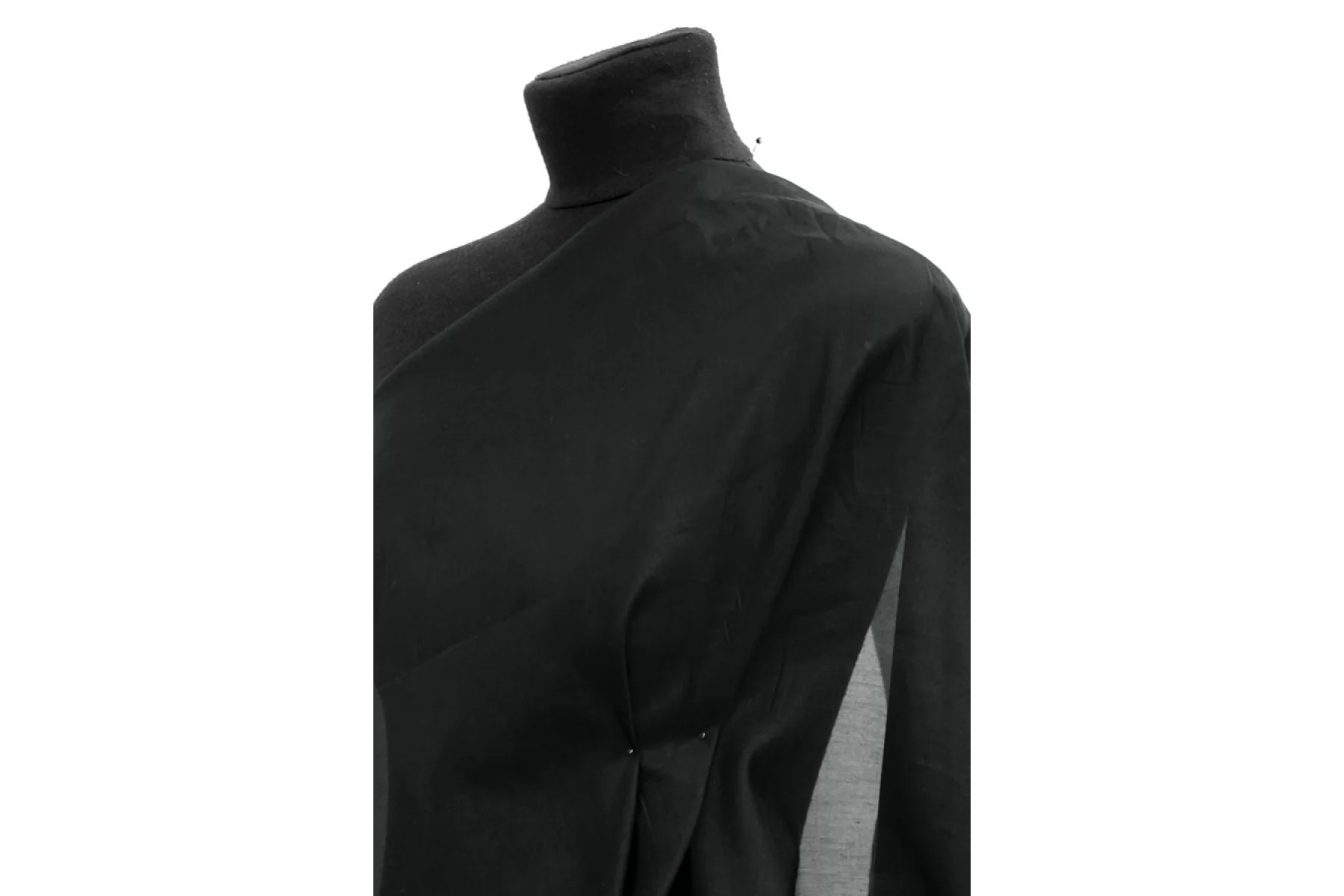 Присутствуют довольно частые уплотнения. см. фото. Прекрасный итальянский батист из хлопка с шелком в черном цвете с синеватым подтоном. Тактильно мягкий, гладкий и приятный, ощущается шелк. По пластике похож на мягкую органзу. Не тянется, слегка сминается. Просвечивает. Форму не держит. Отлично подойдет на свободные рубашки, многослойные платья или юбки, а также на подкладку. Уход деликатный