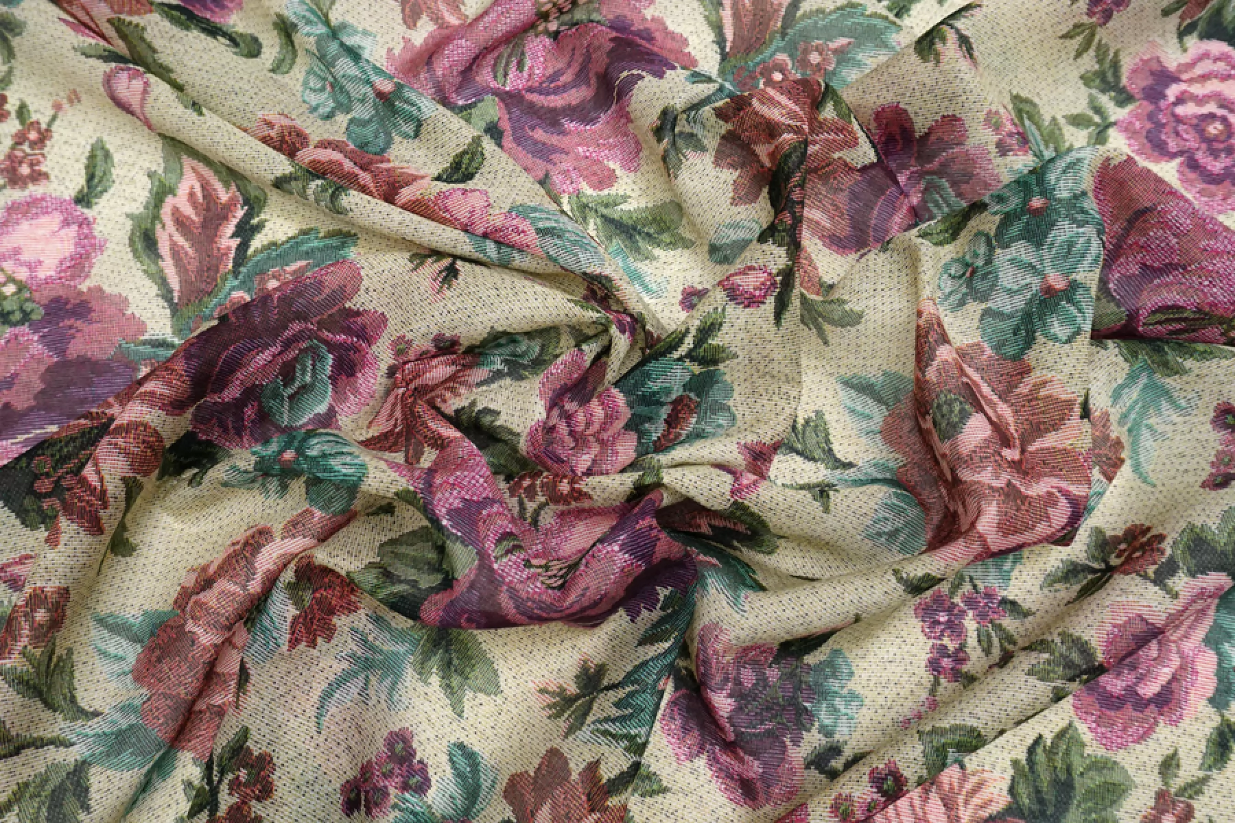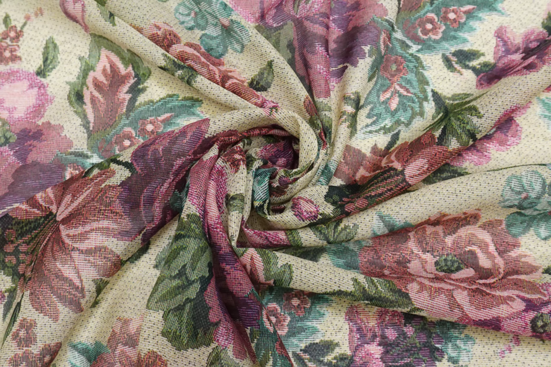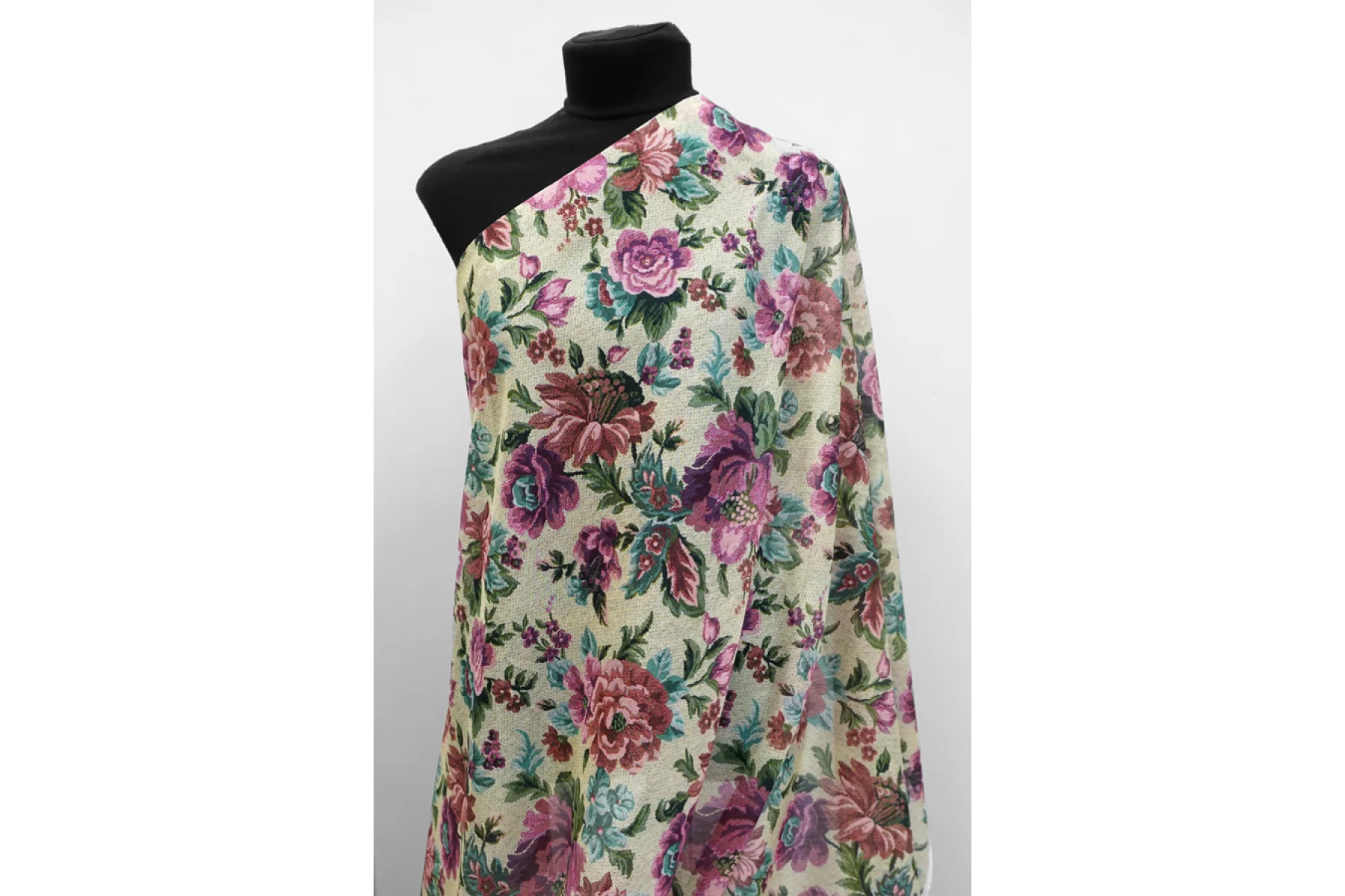 Шикарный итальянский батист из шёлка с хлопком, принт стилизованный цветочный под гобелен (розовый, зеленый, желтовато-зеленый, чёрный). Тактильно очень мягкий, воздушный, легкий гладкий и приятный, ощущается шелк. Не тянется, слегка сминается. Просвечивает. Форму не держит. Отлично подойдет на свободные рубашки, блузки, многослойные платья или юбки. Уход деликатный, шьем тонкими иглами.