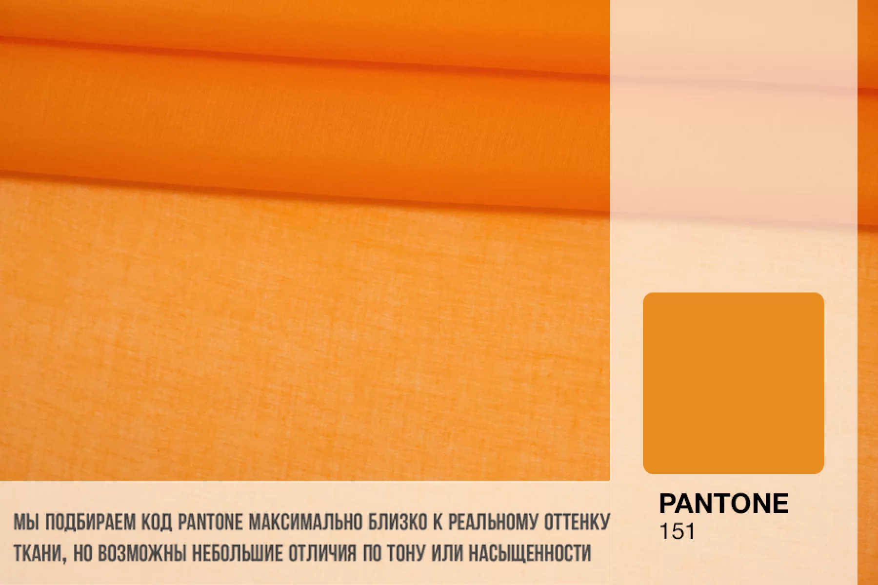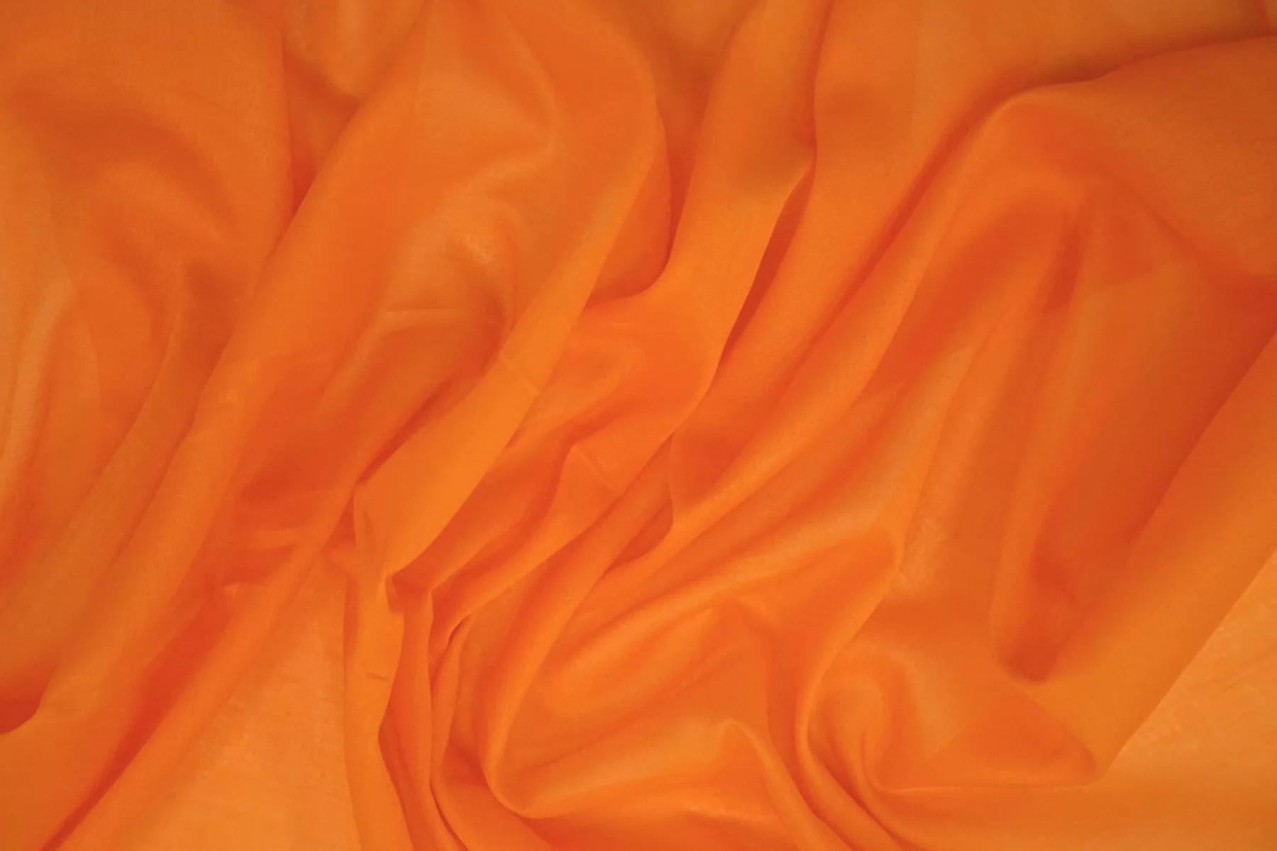 Тонкий хлопковый батист оранжевого цвета. Легкий, пластичный, полупрозрачный, немного тянется плетение. Можно использовать как в роли подкладки, так и для создания многослойных изделий, блузки, рубашки, юбки. Также можно использовать для пошива детской одежды.
